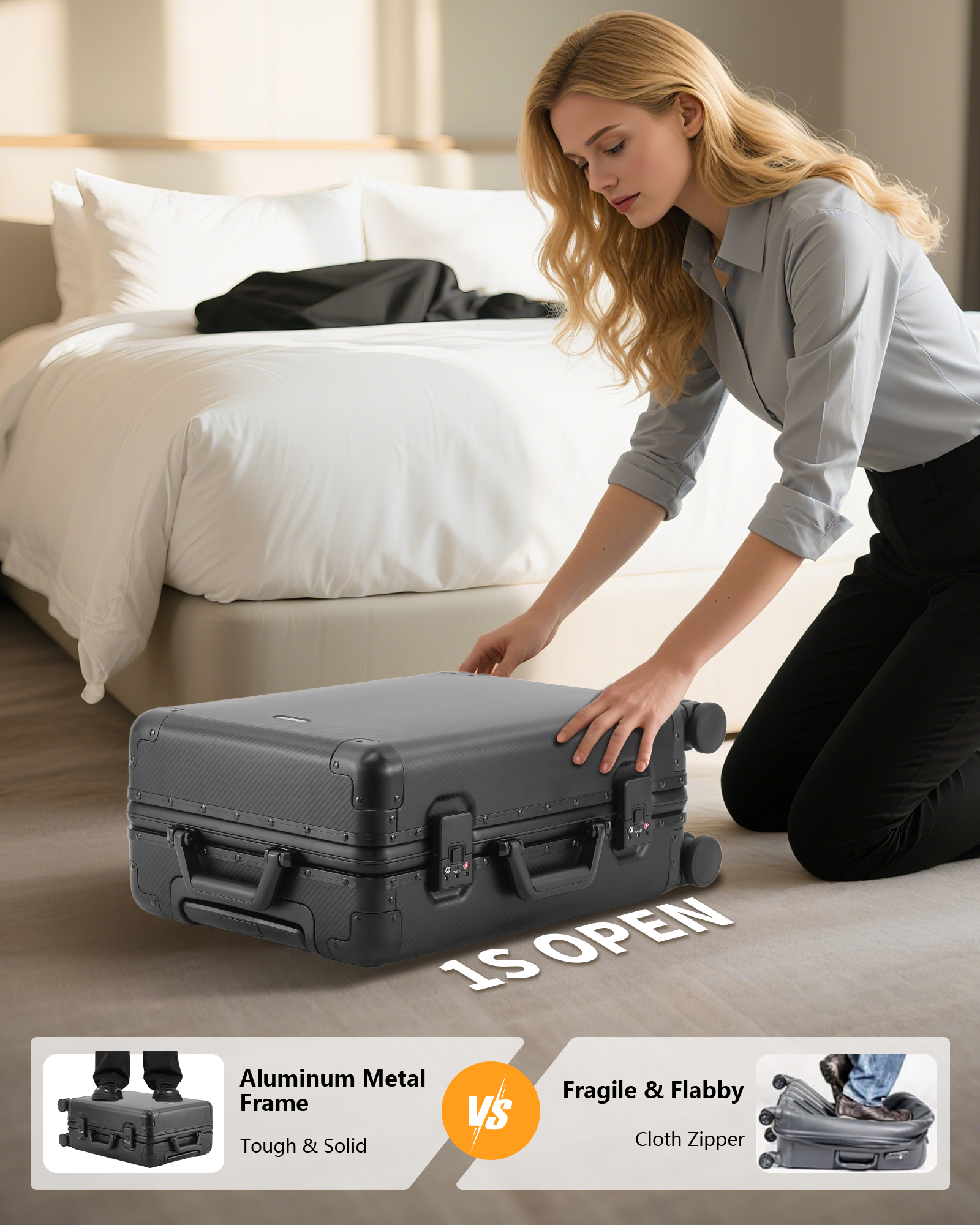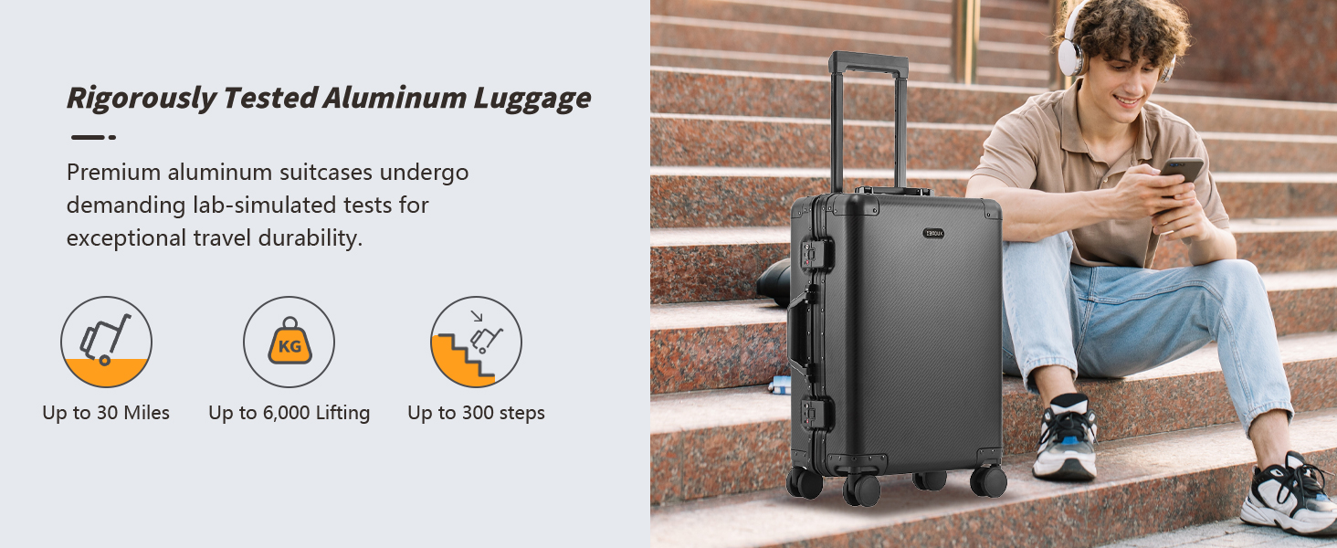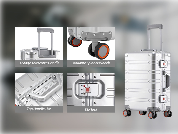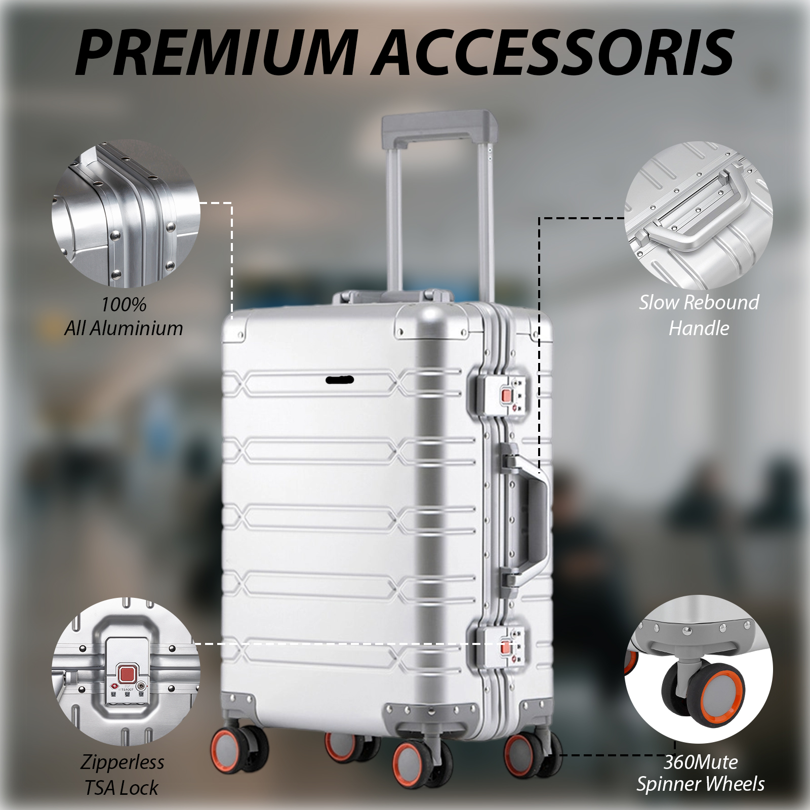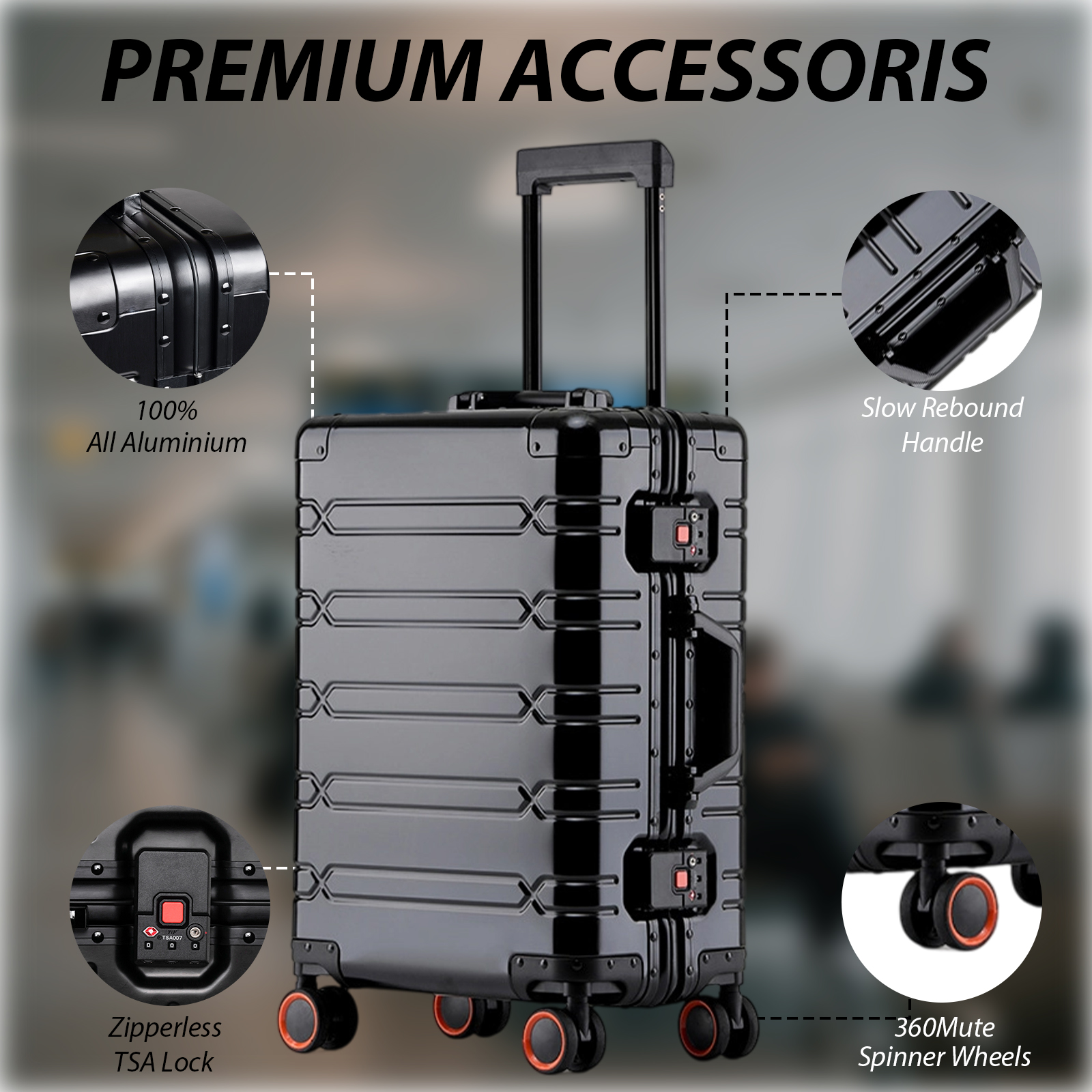 Metal & Aluminium Alloy Suitcase with password lock & hardwearing & waterproof Polyester Peach Skin PC