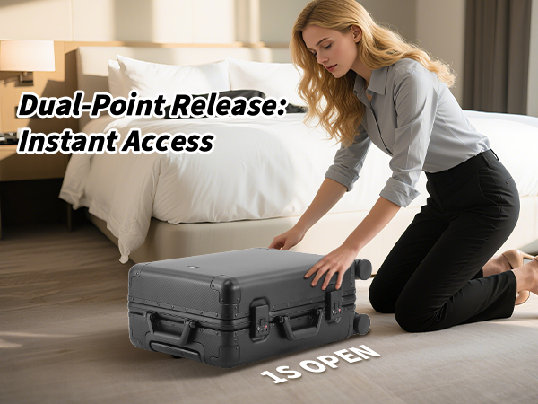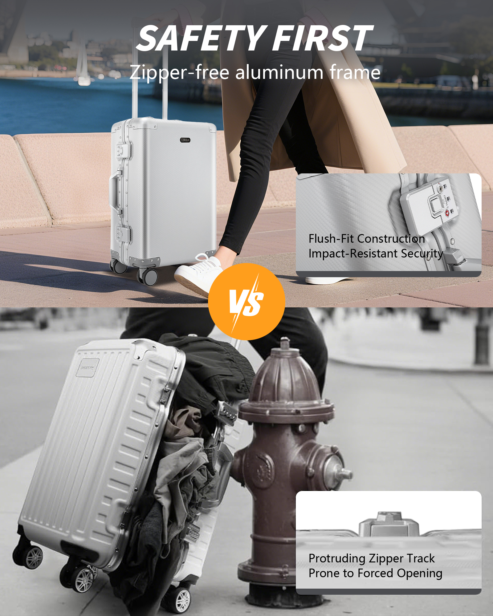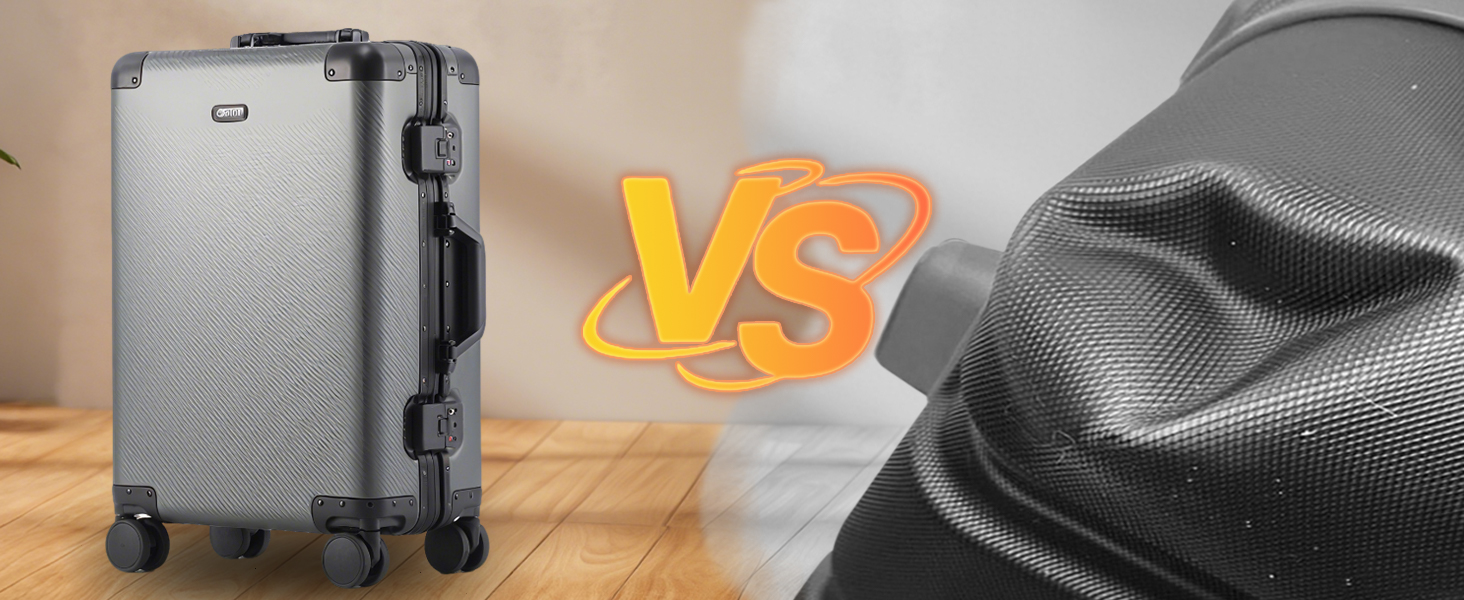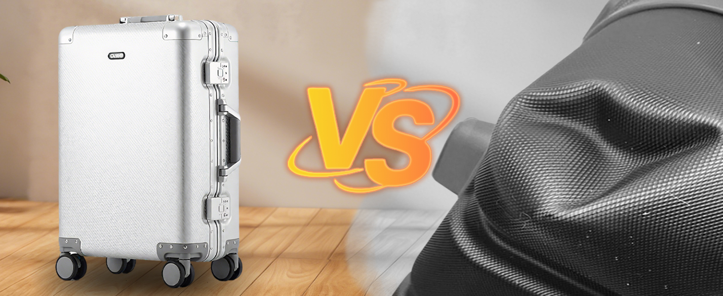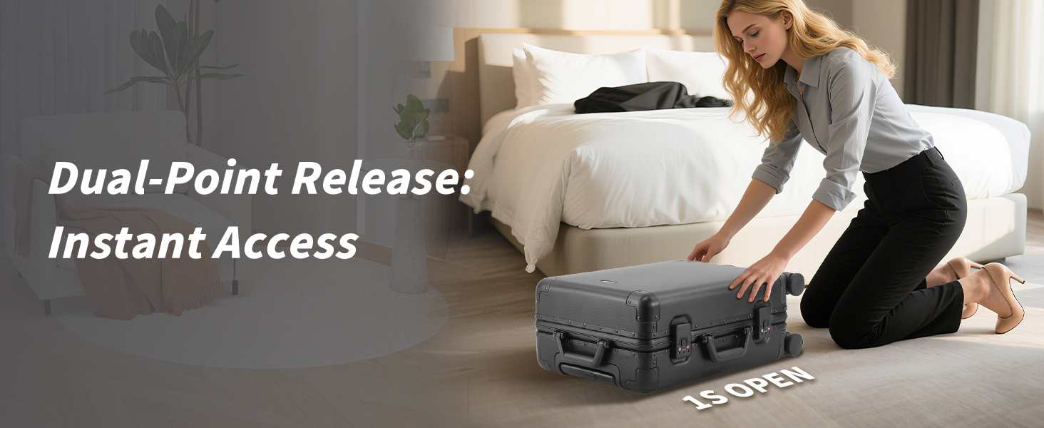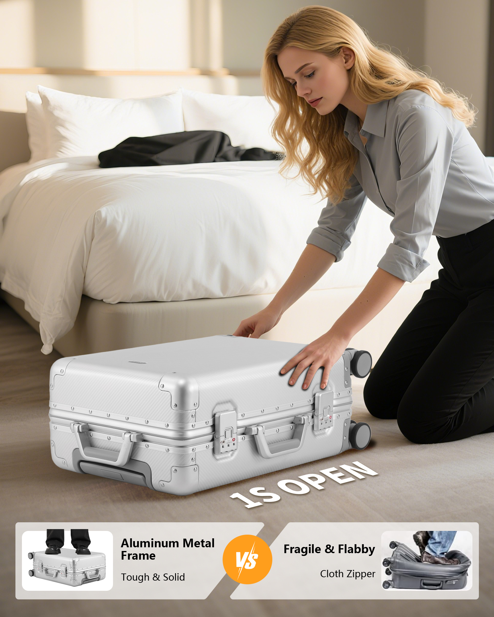 Metal & Aluminium Alloy Suitcase with password lock & hardwearing & waterproof Polyester Peach Skin PC