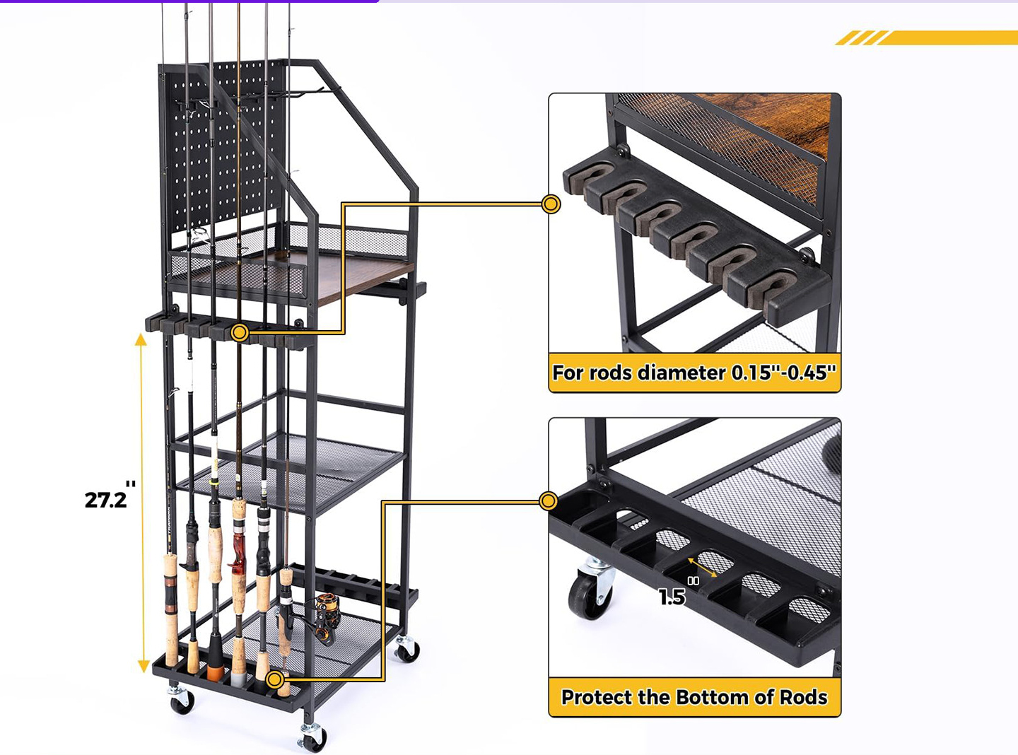 Metal Multilayer & Multifunction Fishing Fod Holder black PC