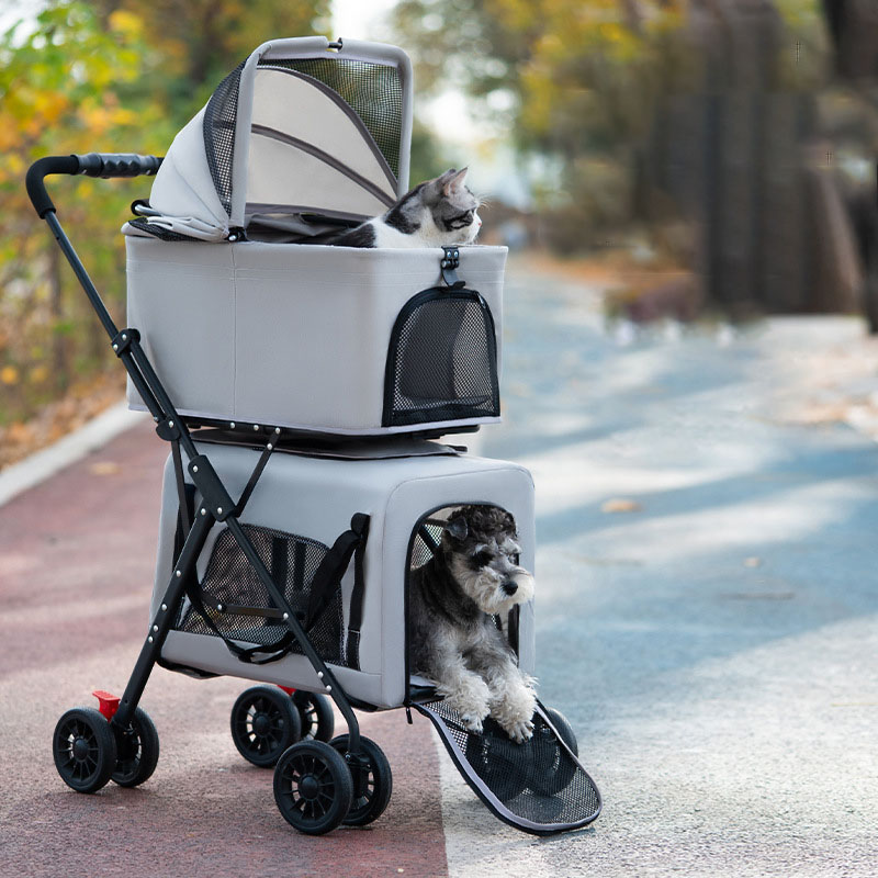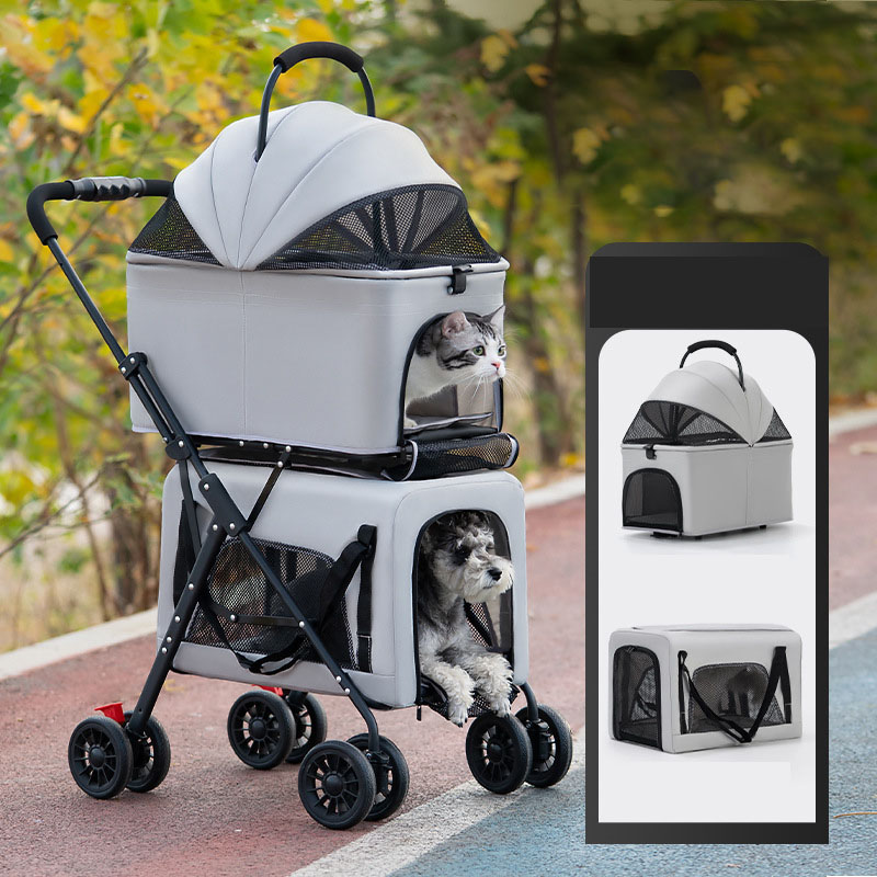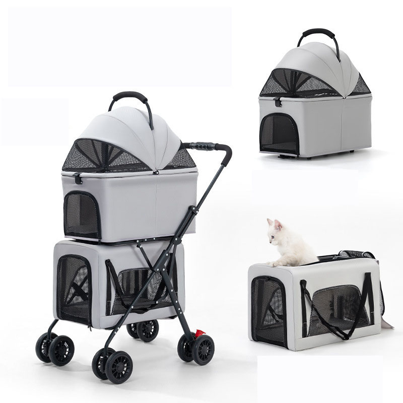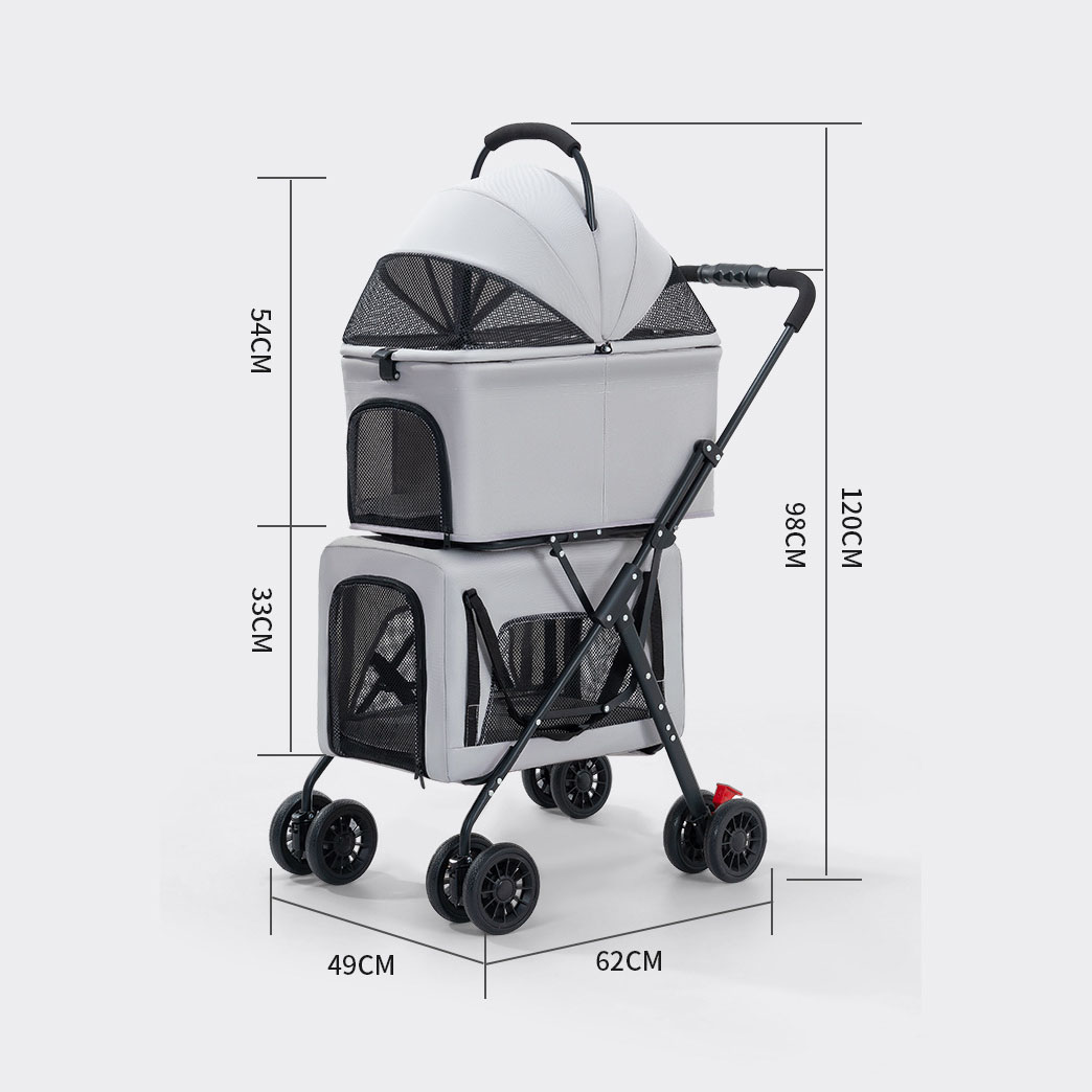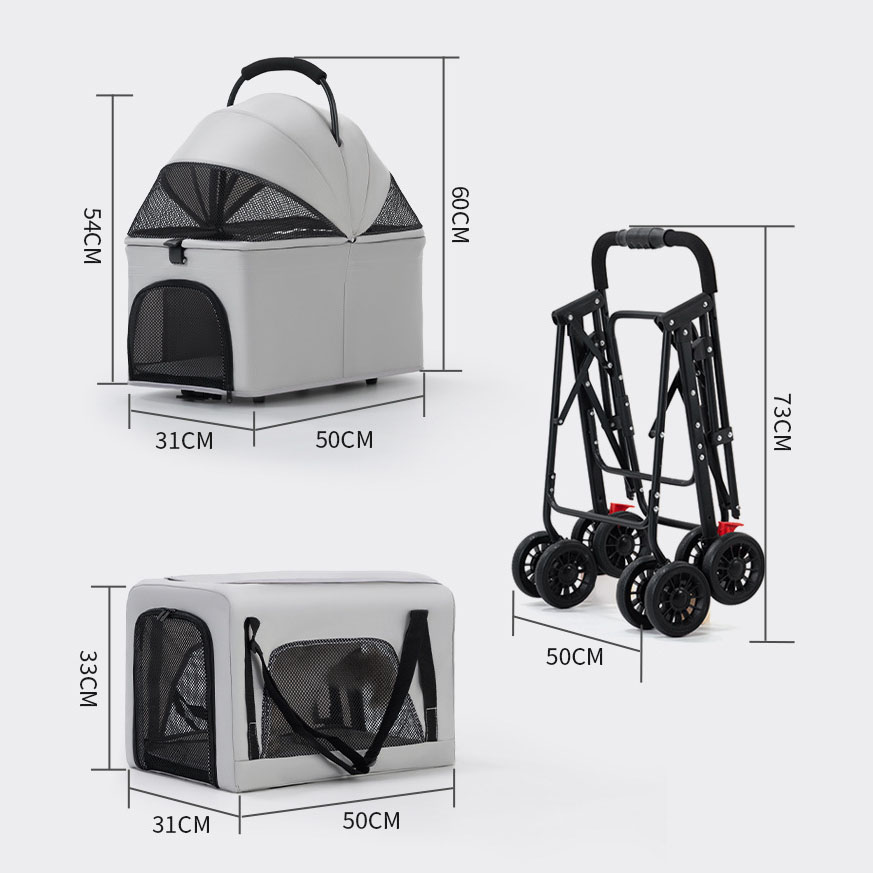 Metal & Oxford & Gauze foldable & Multifunction Pet stroller detachable PC