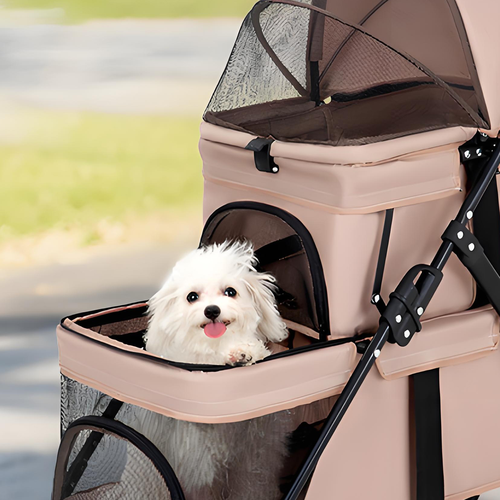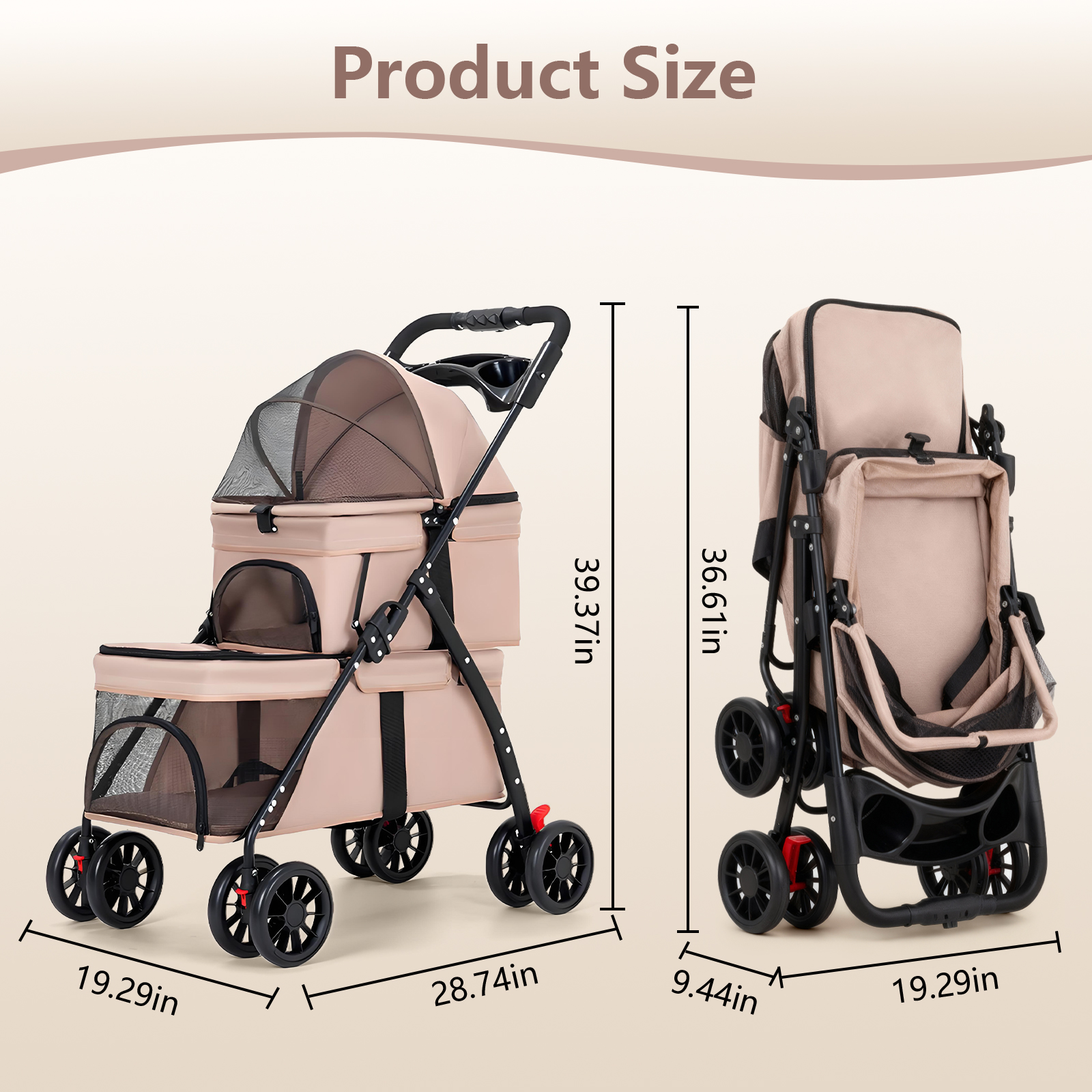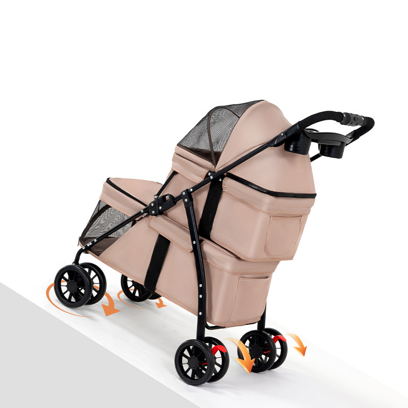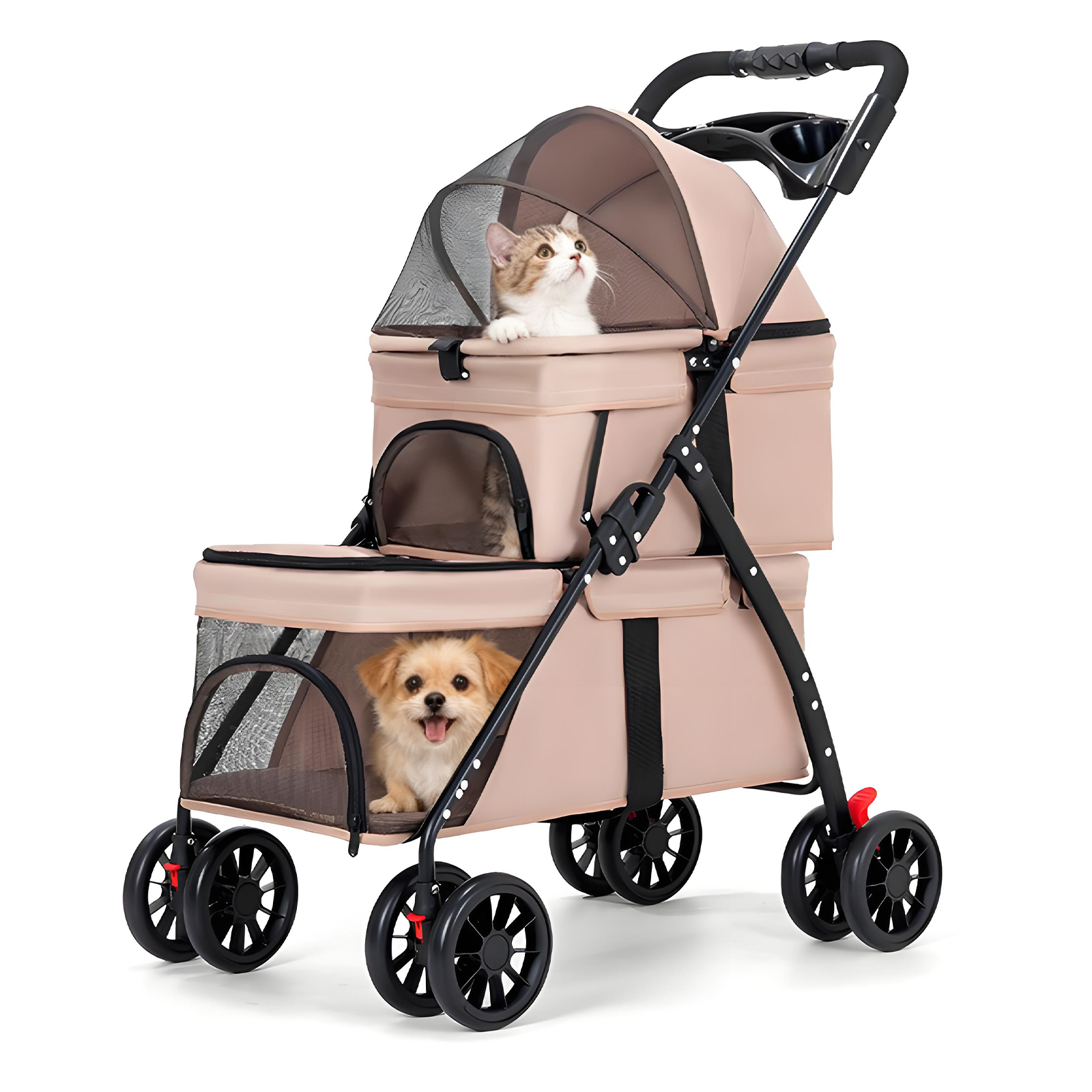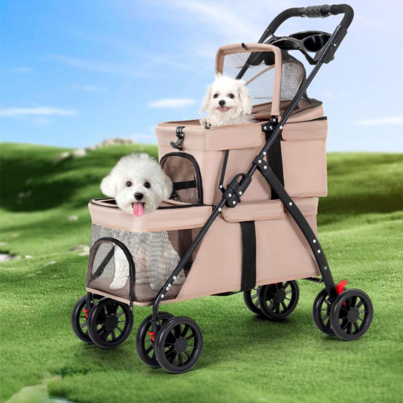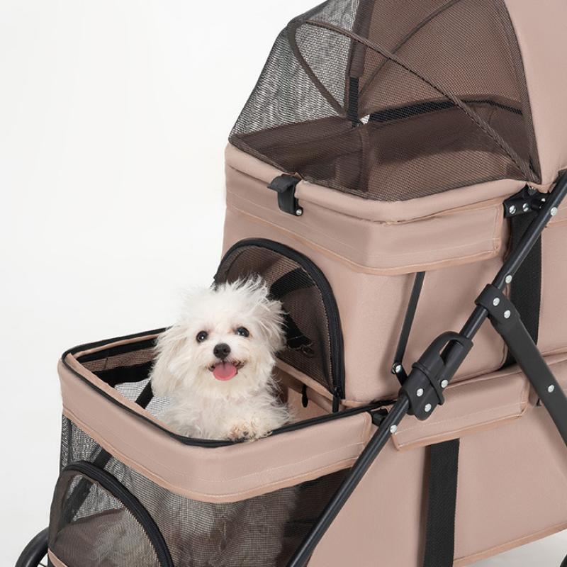 Metal & Oxford & Mesh Fabric foldable Pet stroller hardwearing & double layer Solid PC