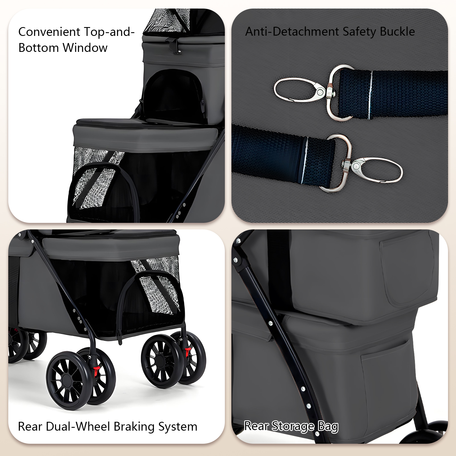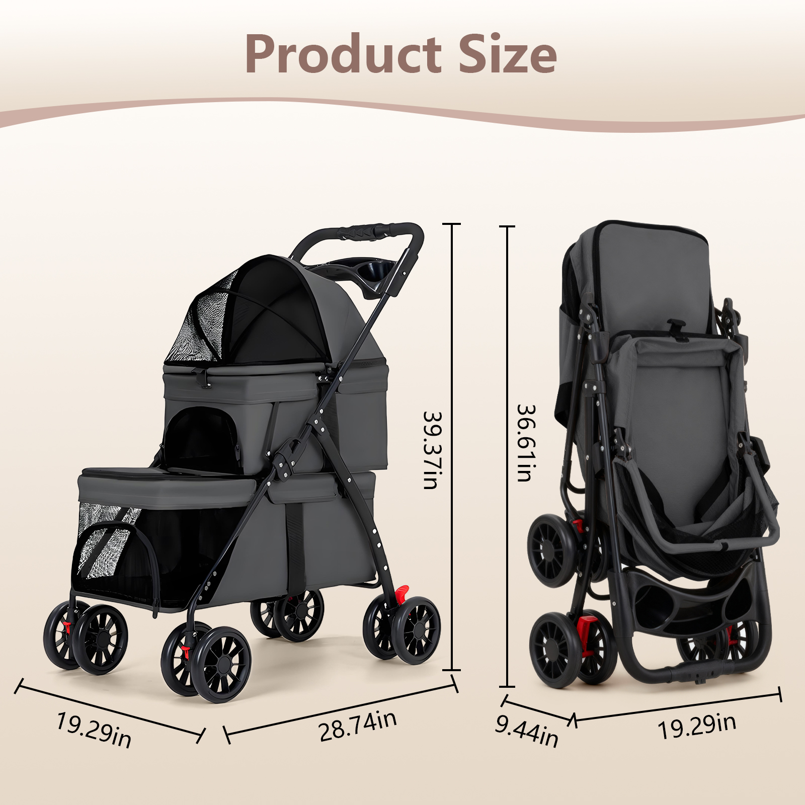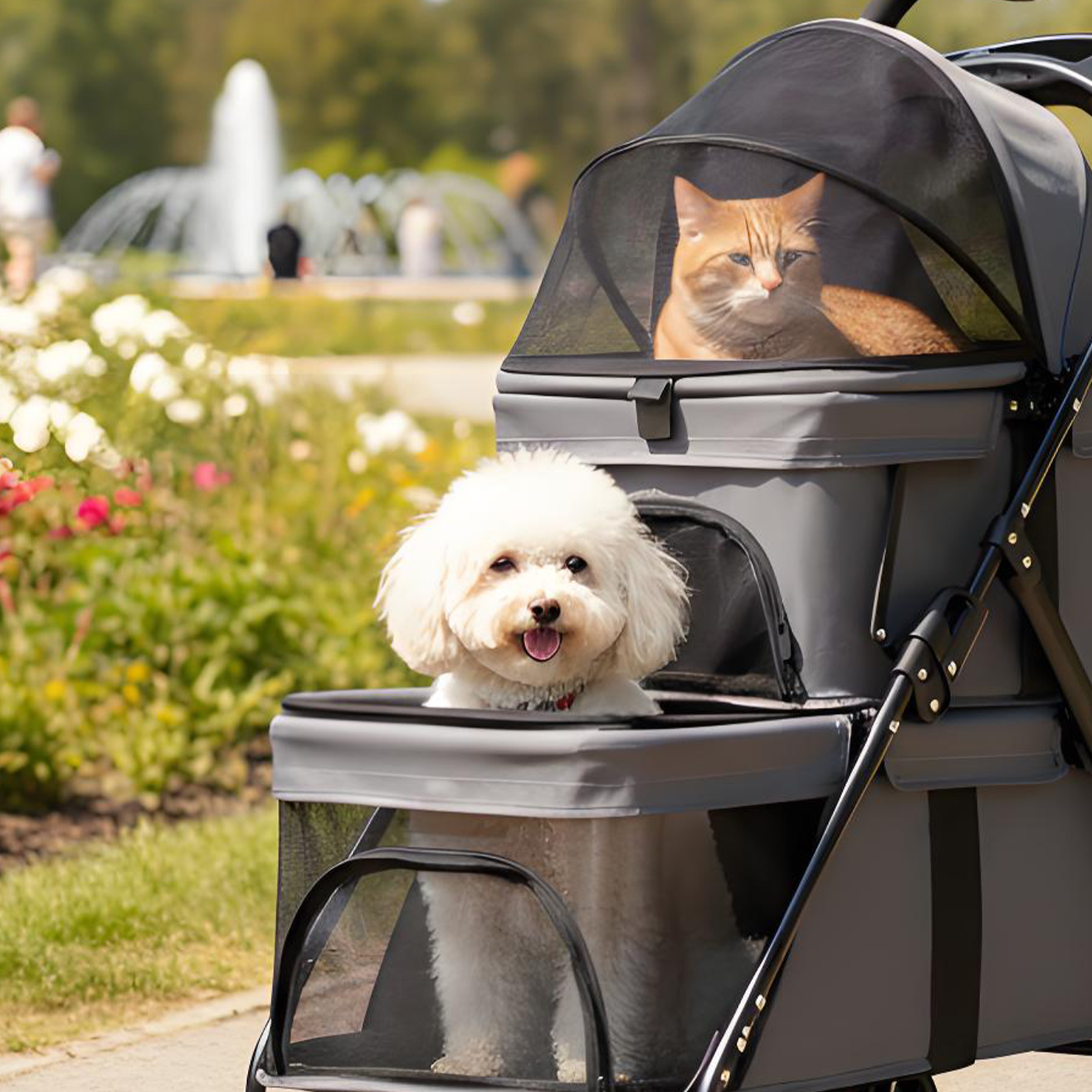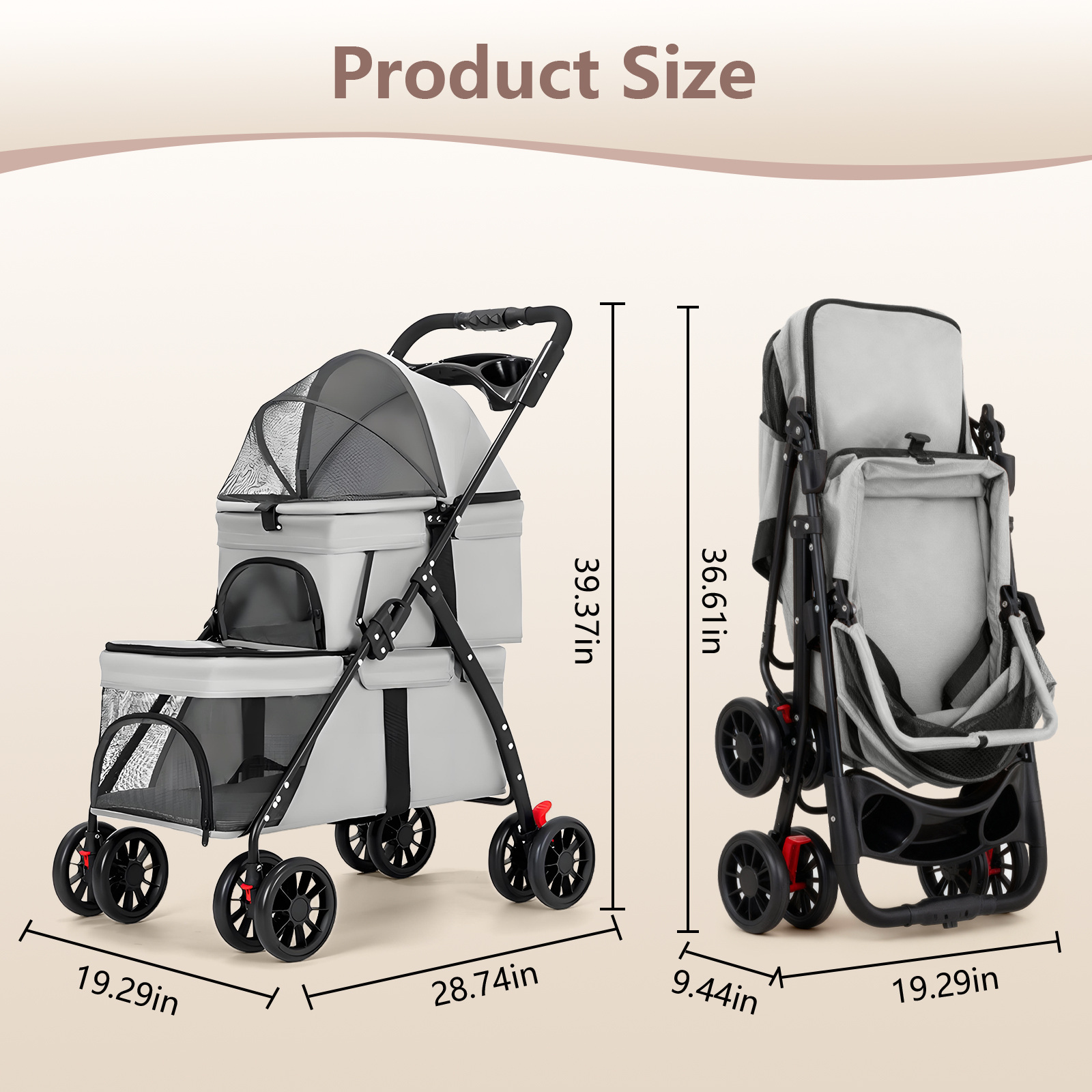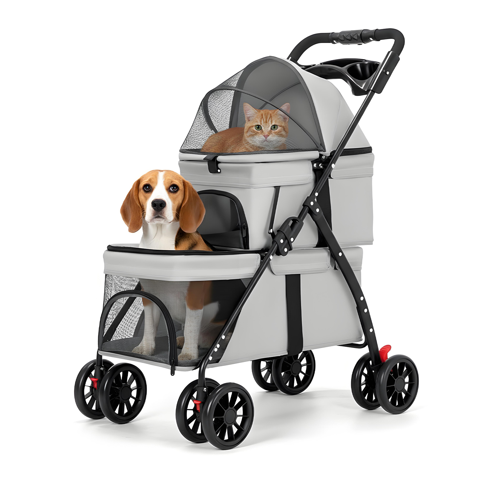 Metal & Oxford & Mesh Fabric foldable Pet stroller hardwearing & double layer Solid PC