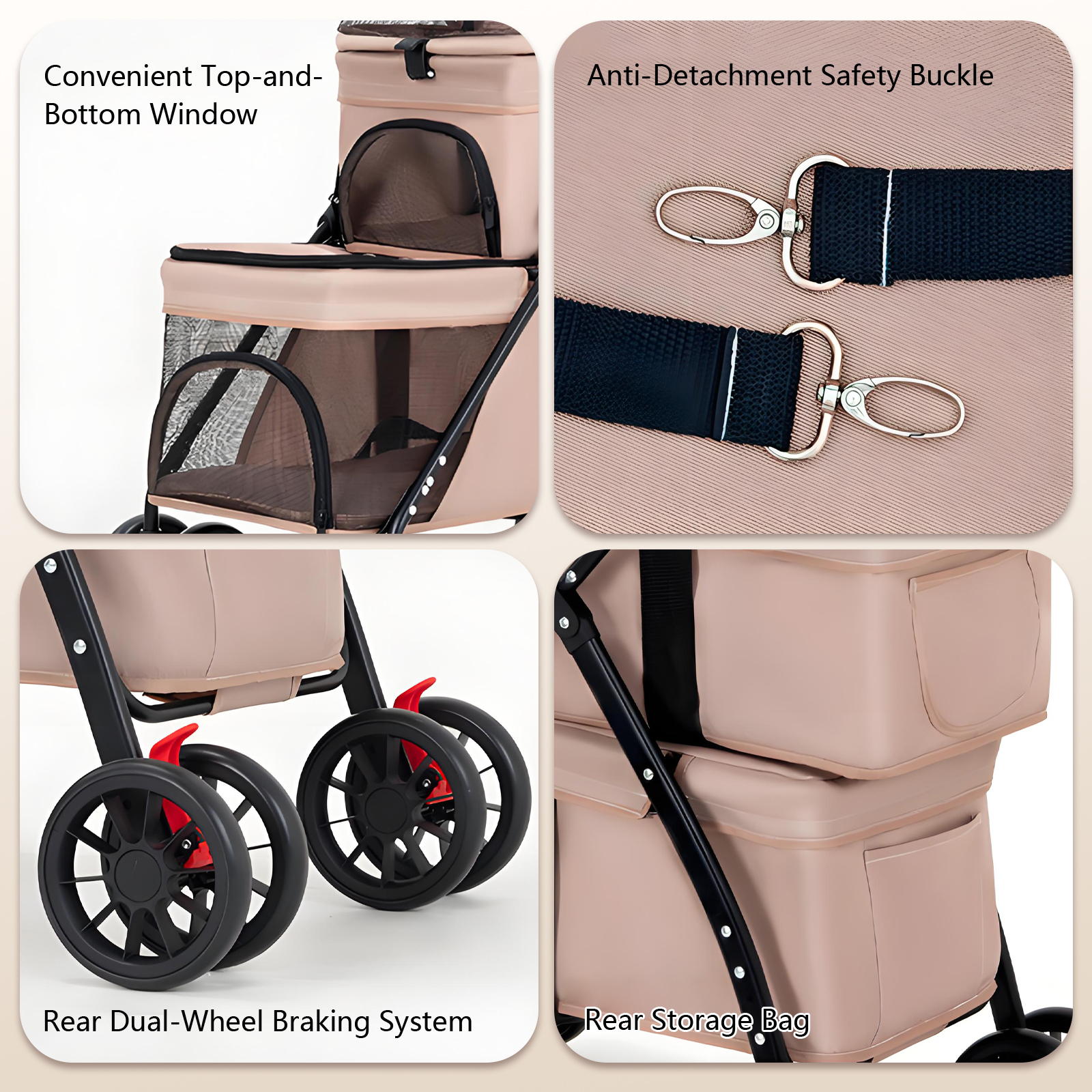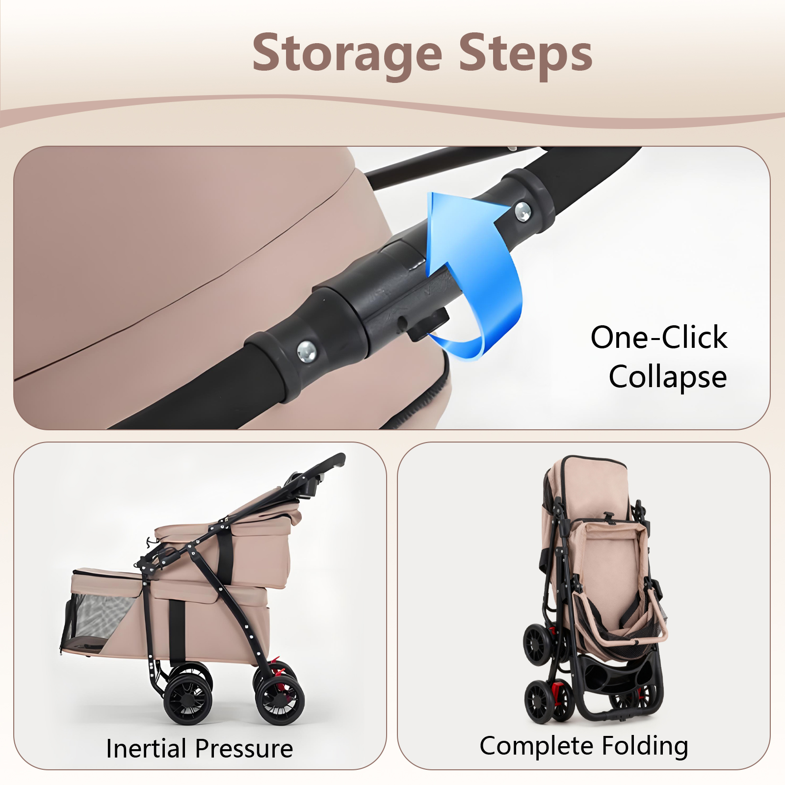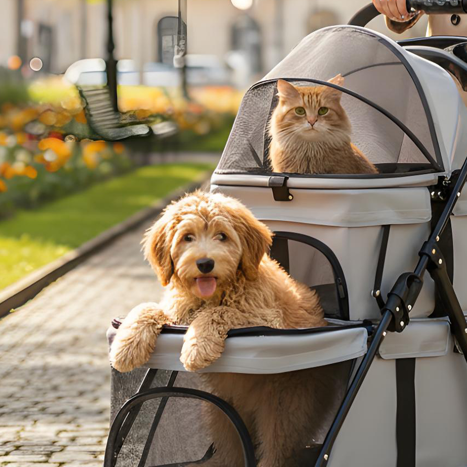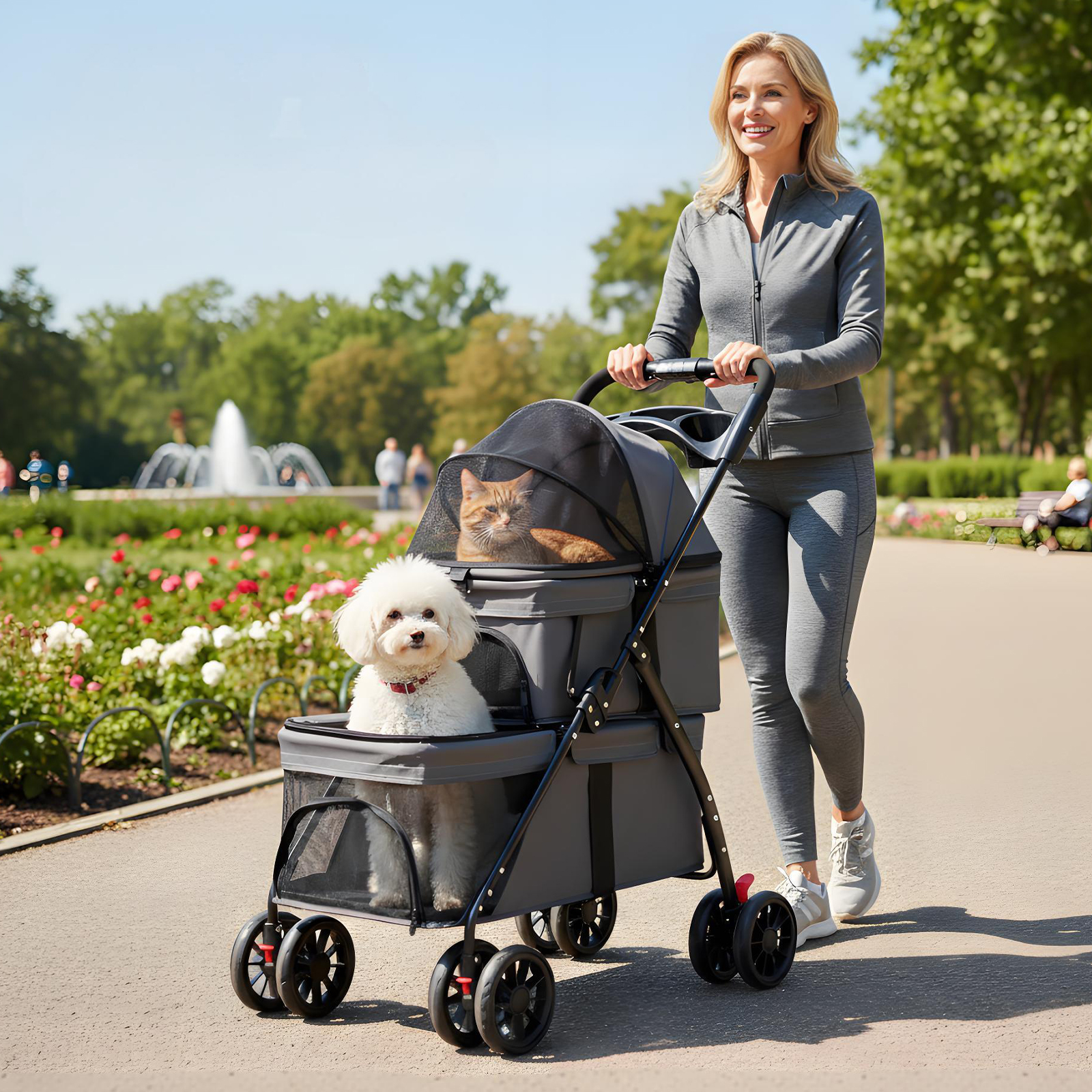 Metal & Oxford & Mesh Fabric foldable Pet stroller hardwearing & double layer Solid PC