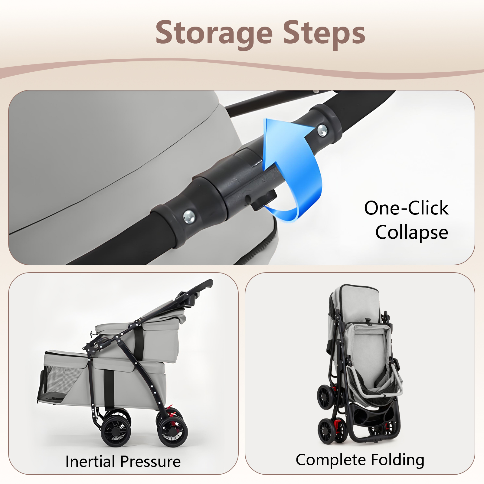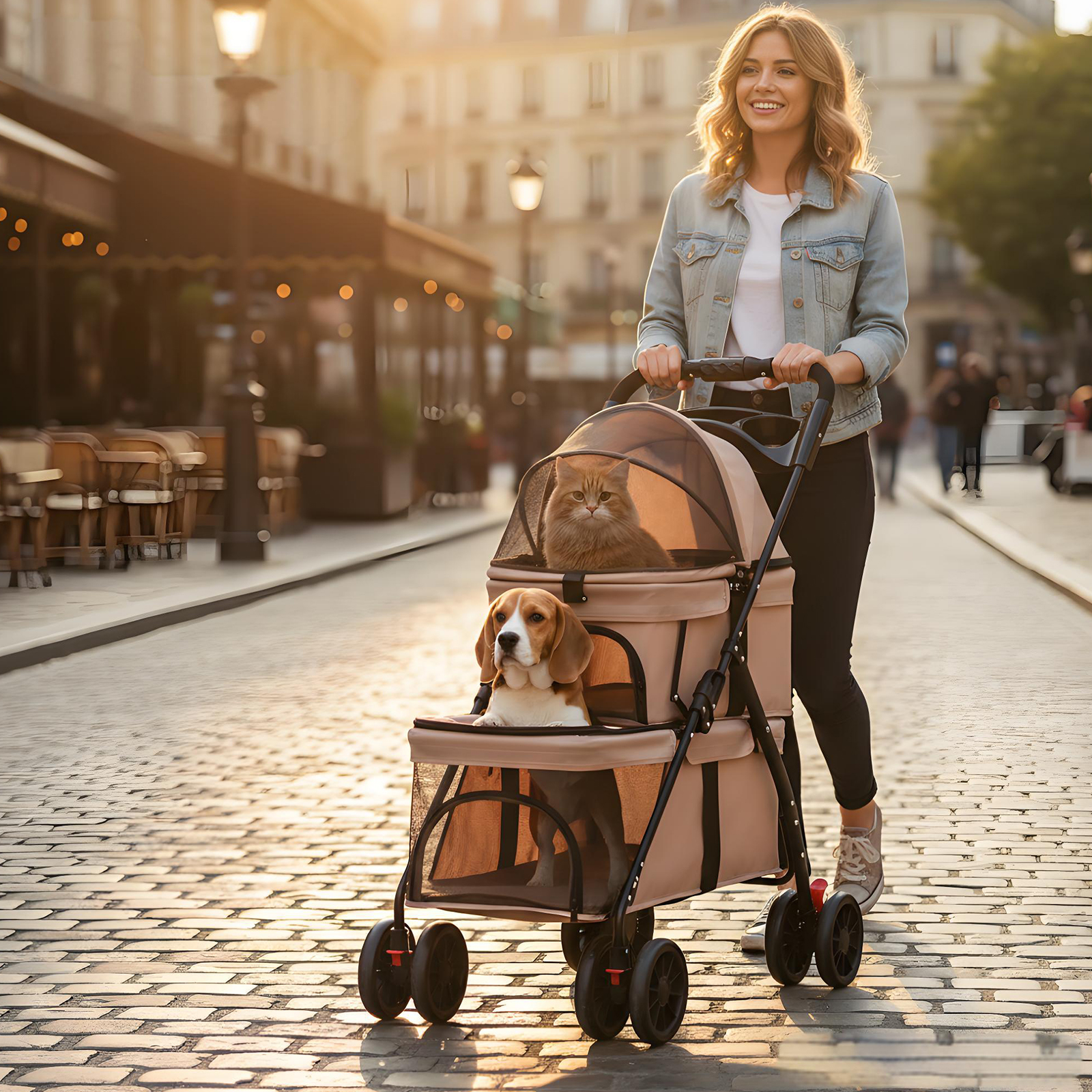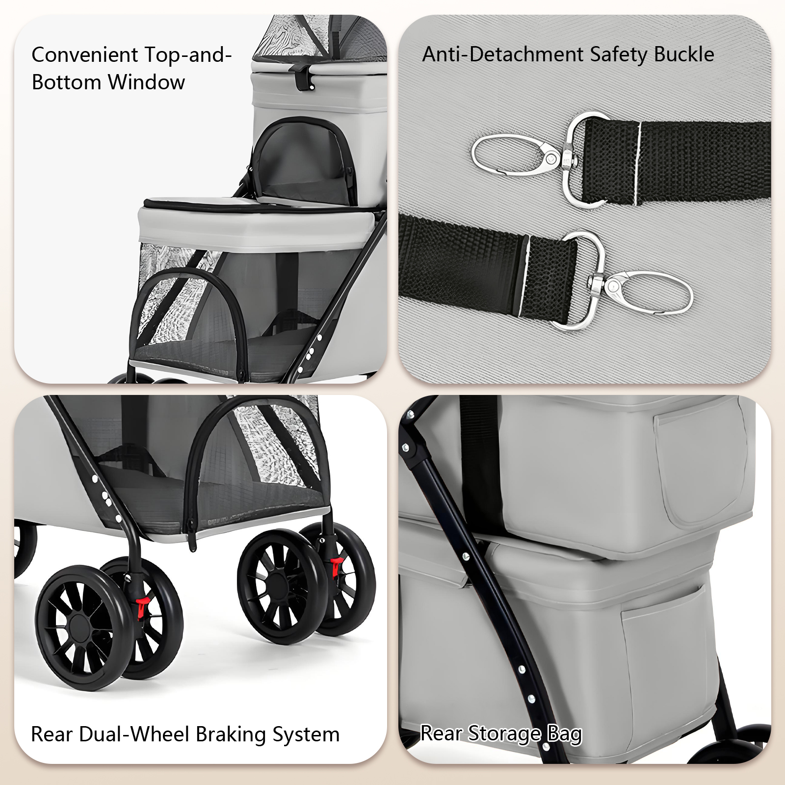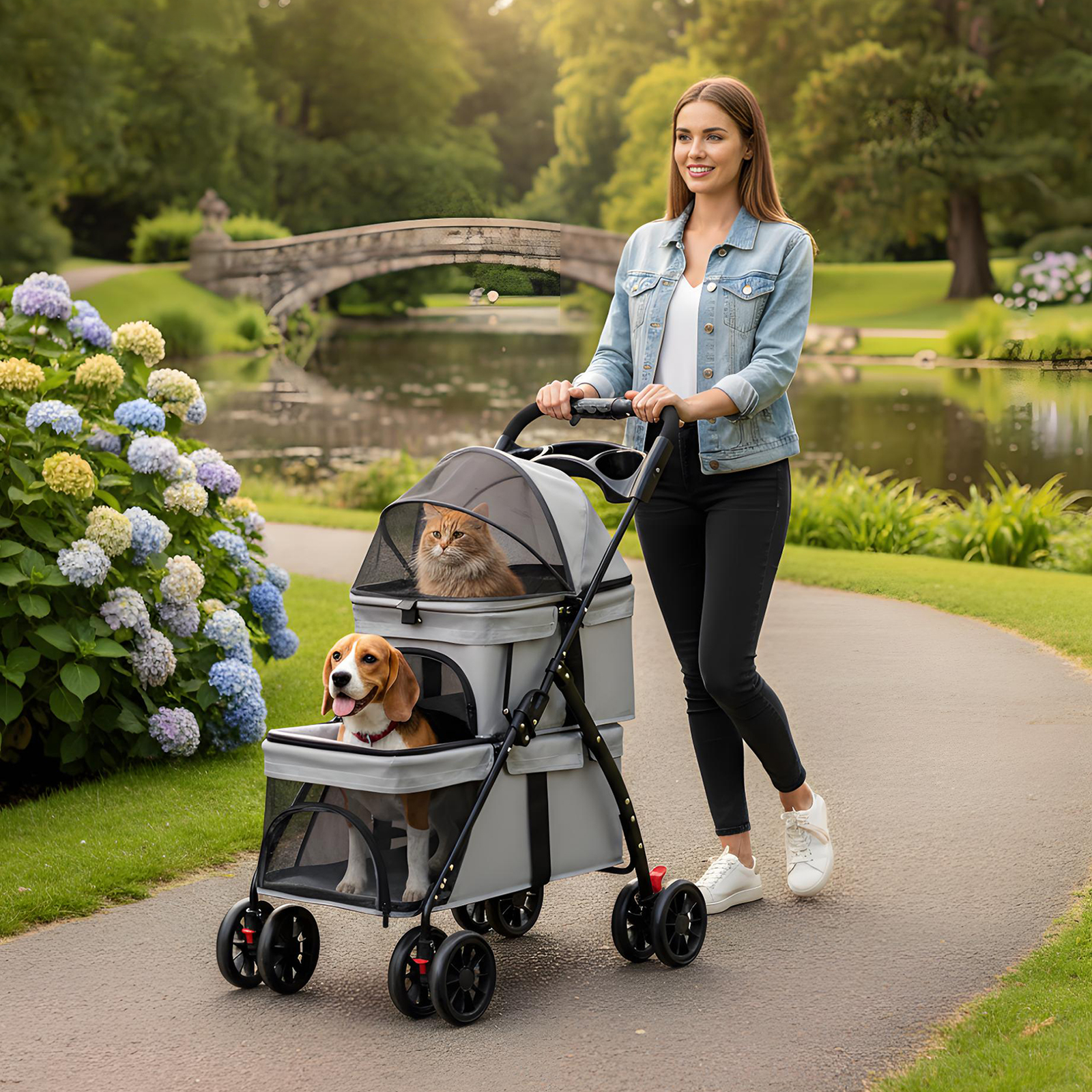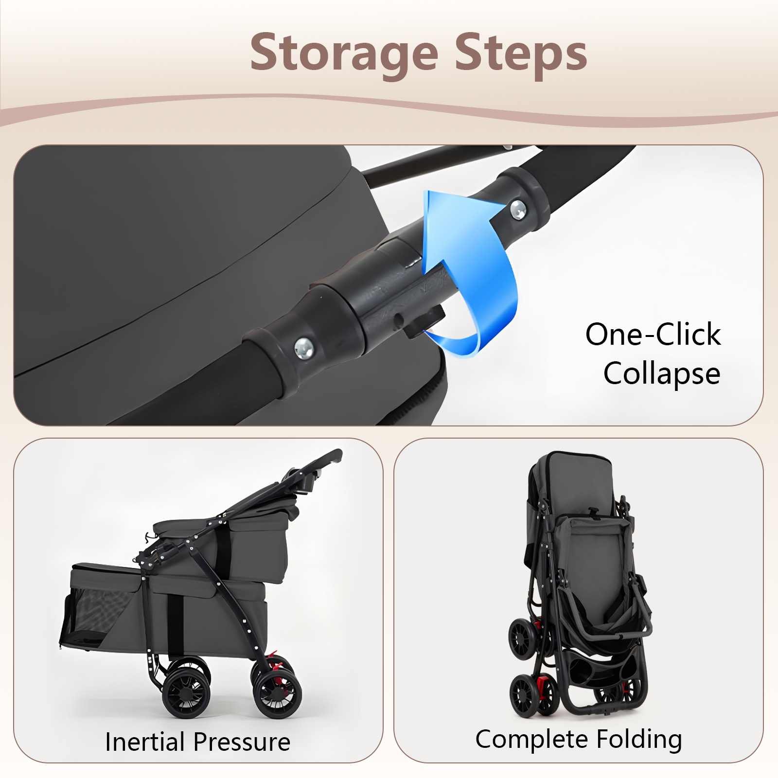 Metal & Oxford & Mesh Fabric foldable Pet stroller hardwearing & double layer Solid PC