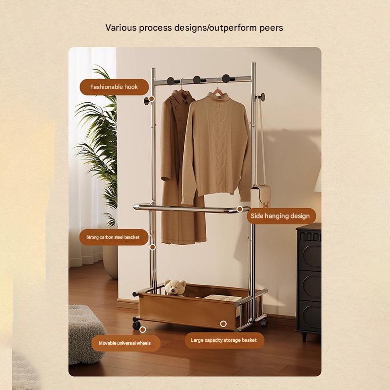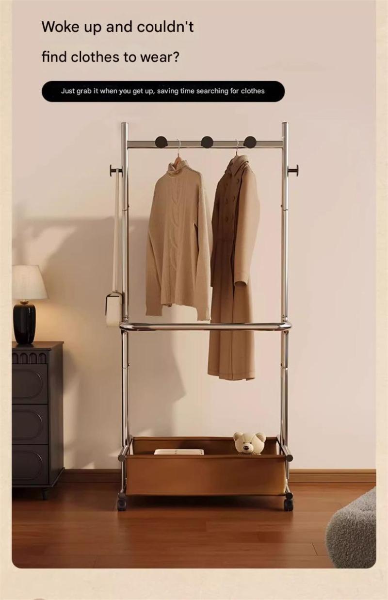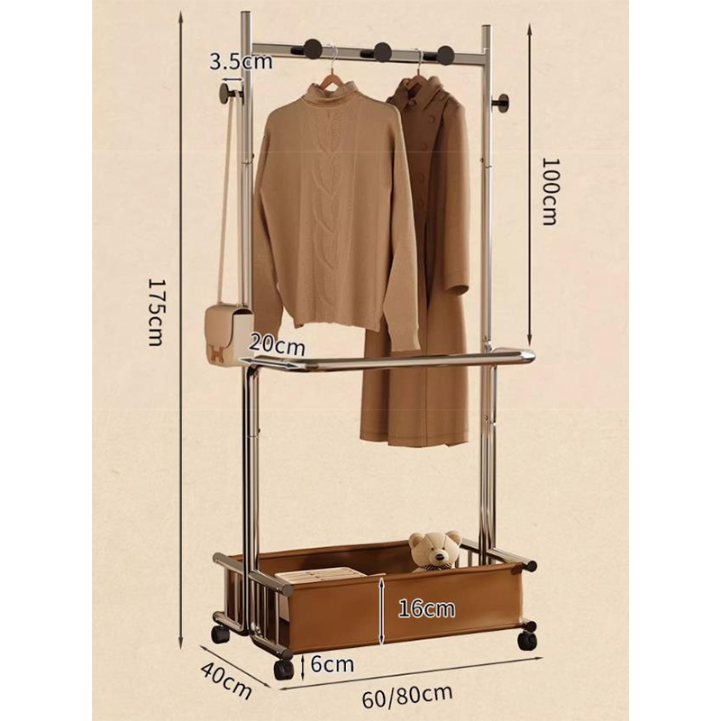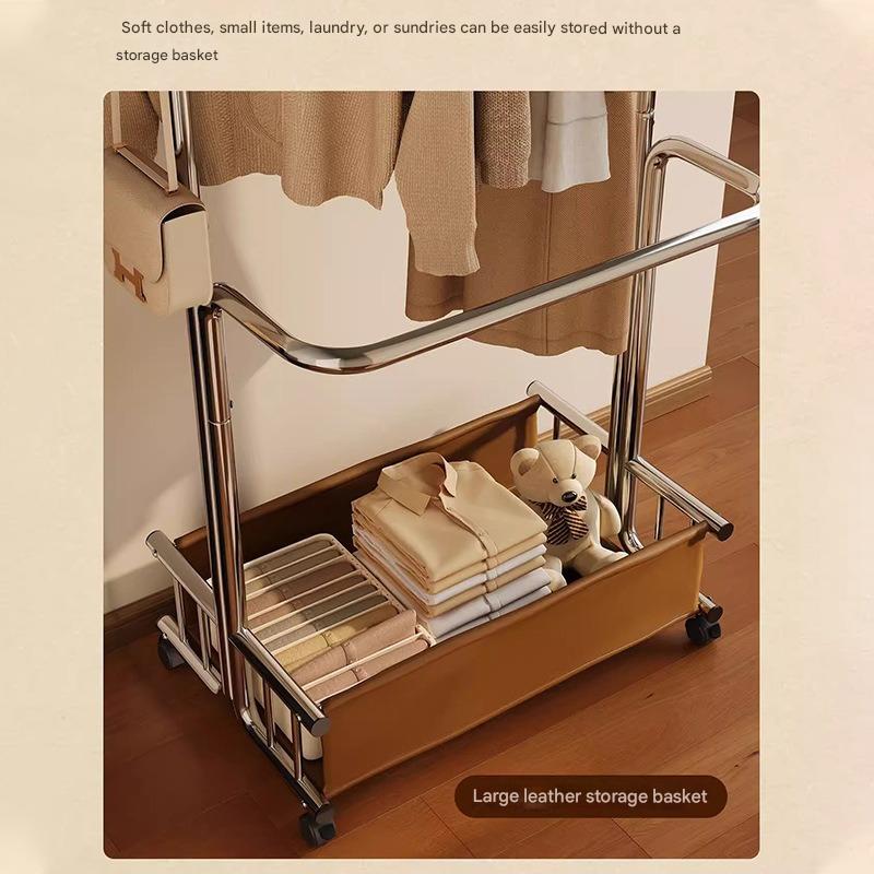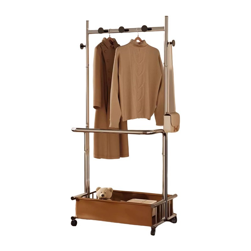 Metal & PU Leather Multifunction Clothes Hanging Rack with caster stoving varnish silver PC