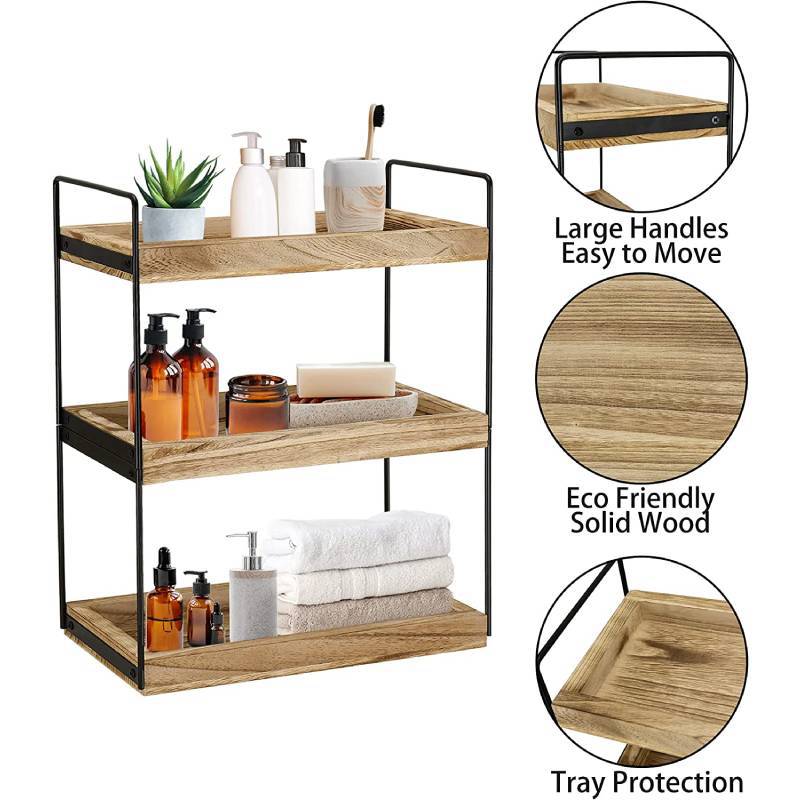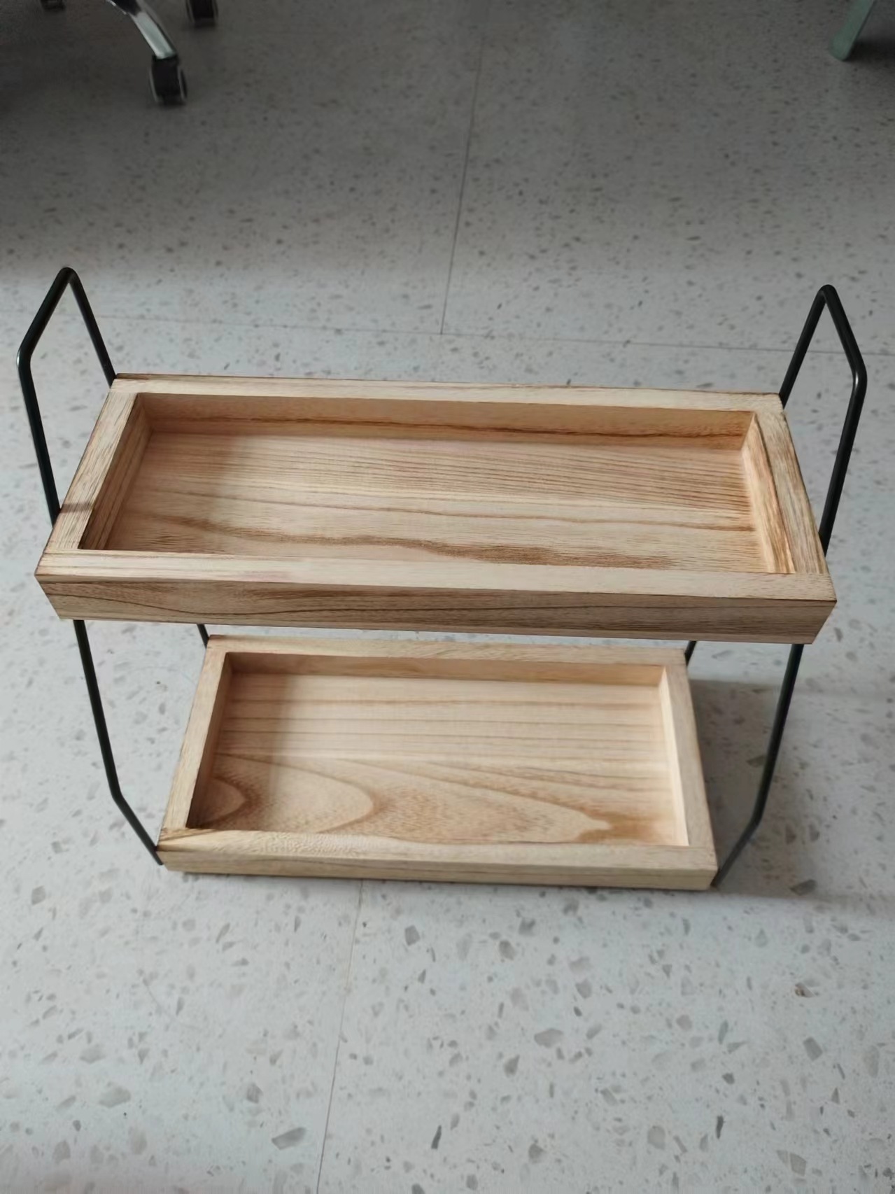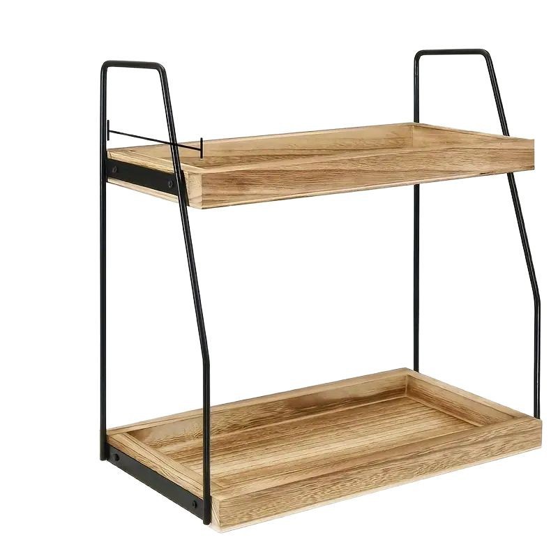 Wooden Desktop Double-layer Storage Rack Iron Household Multi-purpose Storage Rack