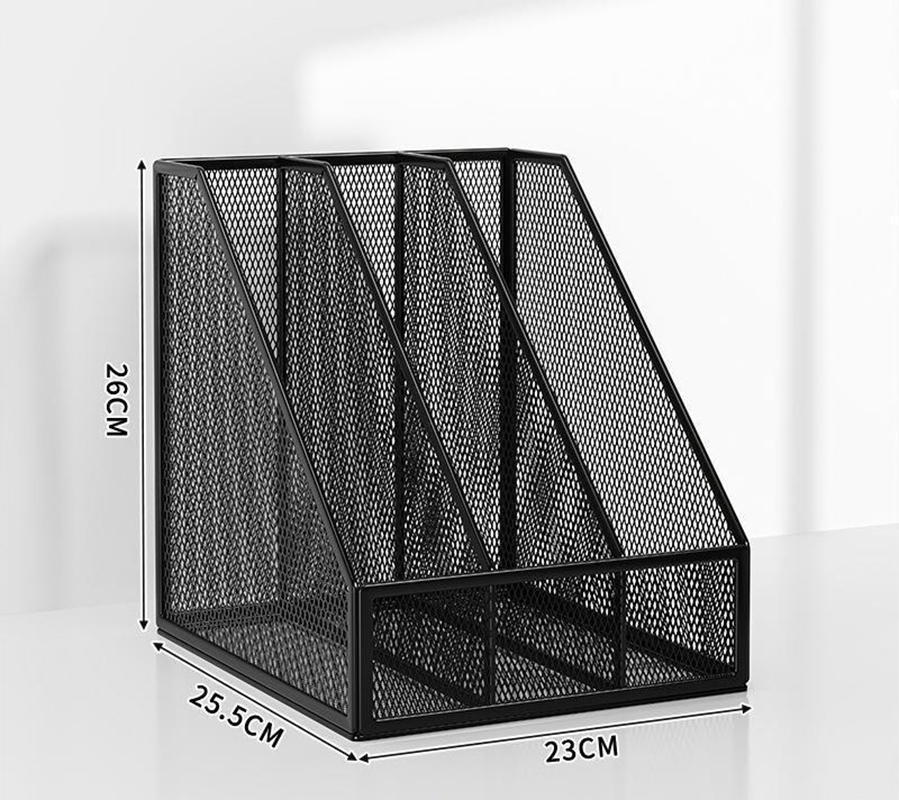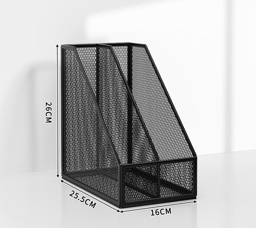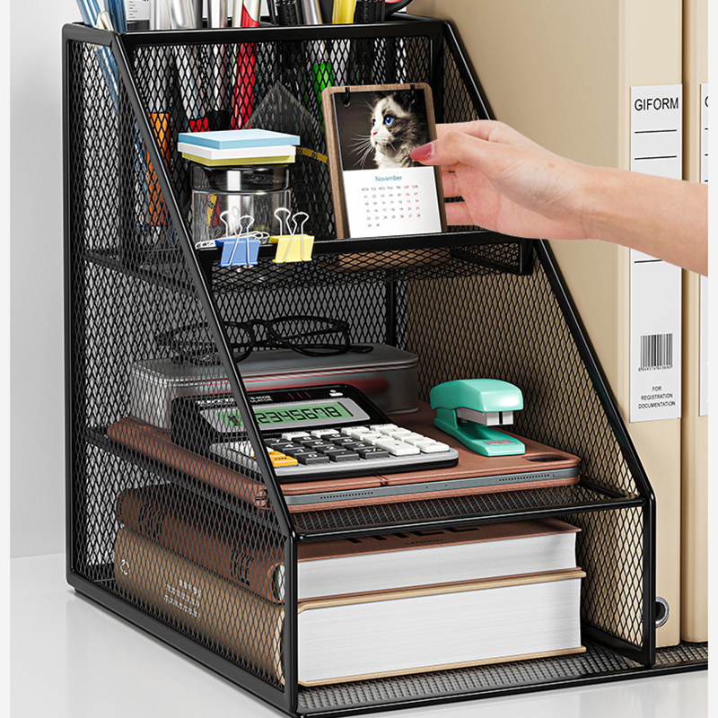 Metal Vertical File Rack Office Desk Storage Rack with Pen Holder Desktop Data File Storage