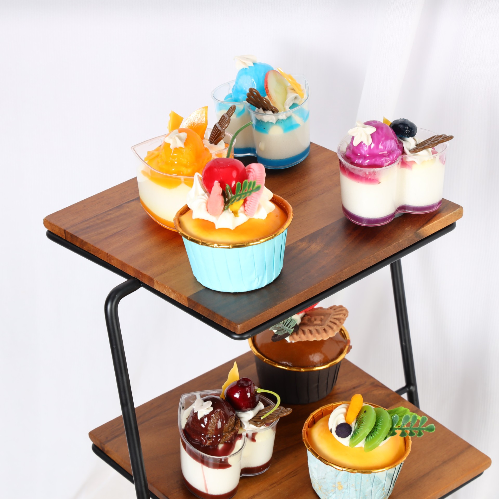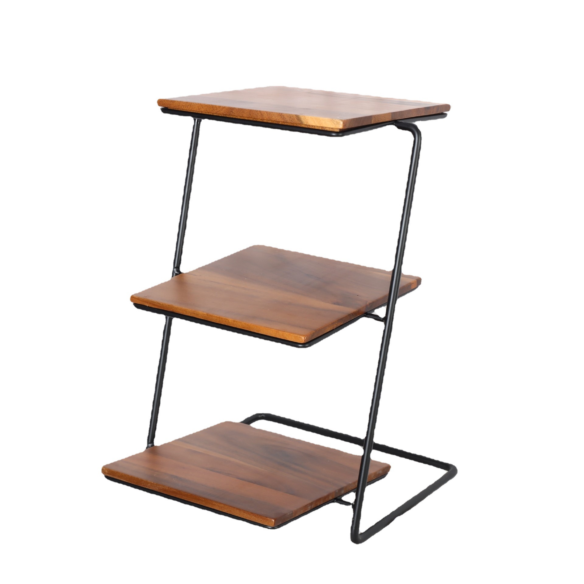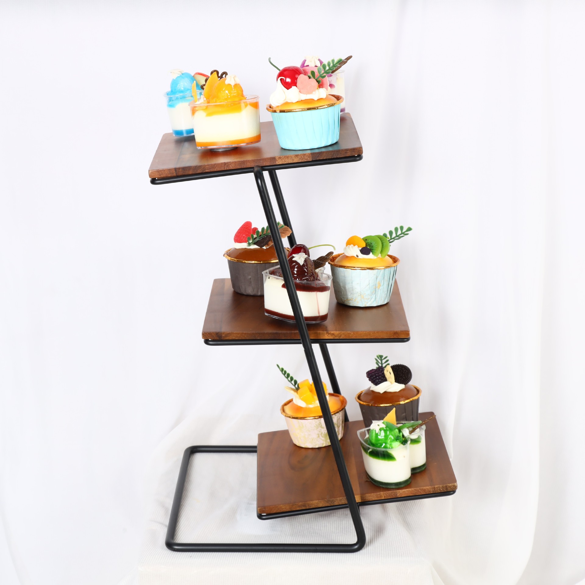 Three-layer iron storage rack Acacia wooden tray cake dessert tray display rack