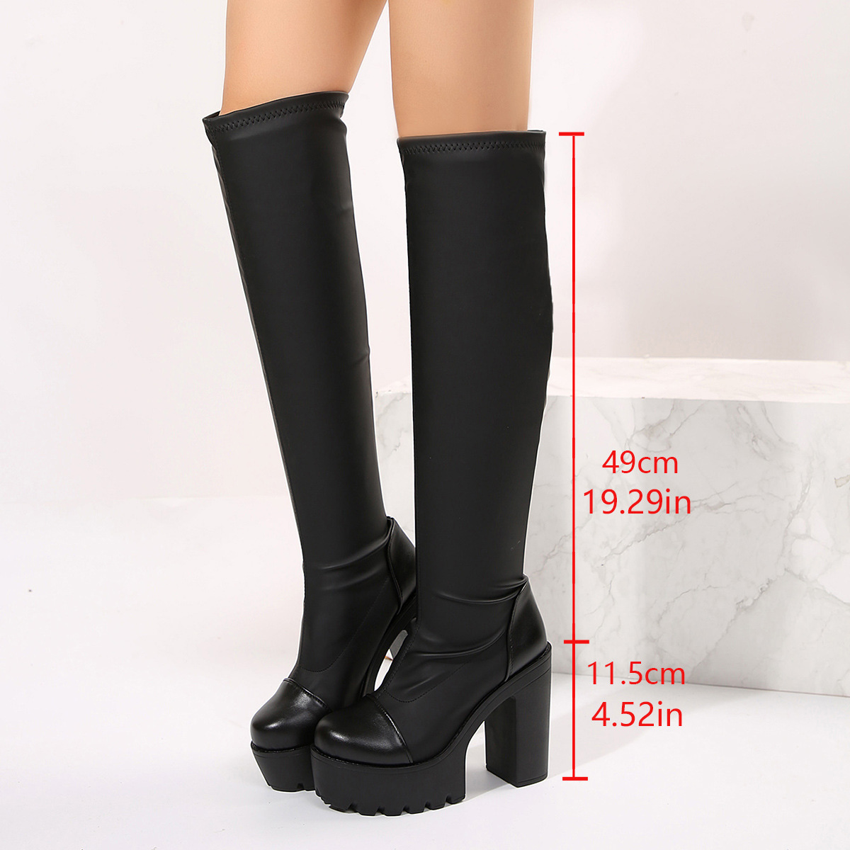 Microfiber PU Synthetic Leather & Plastic heighten Knee High Boots Pair