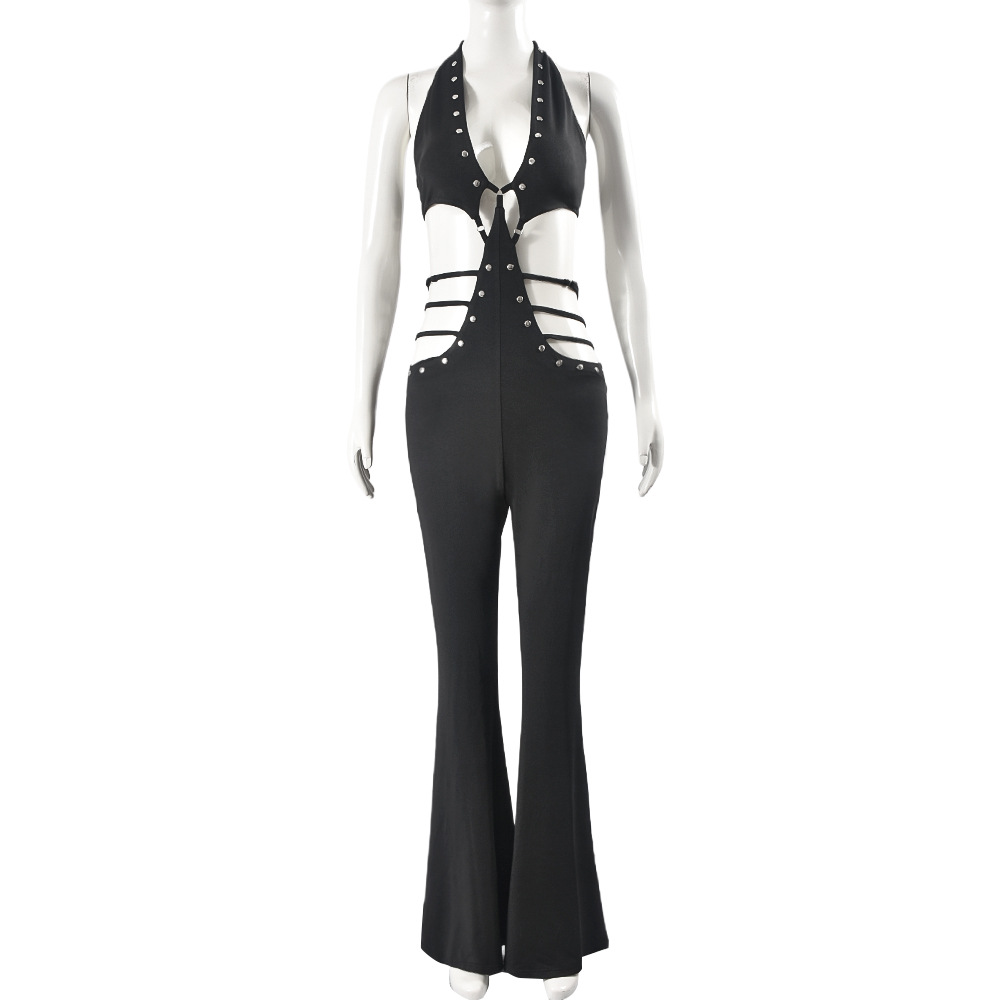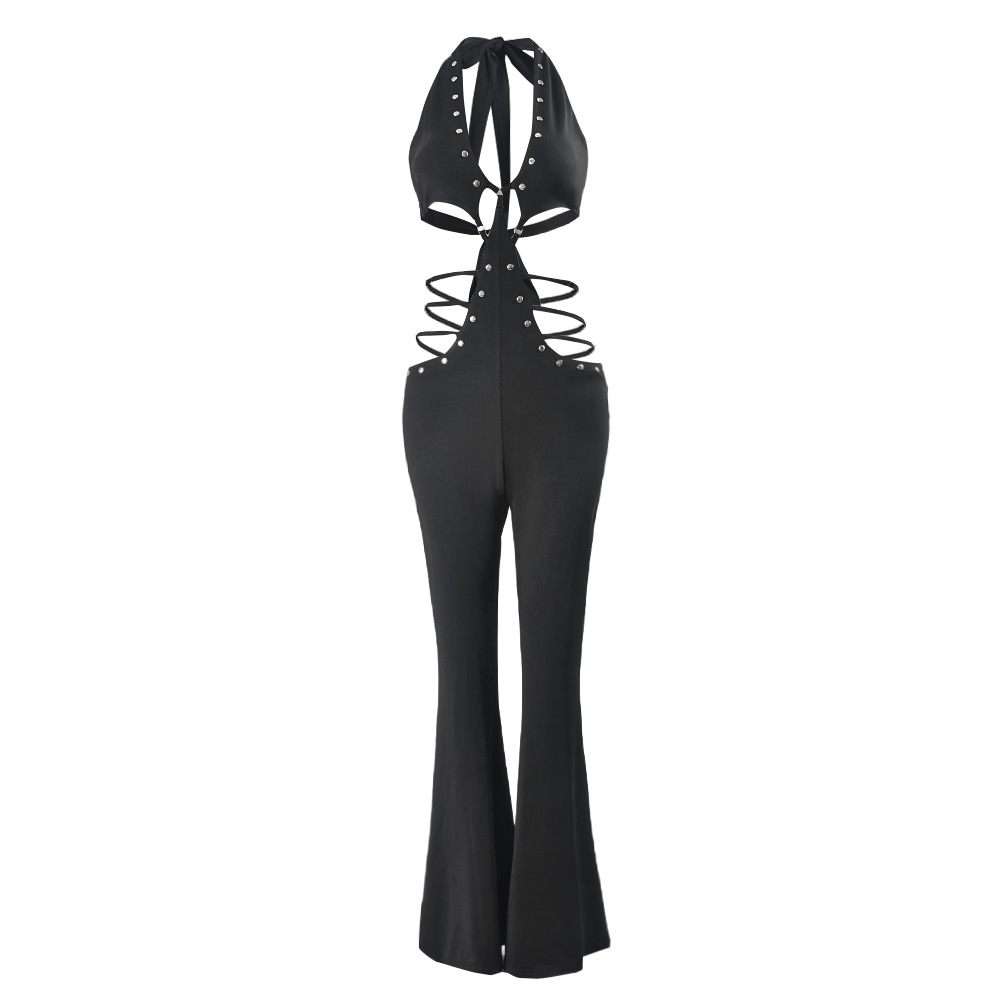 Polyester bell-bottom Long Jumpsuit, backless & different size for choice, more colors for choice,  PC
