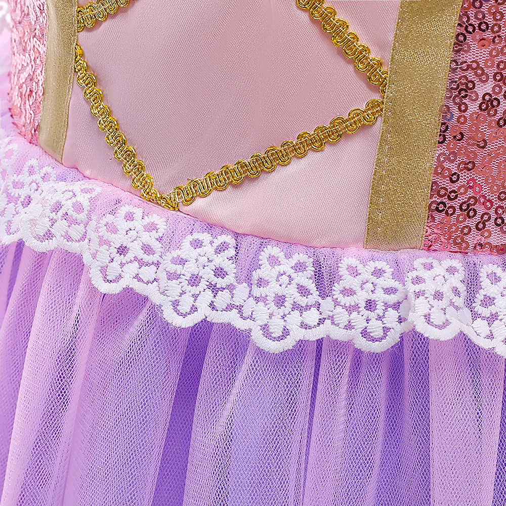 Mixed Fabric & Cotton Princess & Ball Gown Girl One-piece Dress Sequin PC