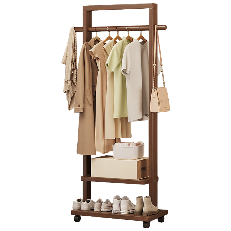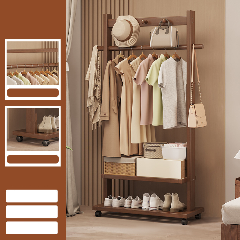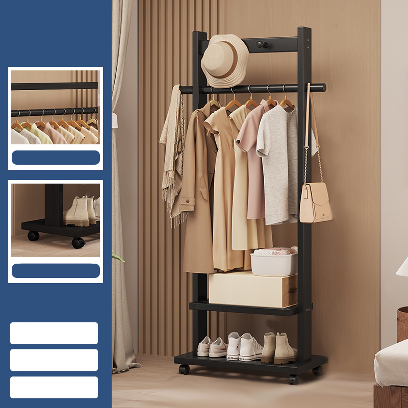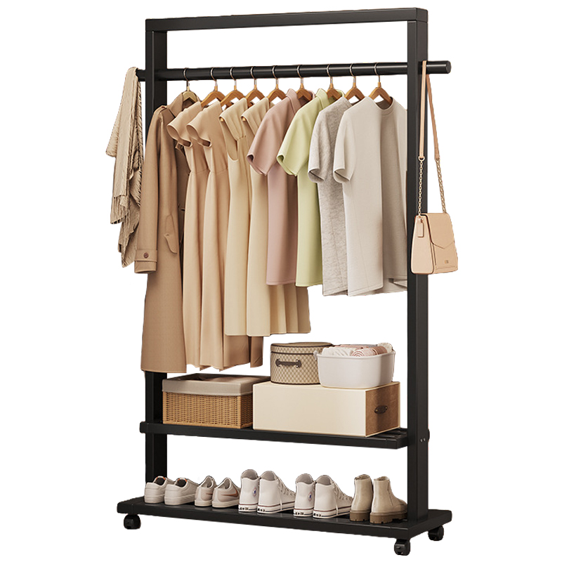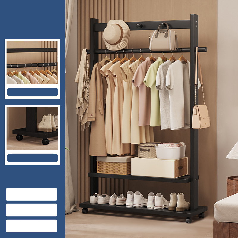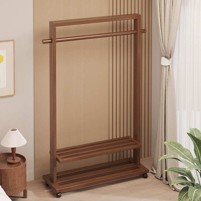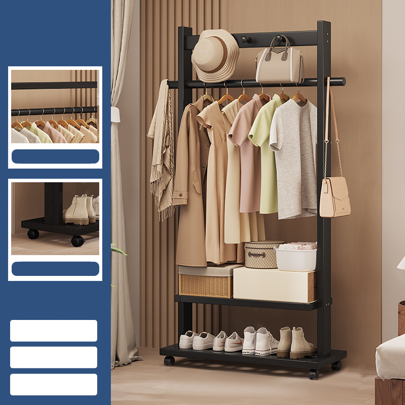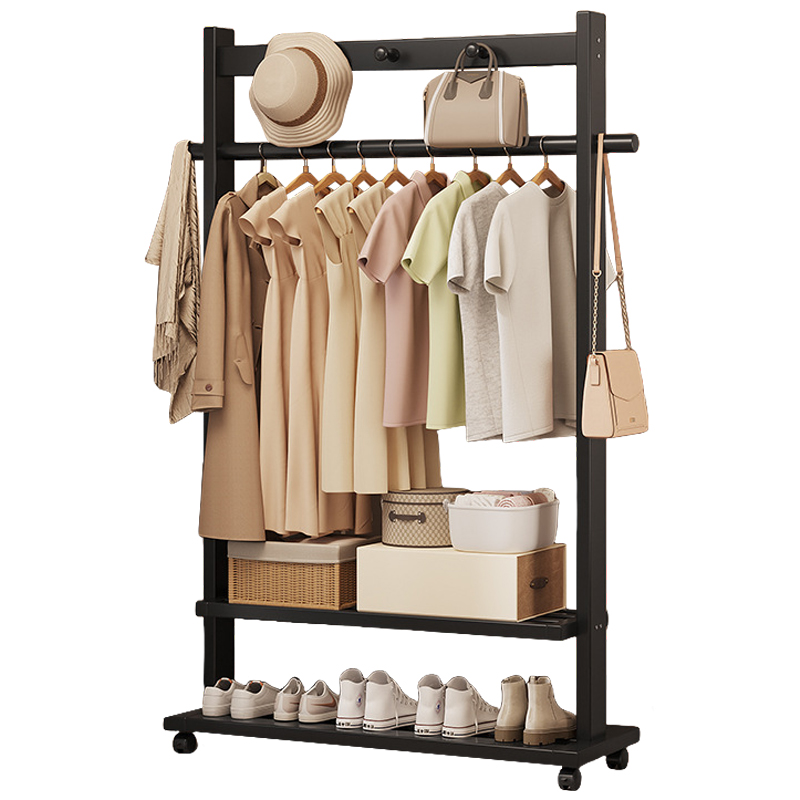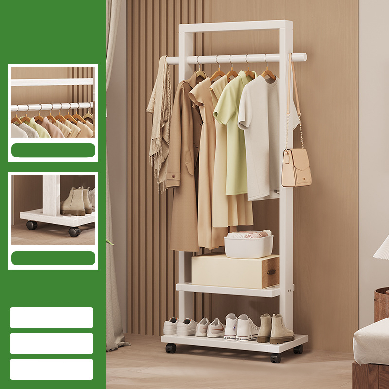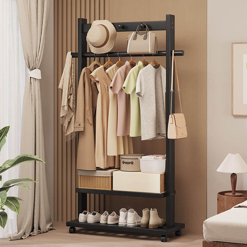 Indoor Clothes Hanger Floor-Standing Wheeled Bedroom Household Coat Rack Simple Clothes Rack