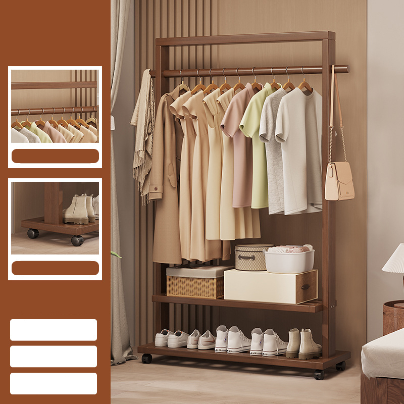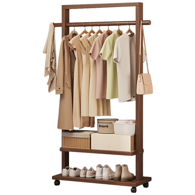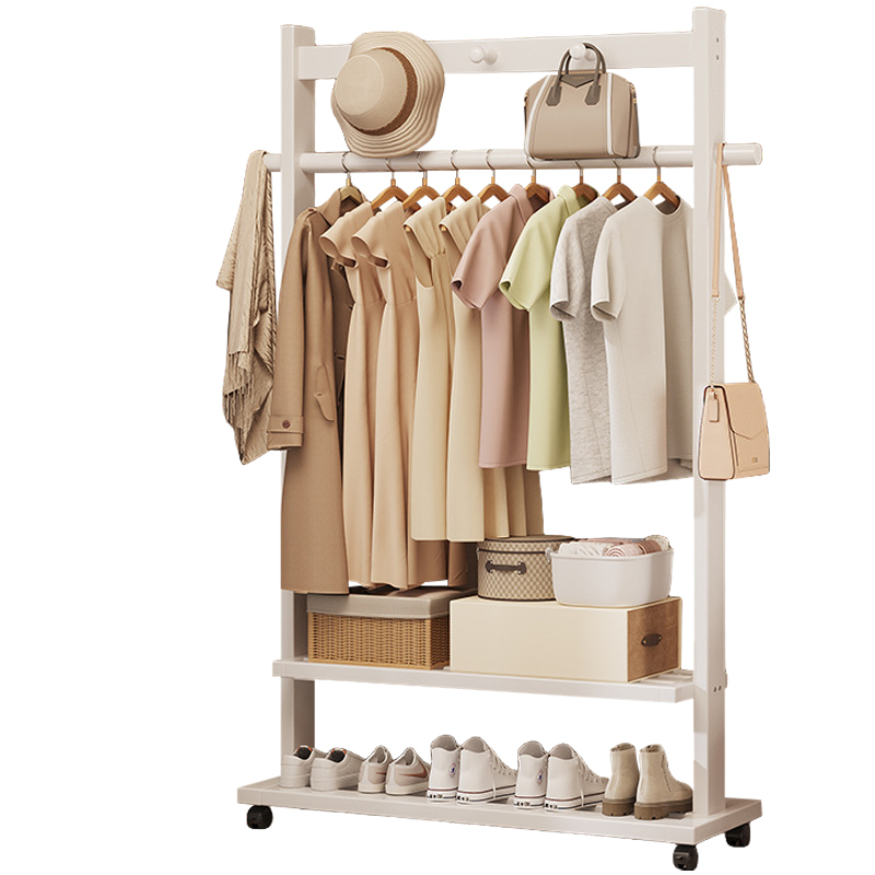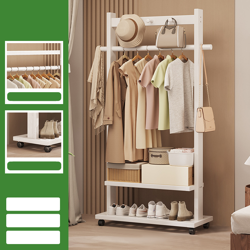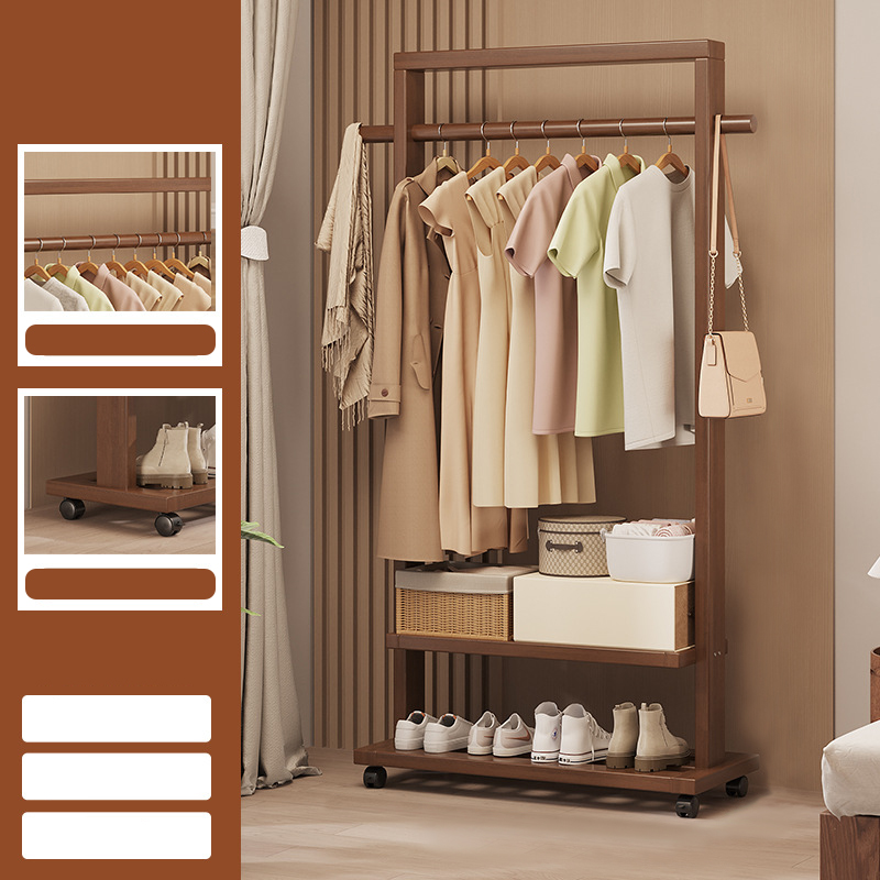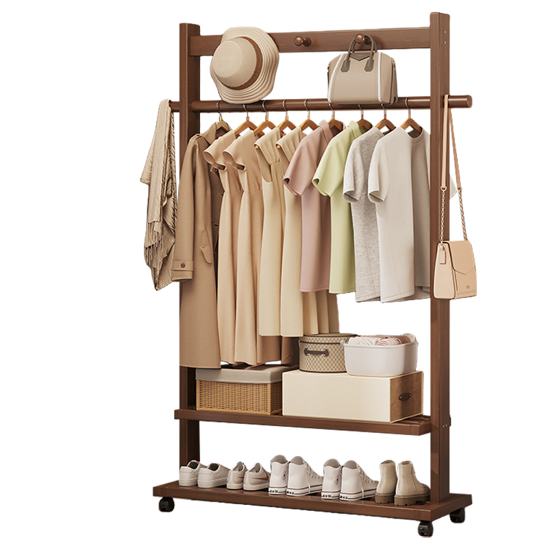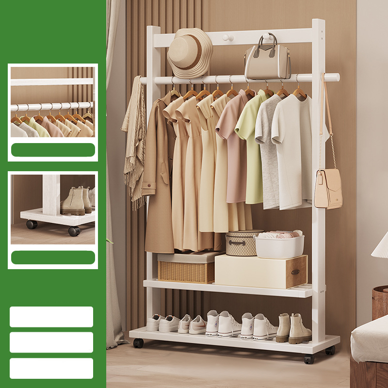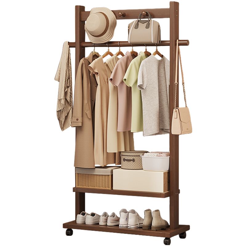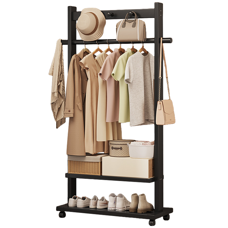 Indoor Clothes Hanger Floor-Standing Wheeled Bedroom Household Coat Rack Simple Clothes Rack