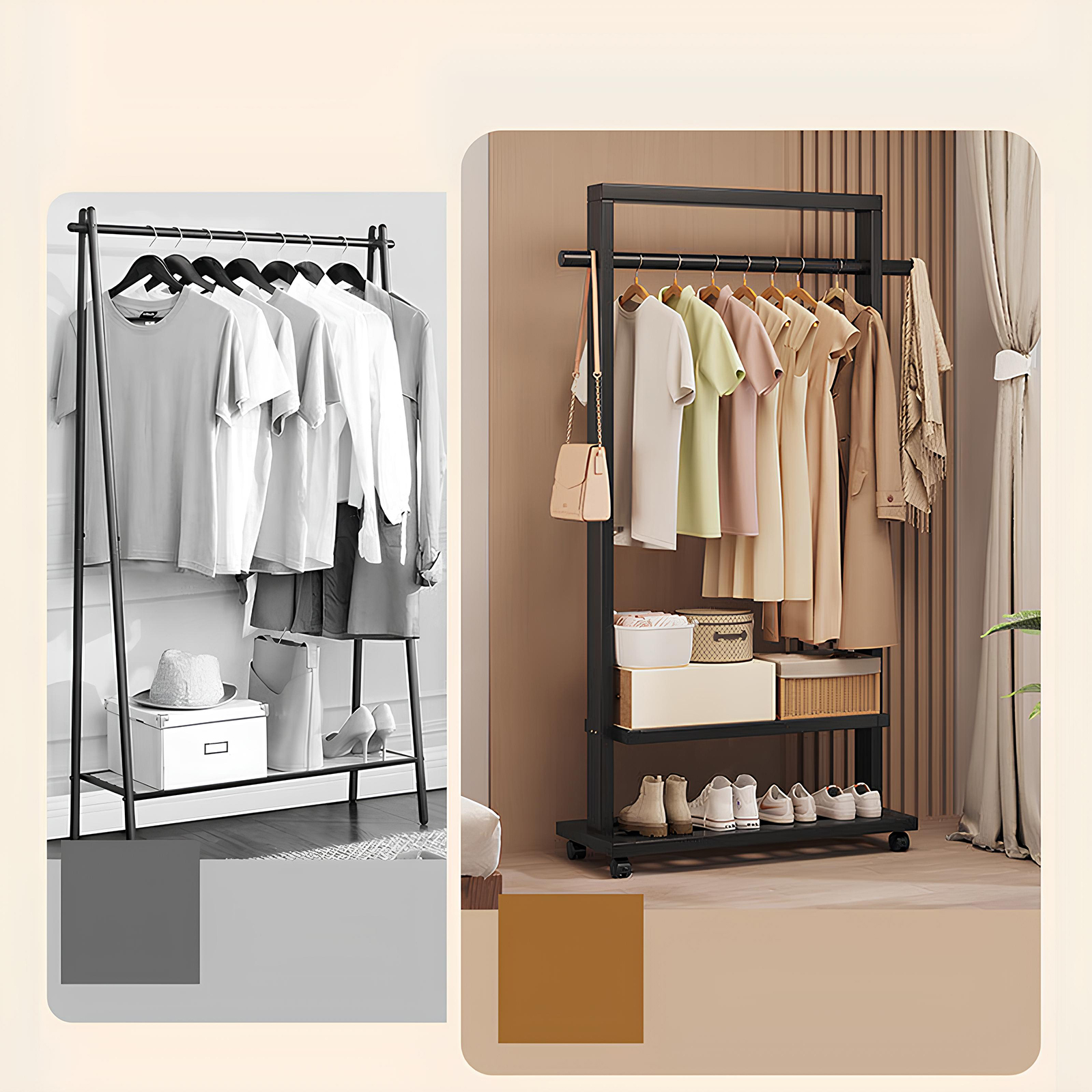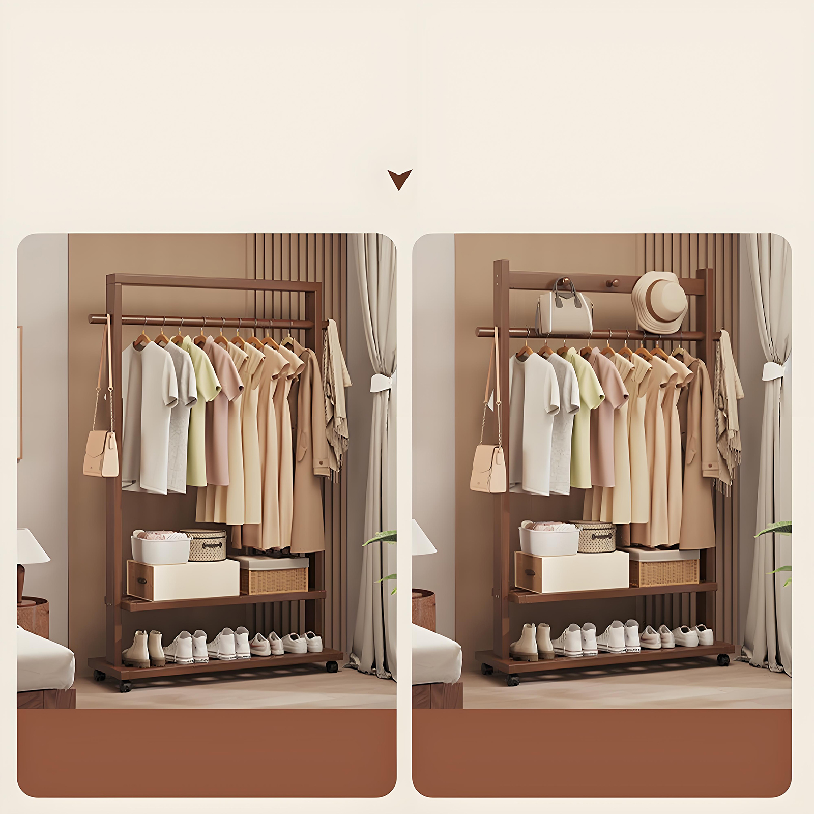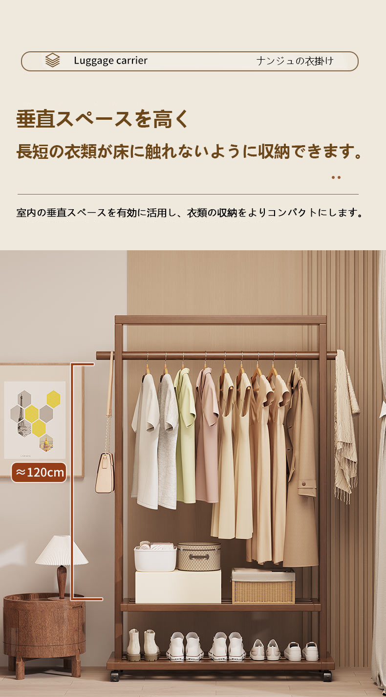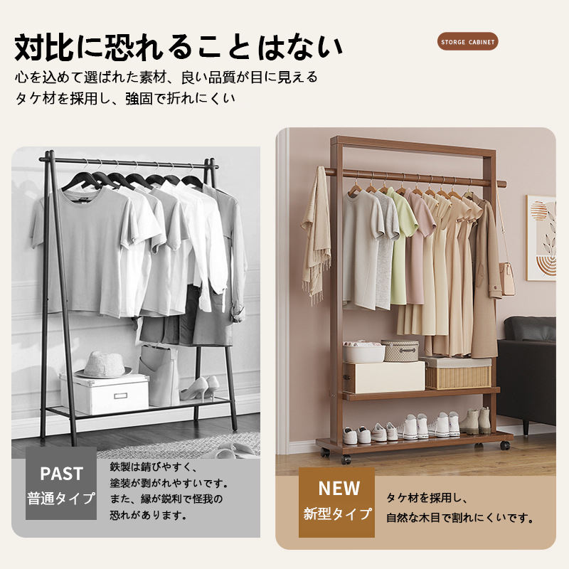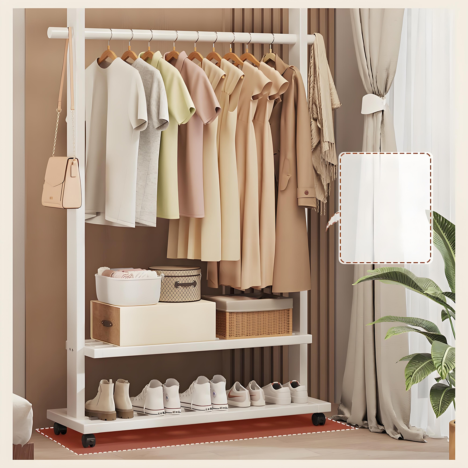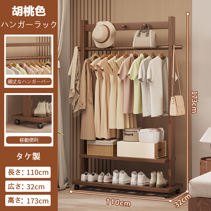 Indoor Clothes Hanger Floor-Standing Wheeled Bedroom Household Coat Rack Simple Clothes Rack