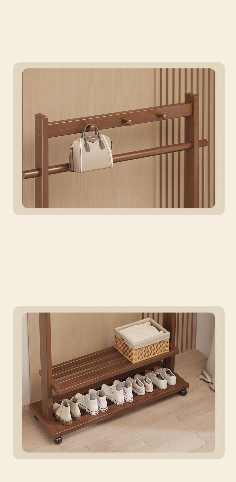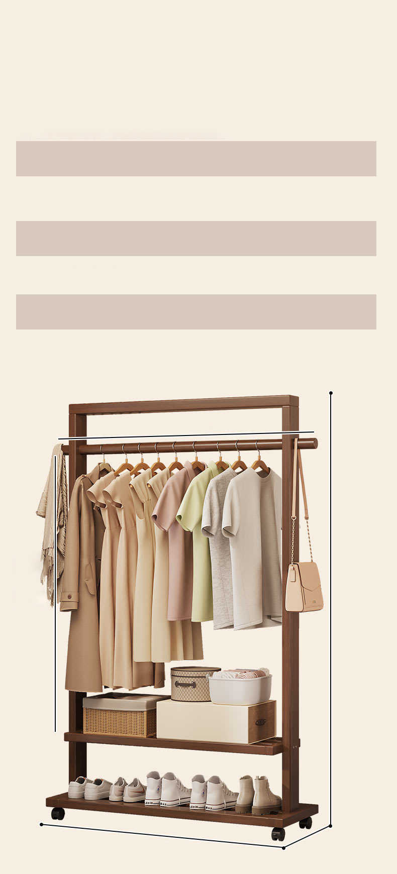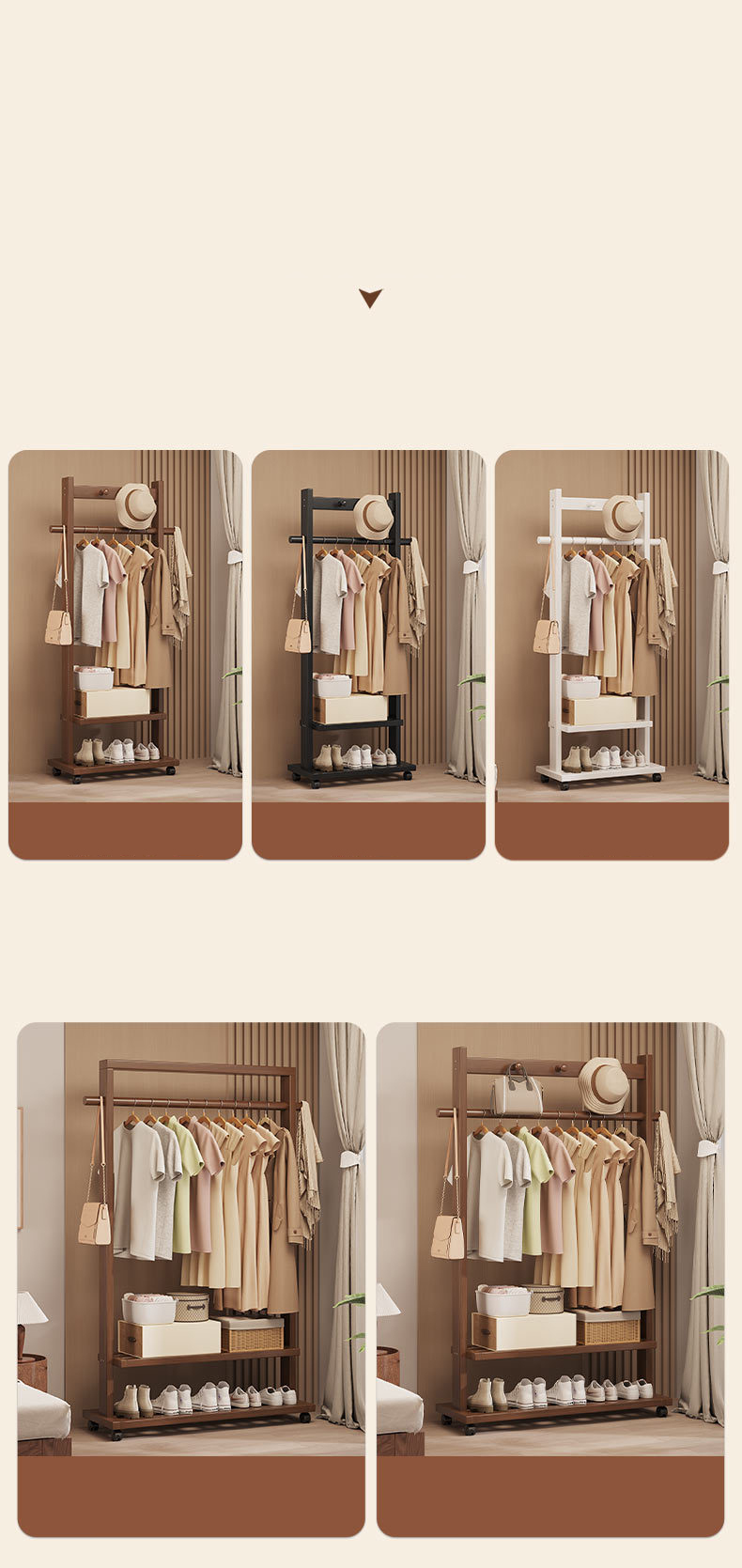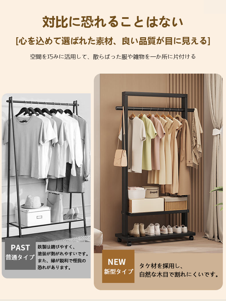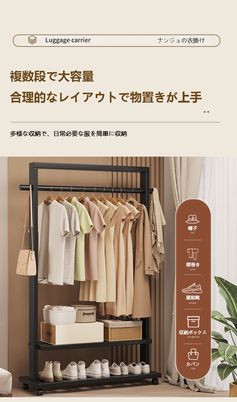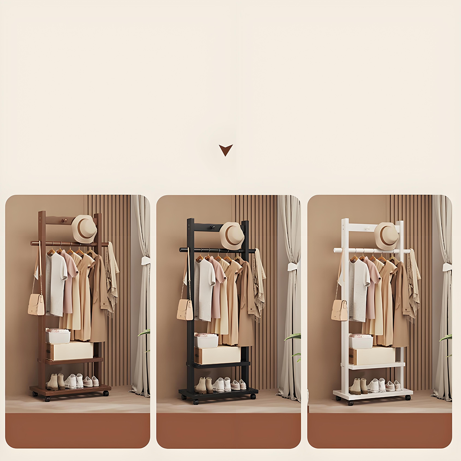 Indoor Clothes Hanger Floor-Standing Wheeled Bedroom Household Coat Rack Simple Clothes Rack