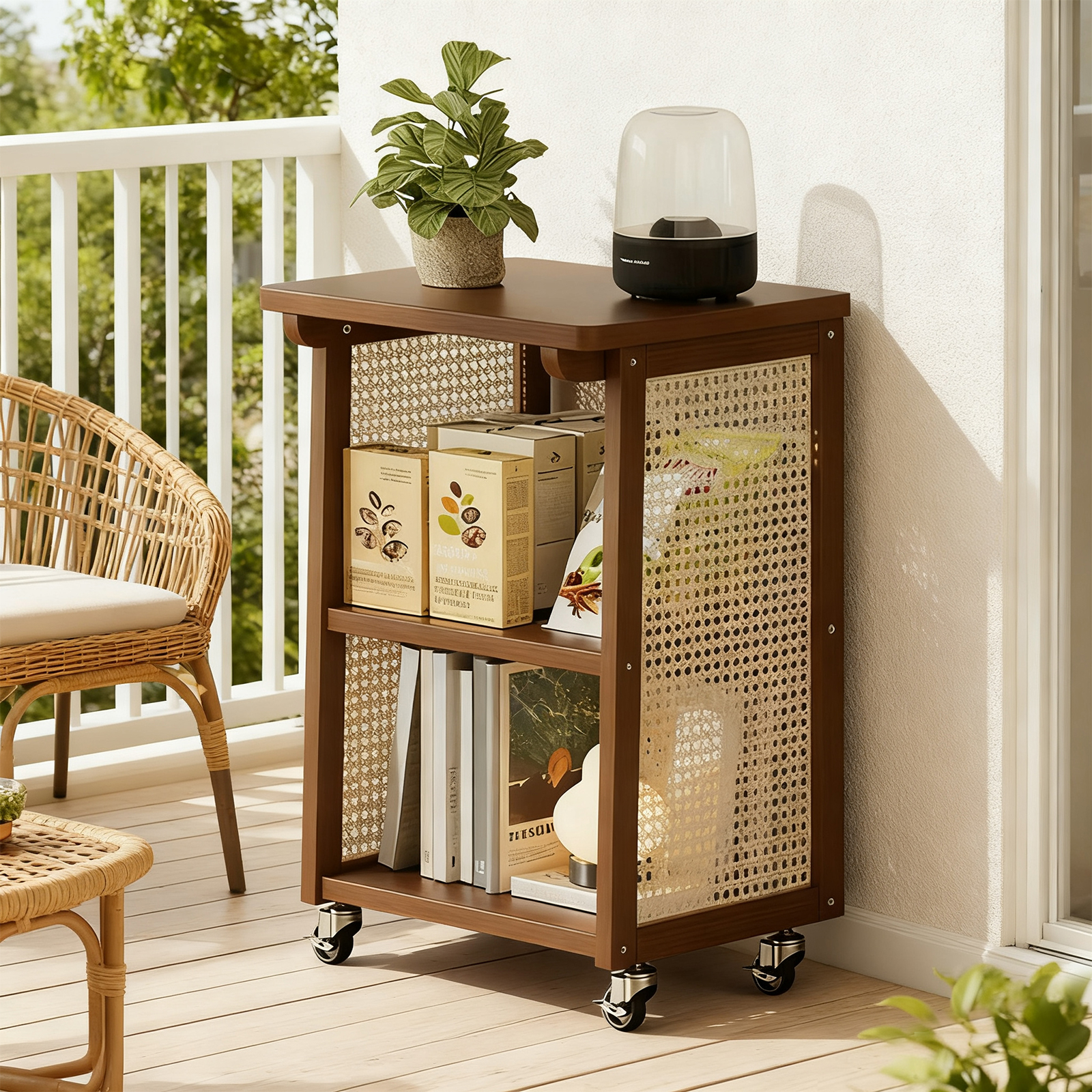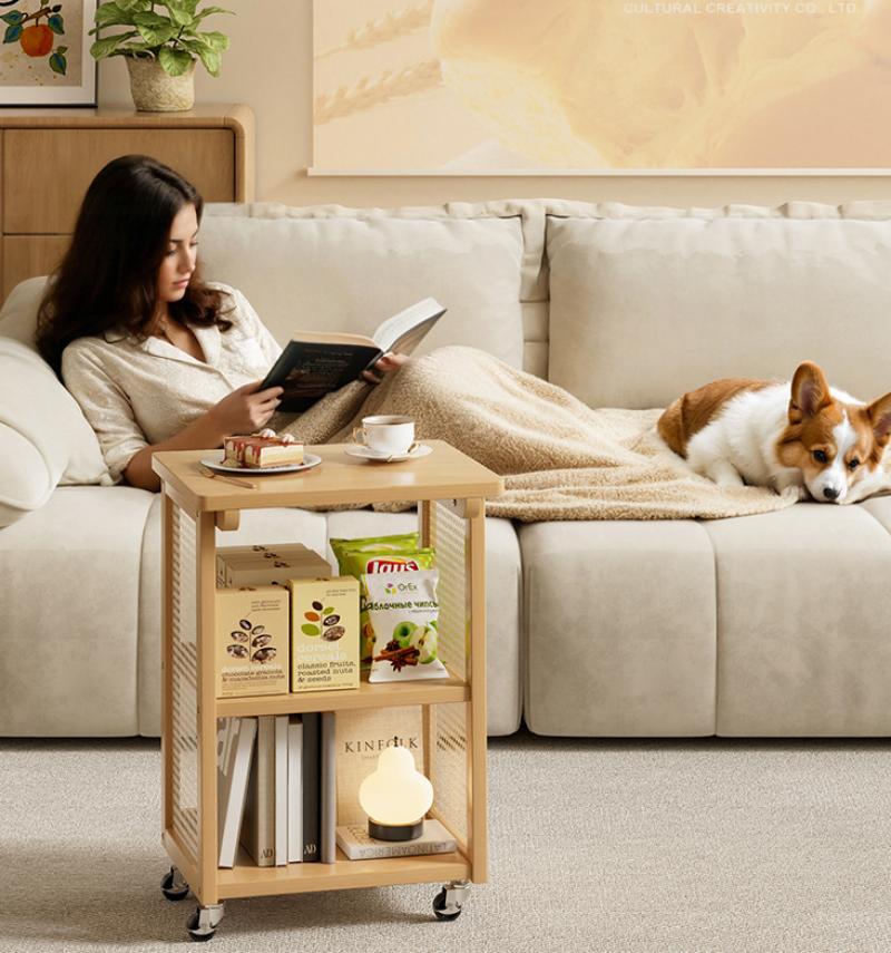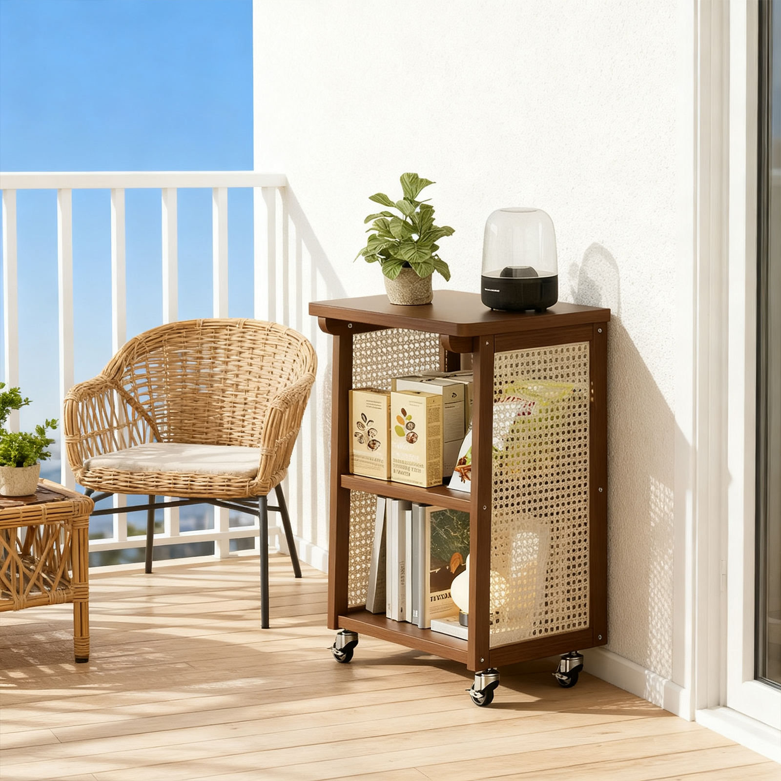 Moso Bamboo & Rattan Multifunction Tea Table for storage & durable PC