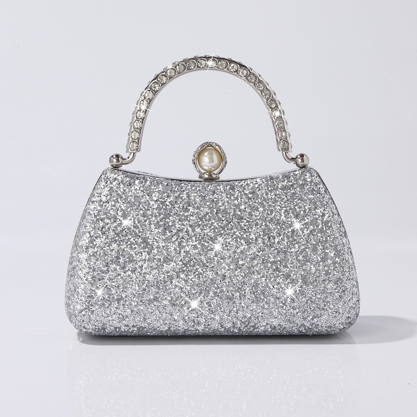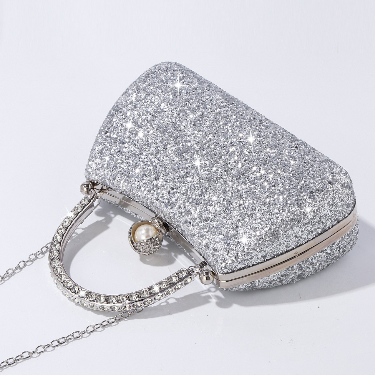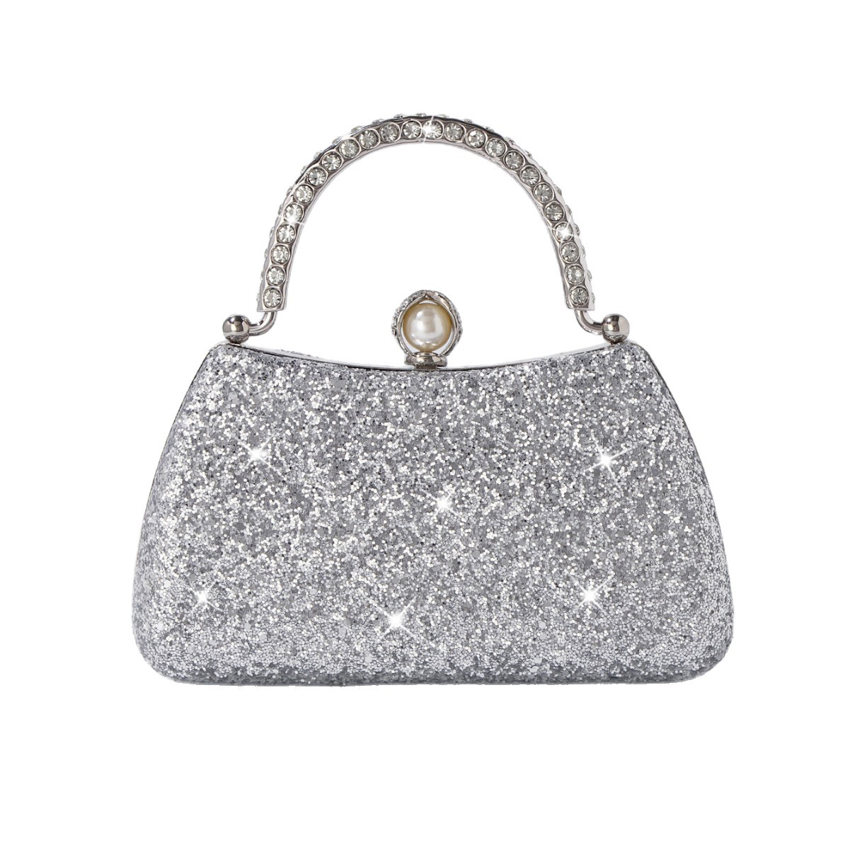 Nylon & Polyester Clutch Bag durable & with rhinestone Sequin silver PC