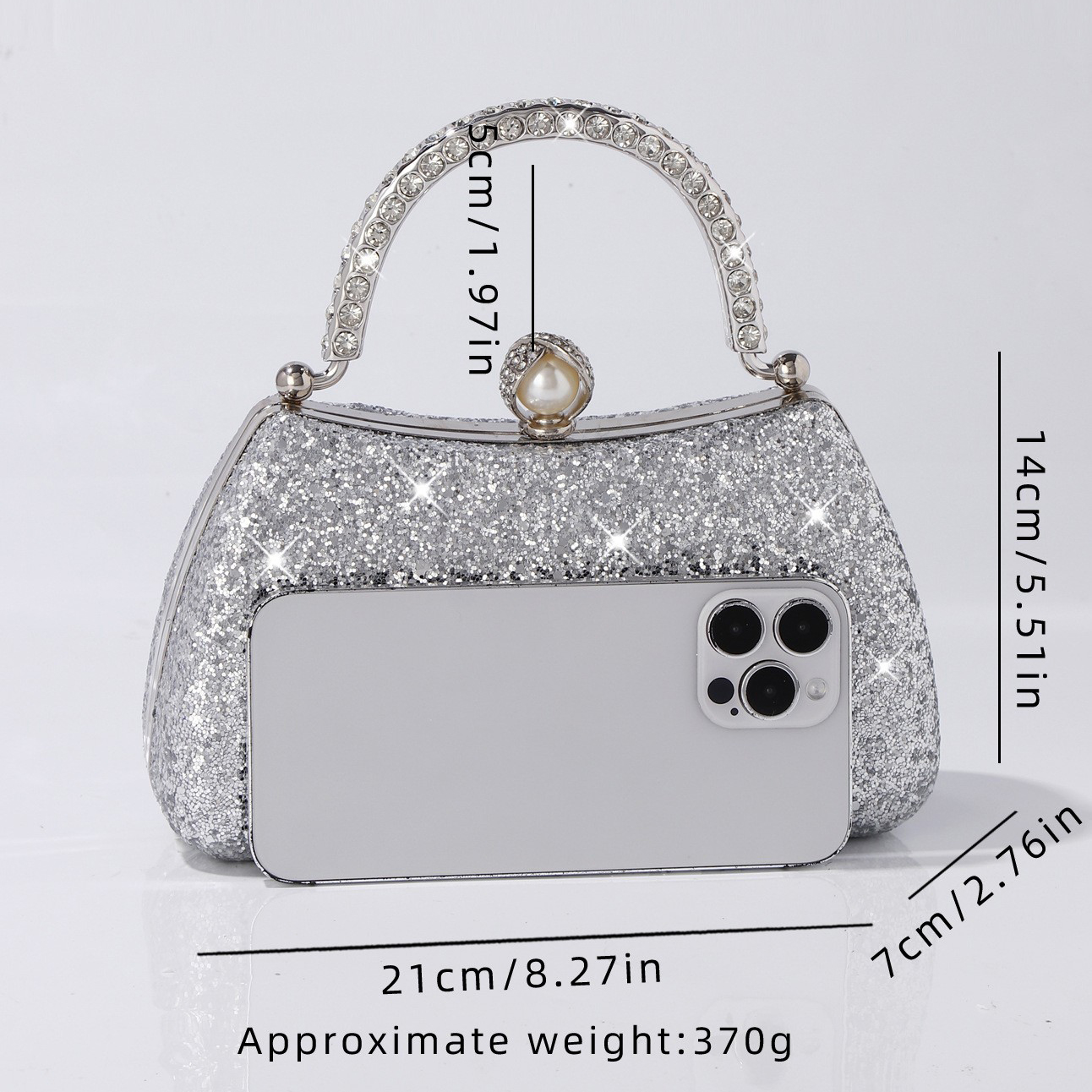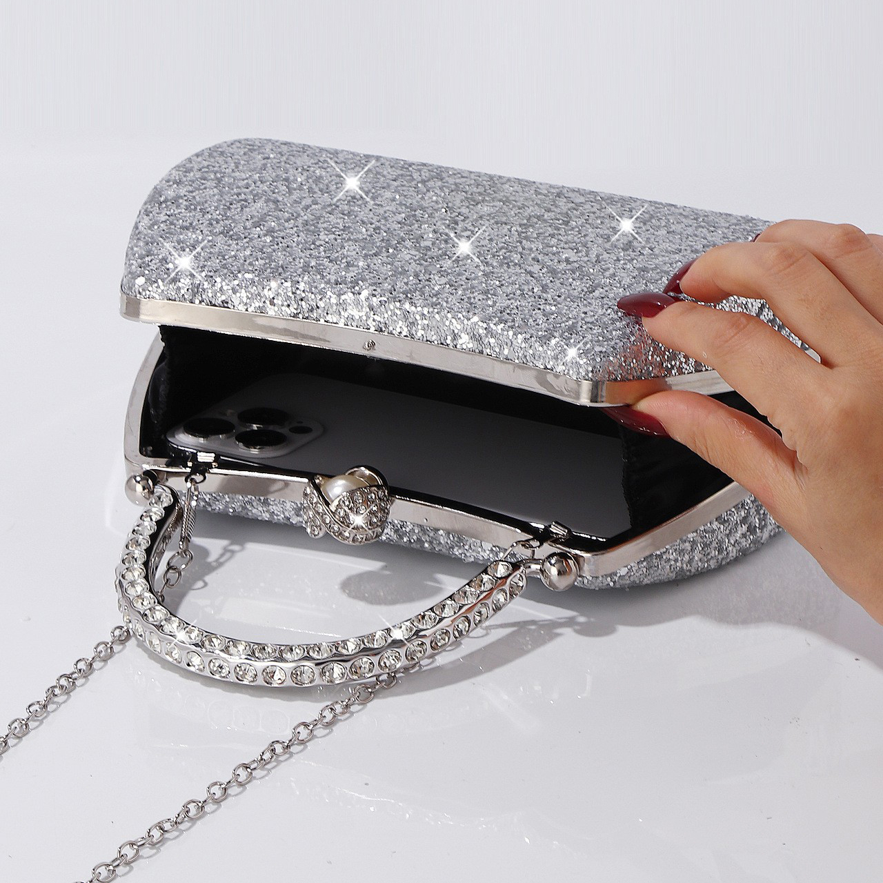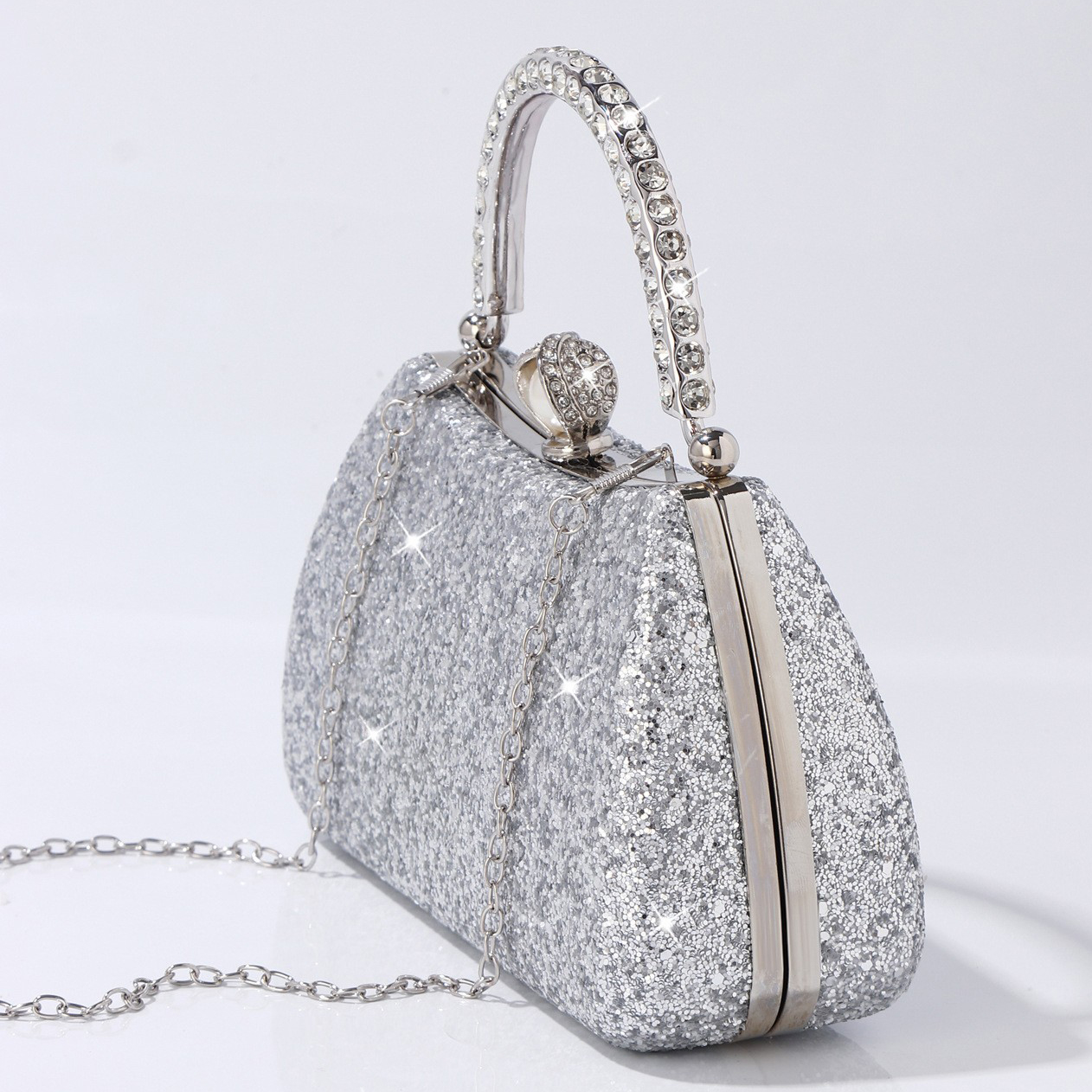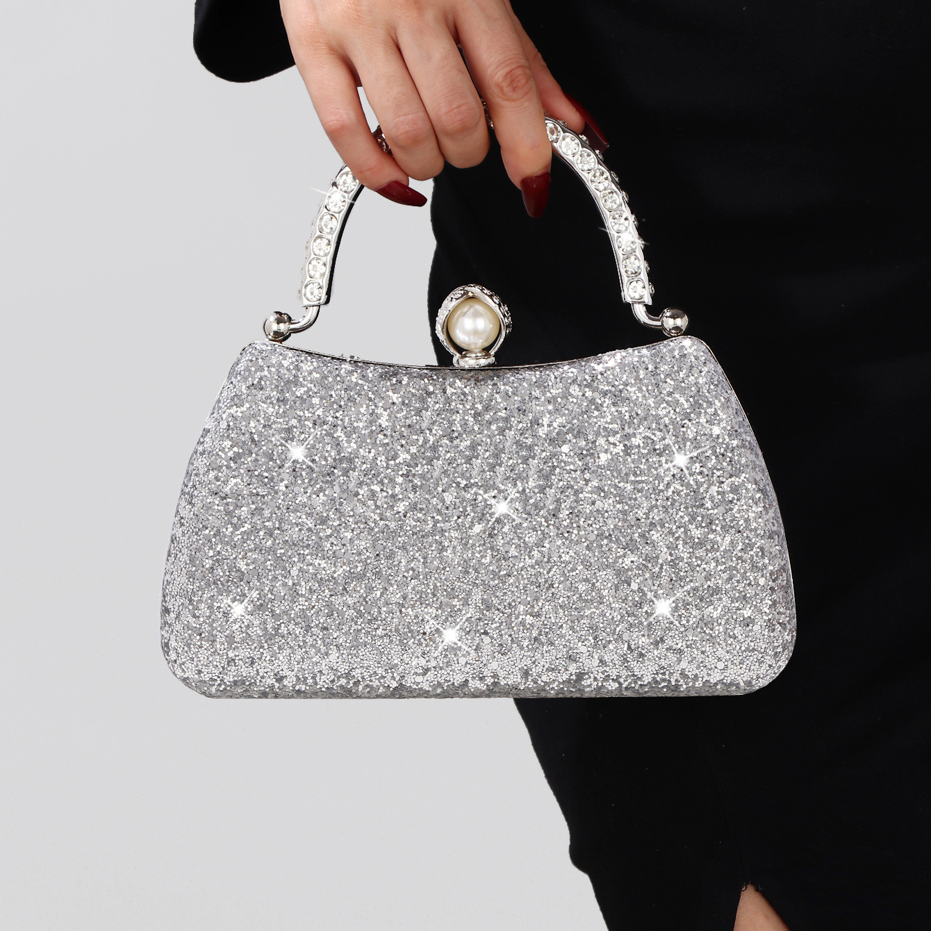 Nylon & Polyester Clutch Bag durable & with rhinestone Sequin silver PC