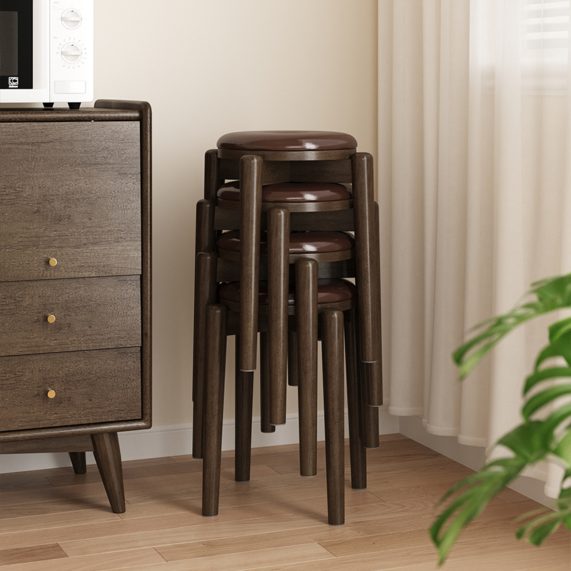 Solid Wood Stool Soft Bag Round Stool Household Stackable Simple Small Stool