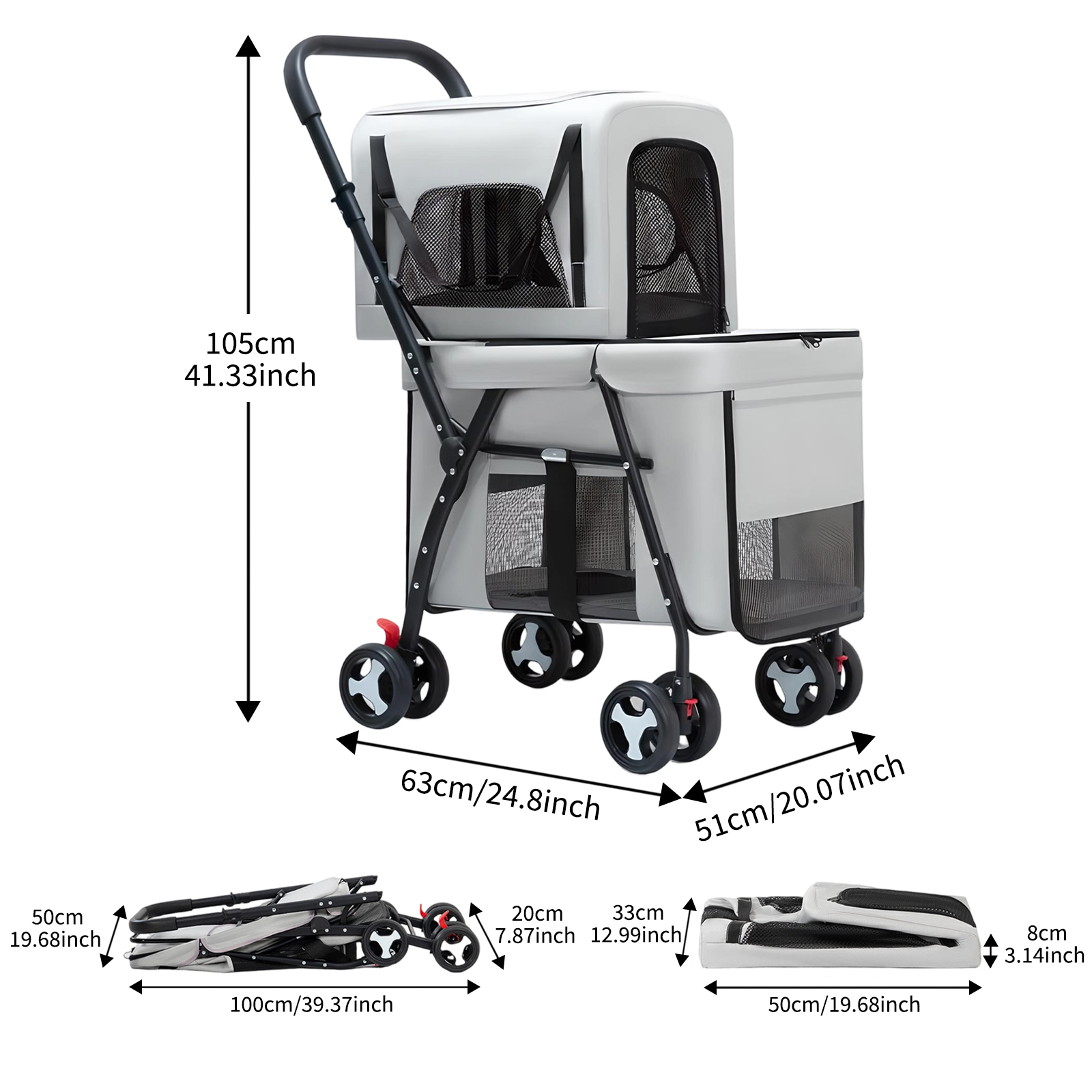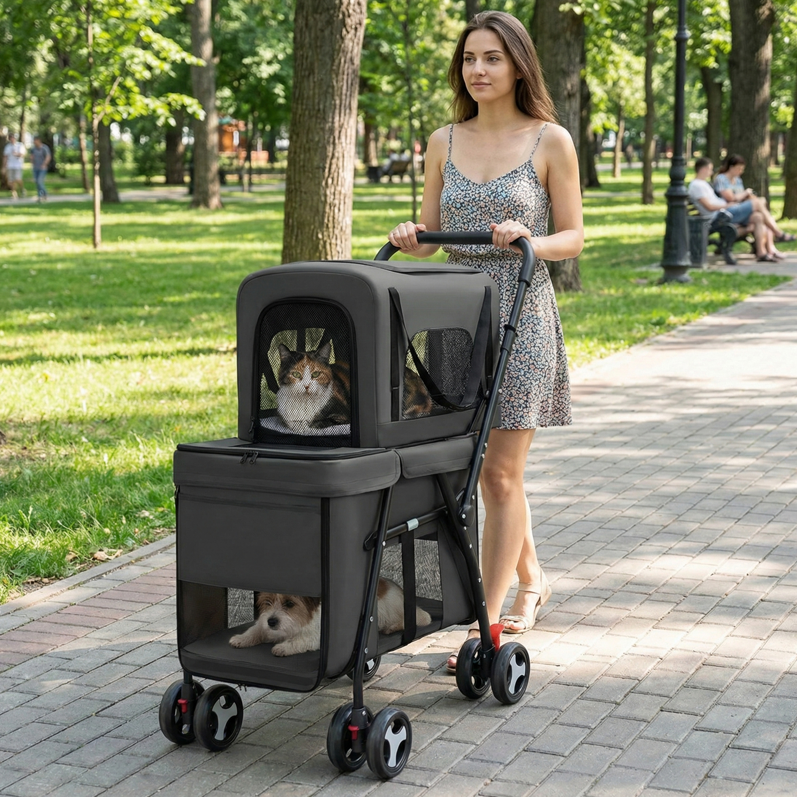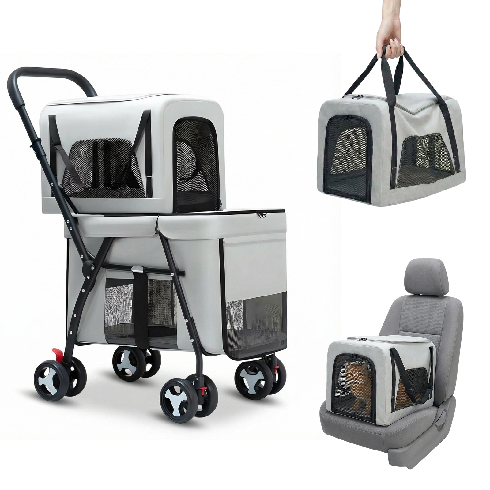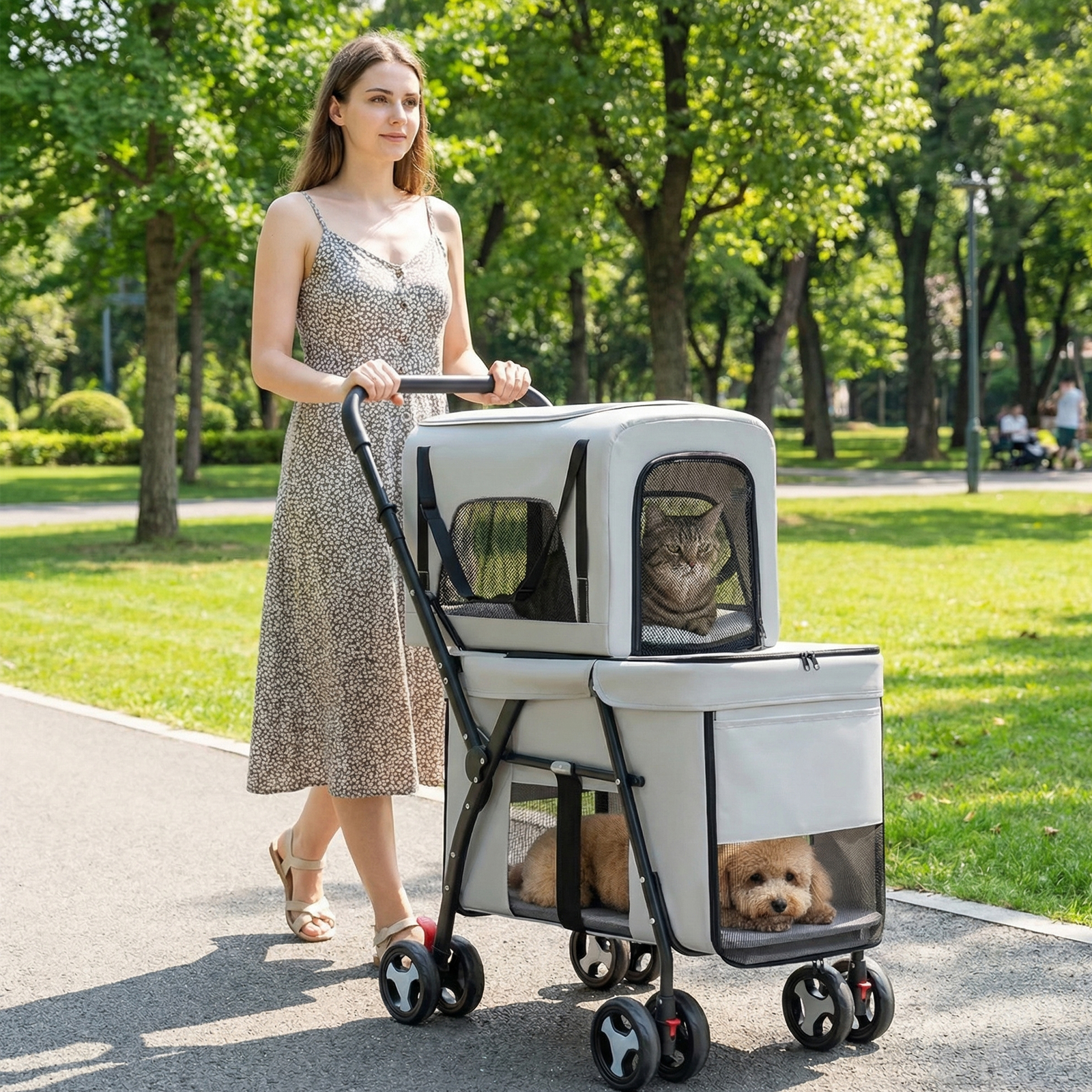 Oxford & Gauze foldable Pet stroller double layer & detachable PC