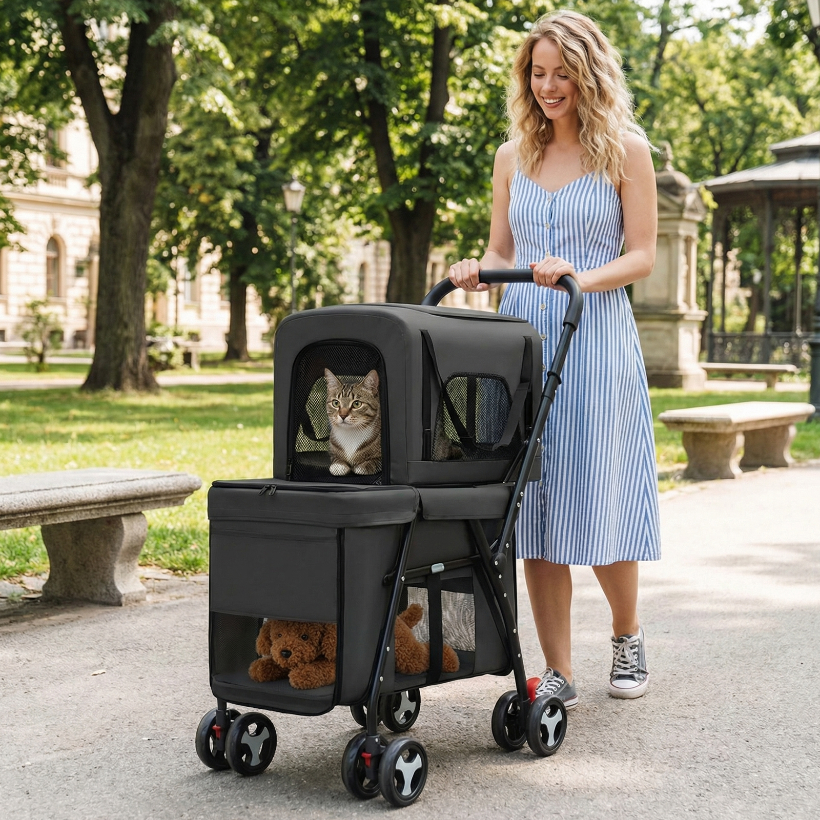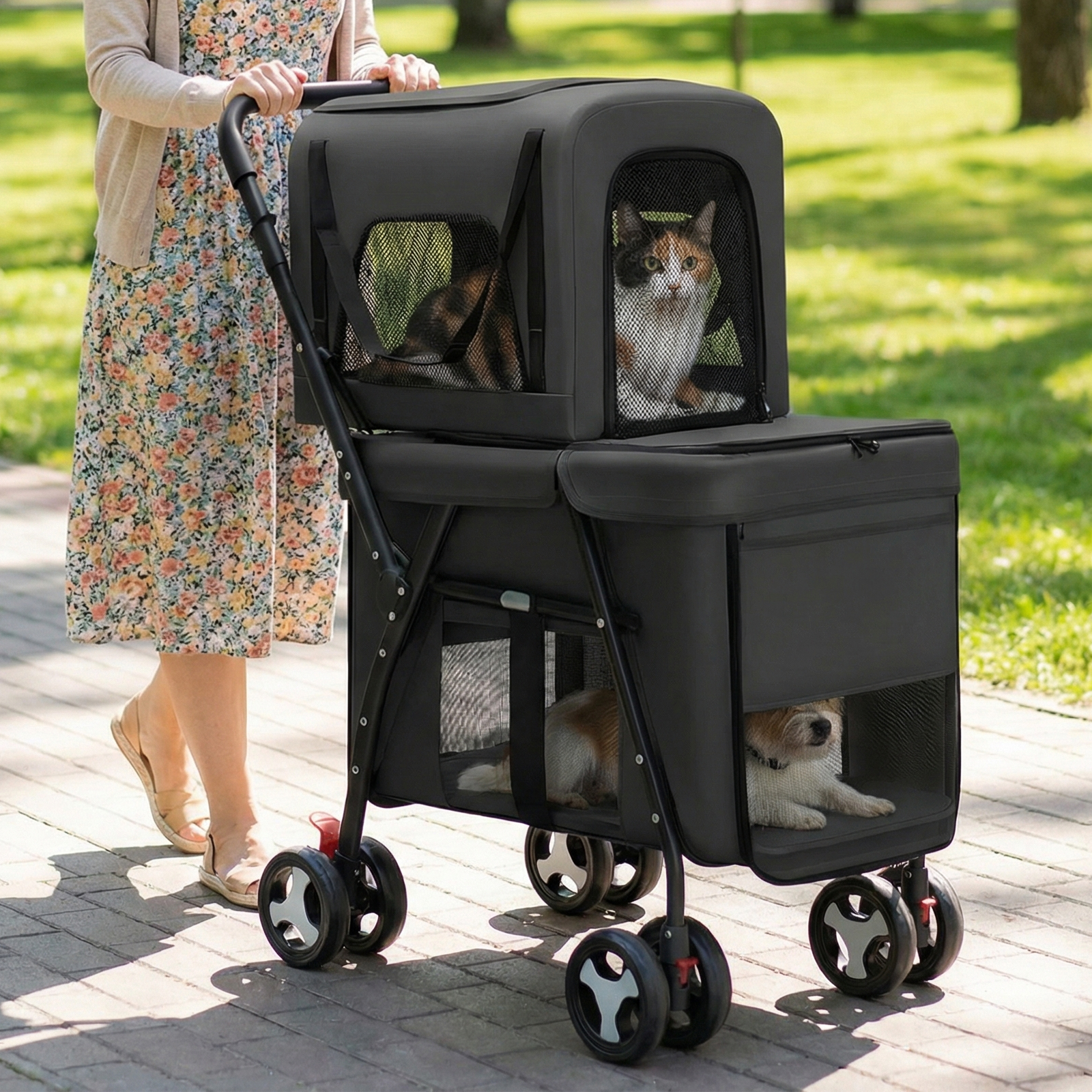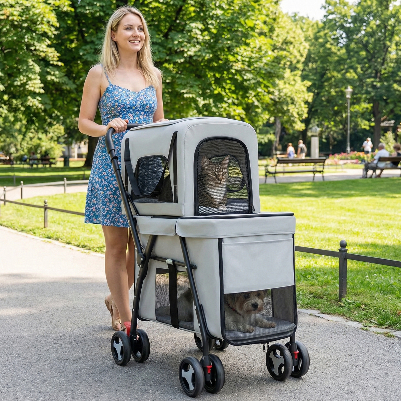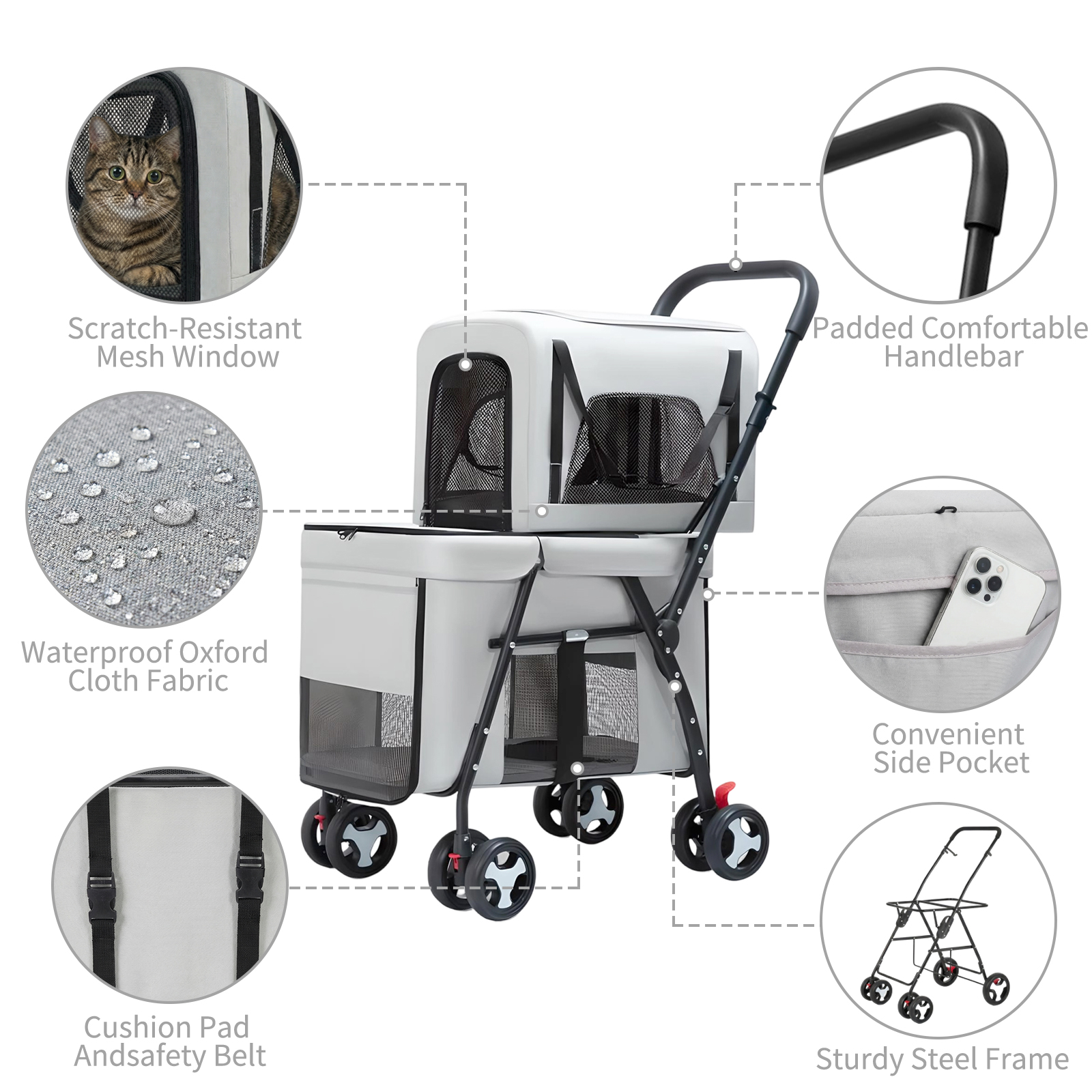 Oxford & Gauze foldable Pet stroller double layer & detachable PC