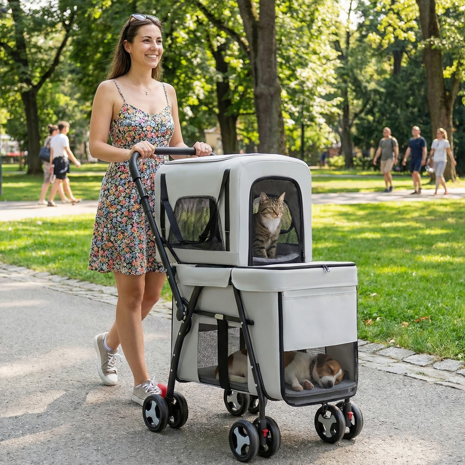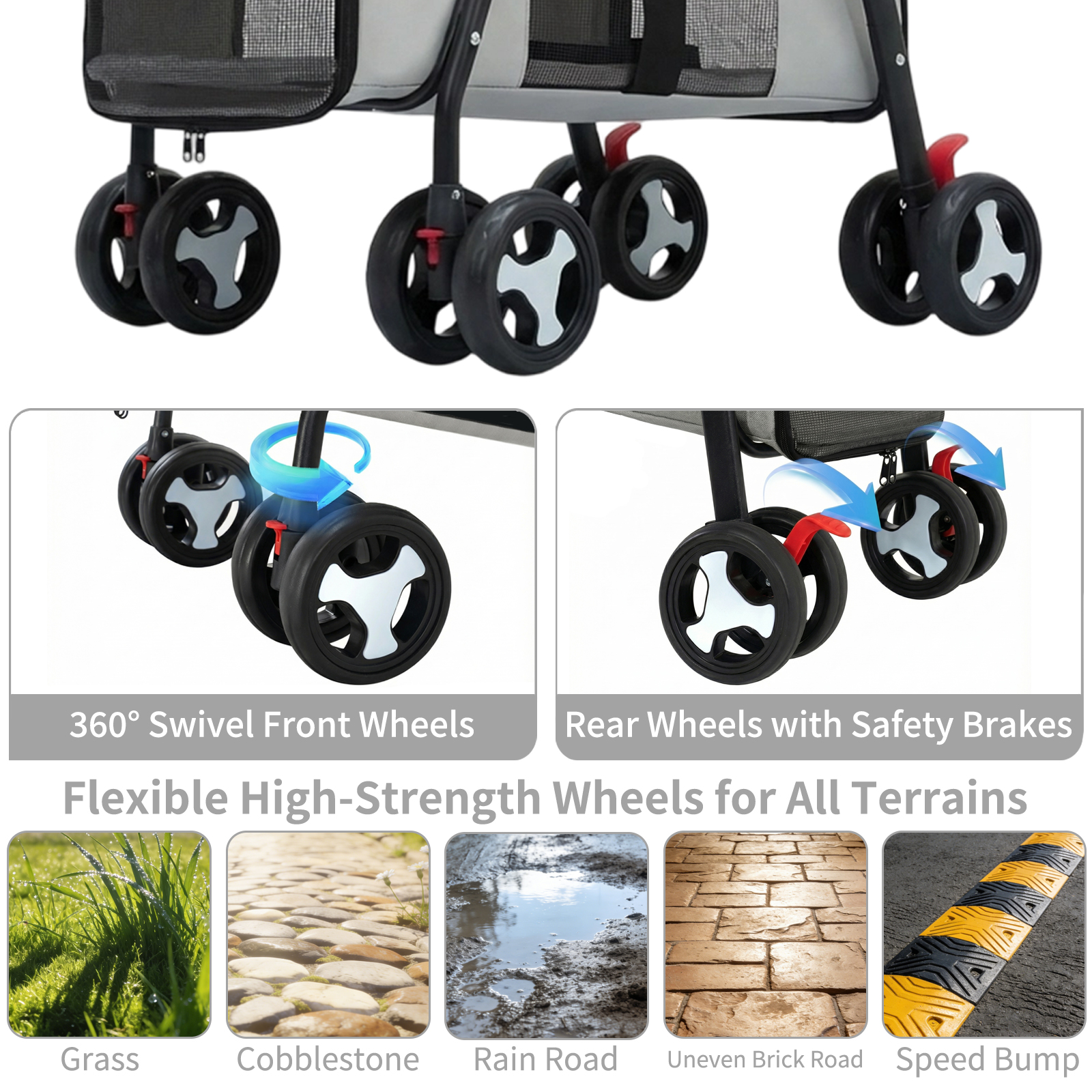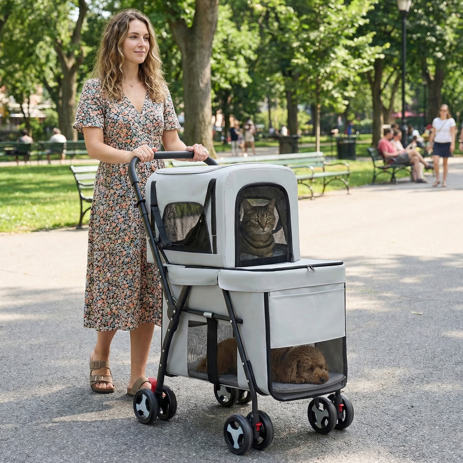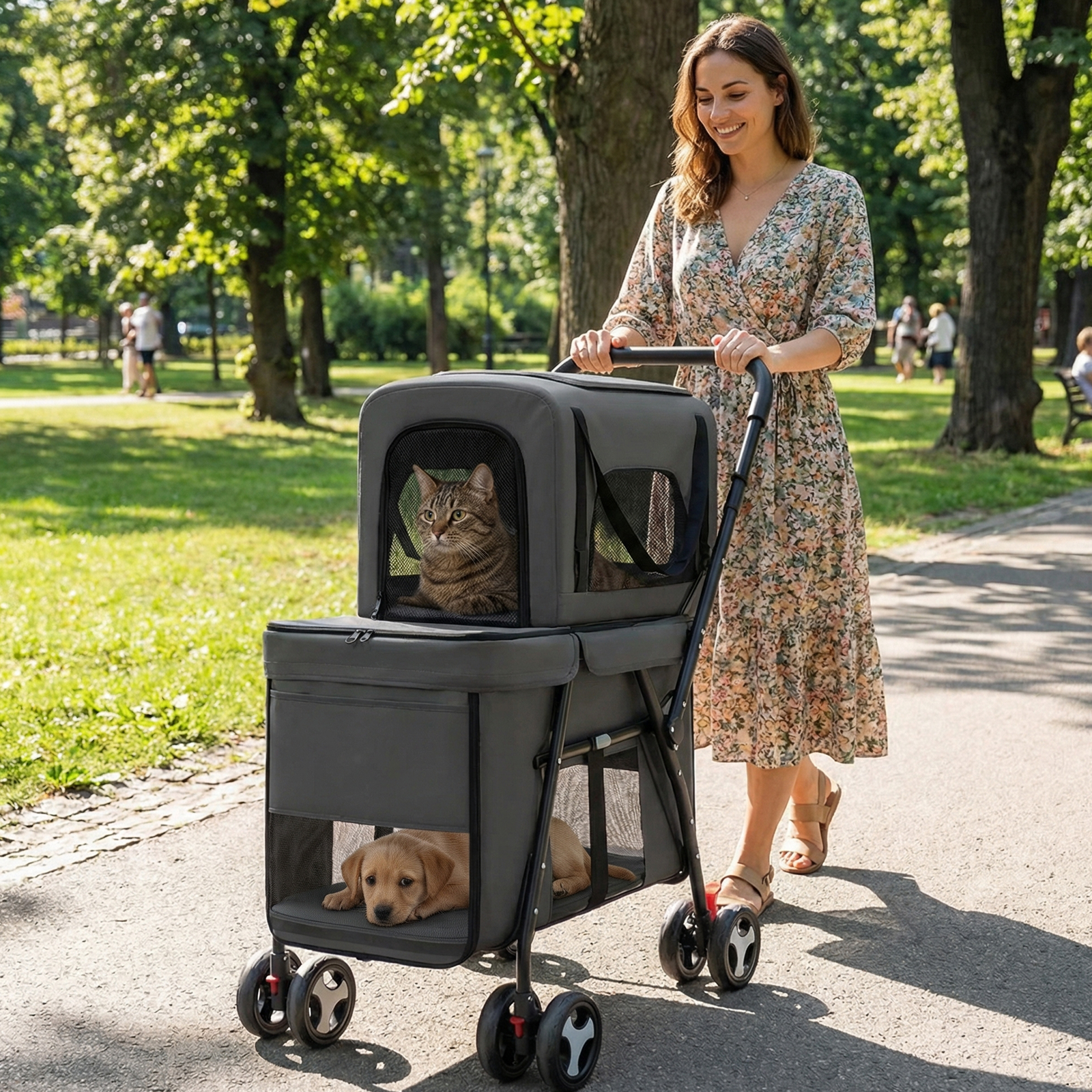 Oxford & Gauze foldable Pet stroller double layer & detachable PC