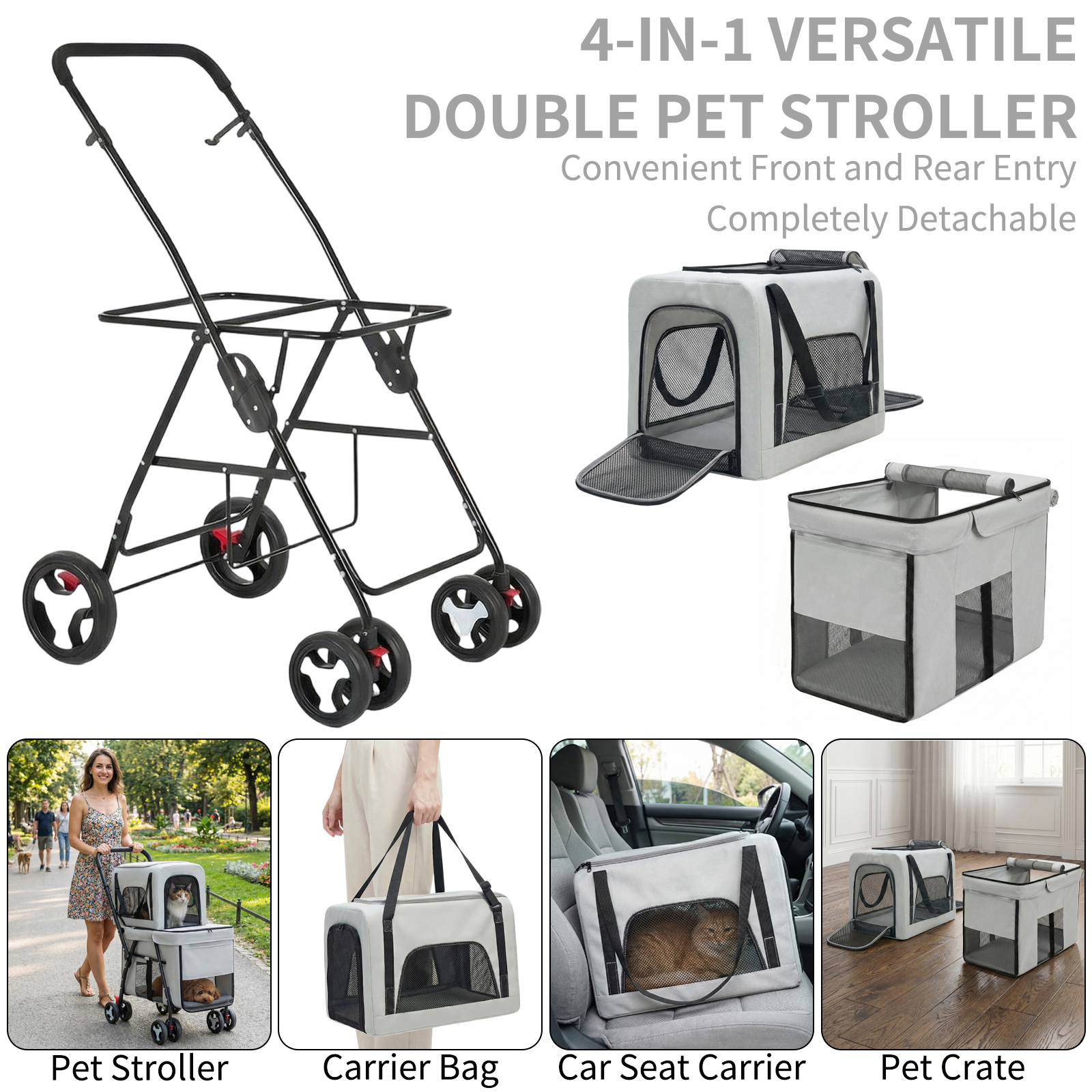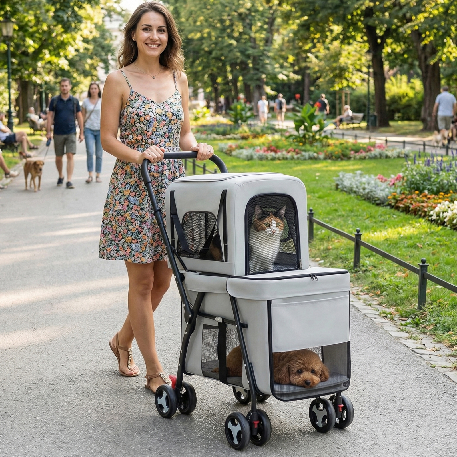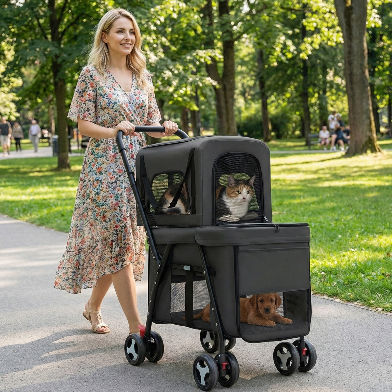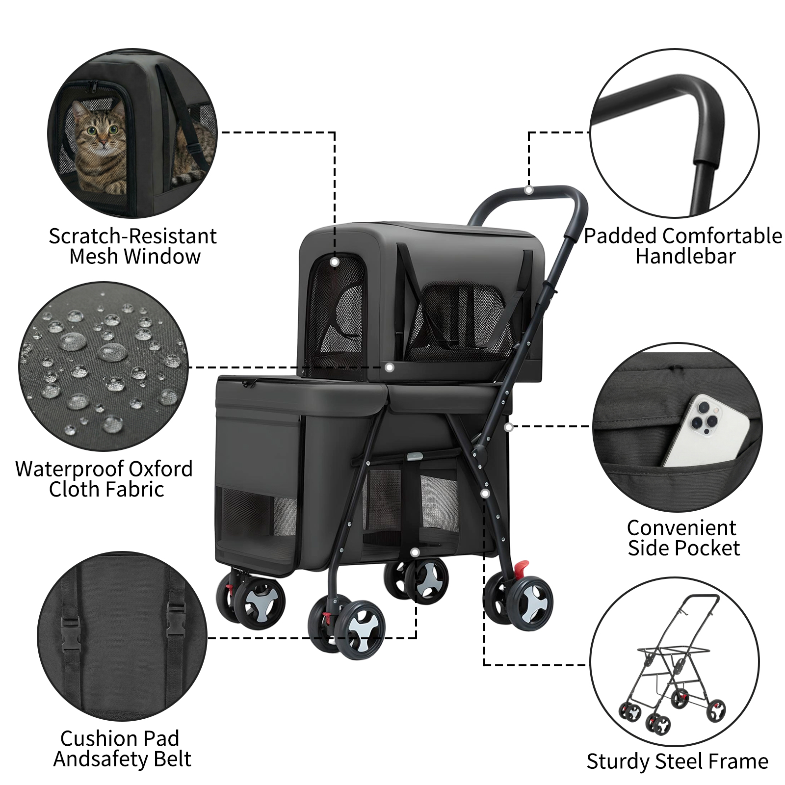 Oxford & Gauze foldable Pet stroller double layer & detachable PC