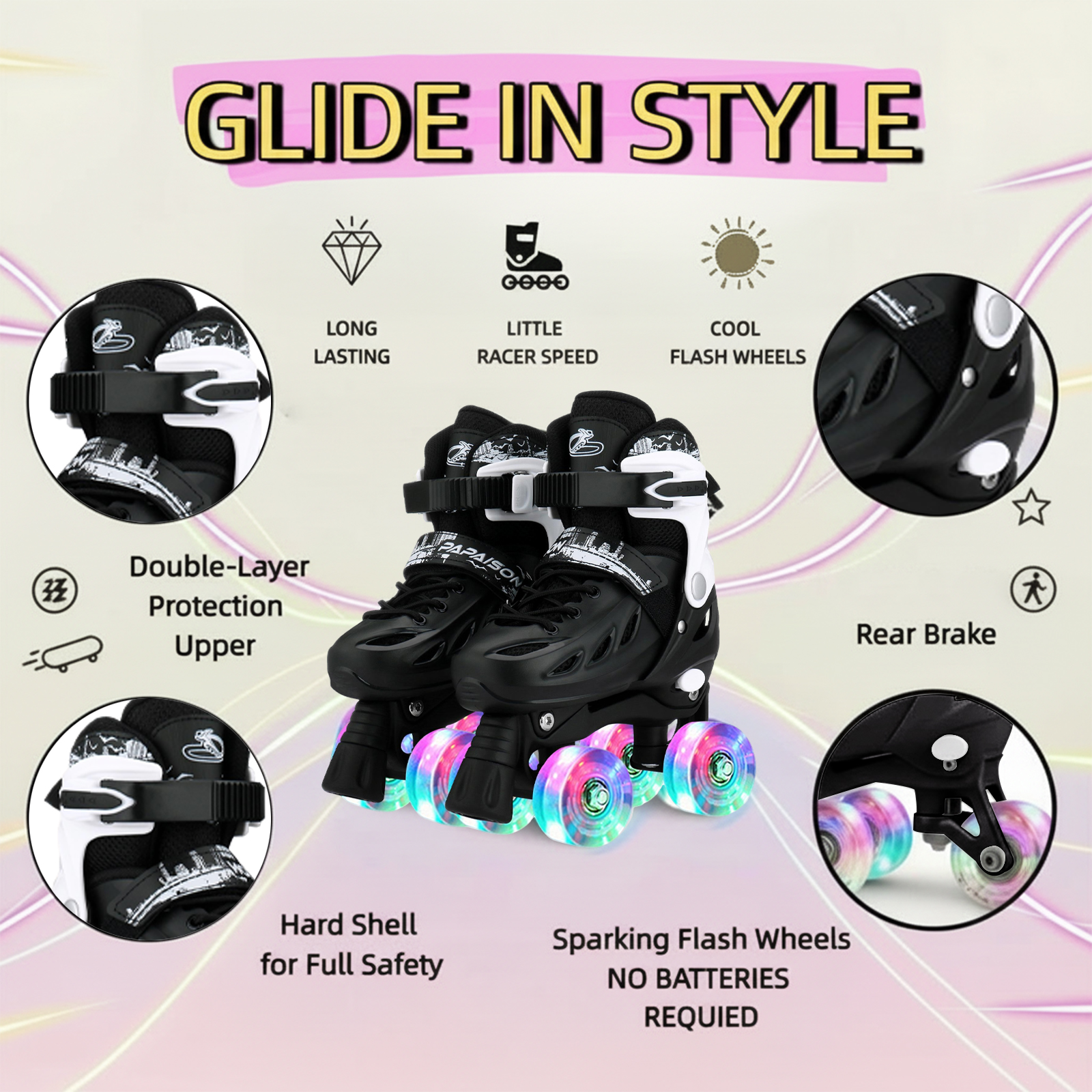 PE Plastic & Polypropylene-PP Roller Skates for children PU Rubber polished Solid Set