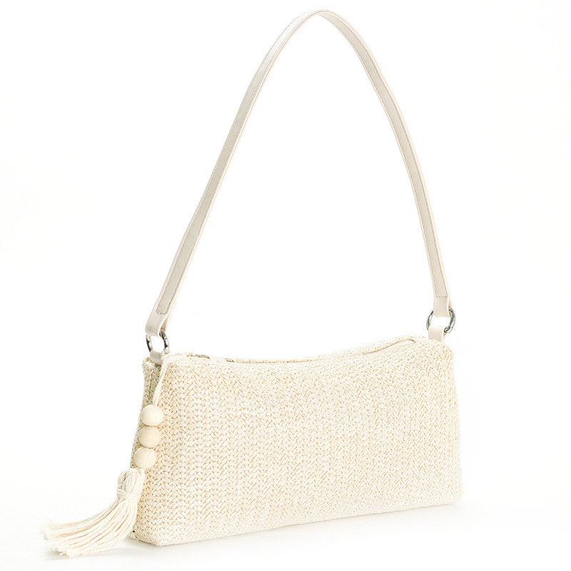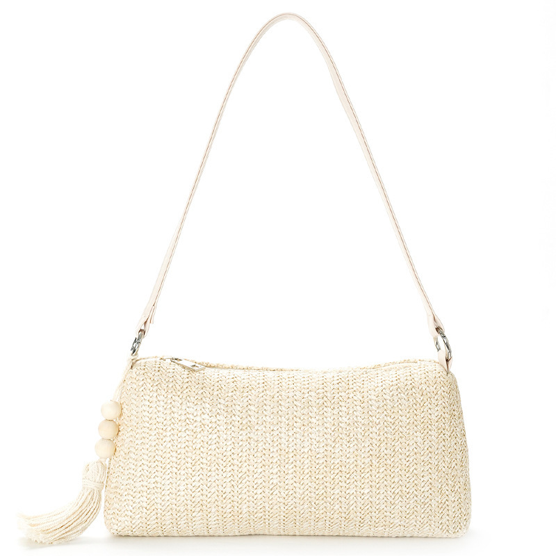 PP Straw Woven Shoulder Bag large capacity Polyester beige PC