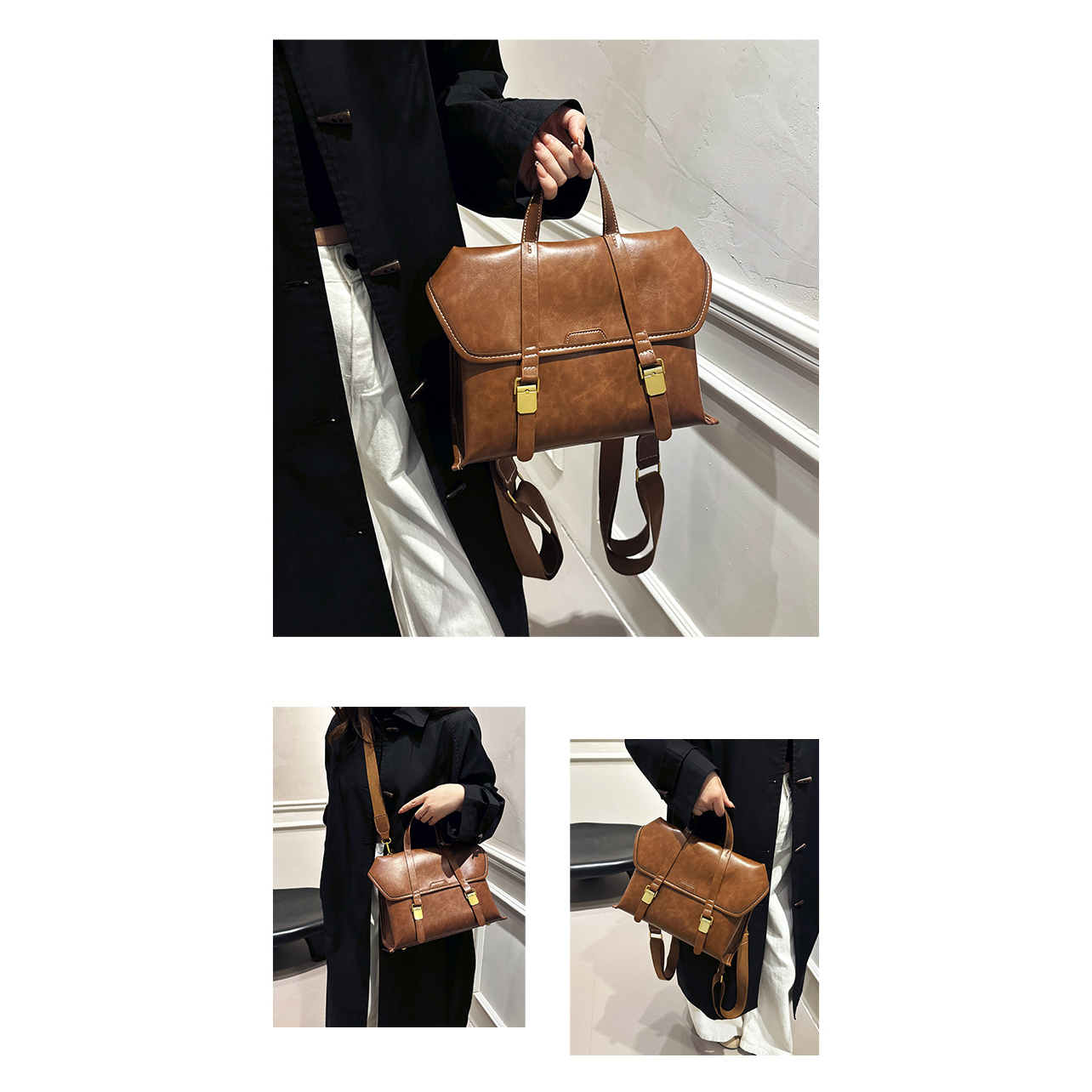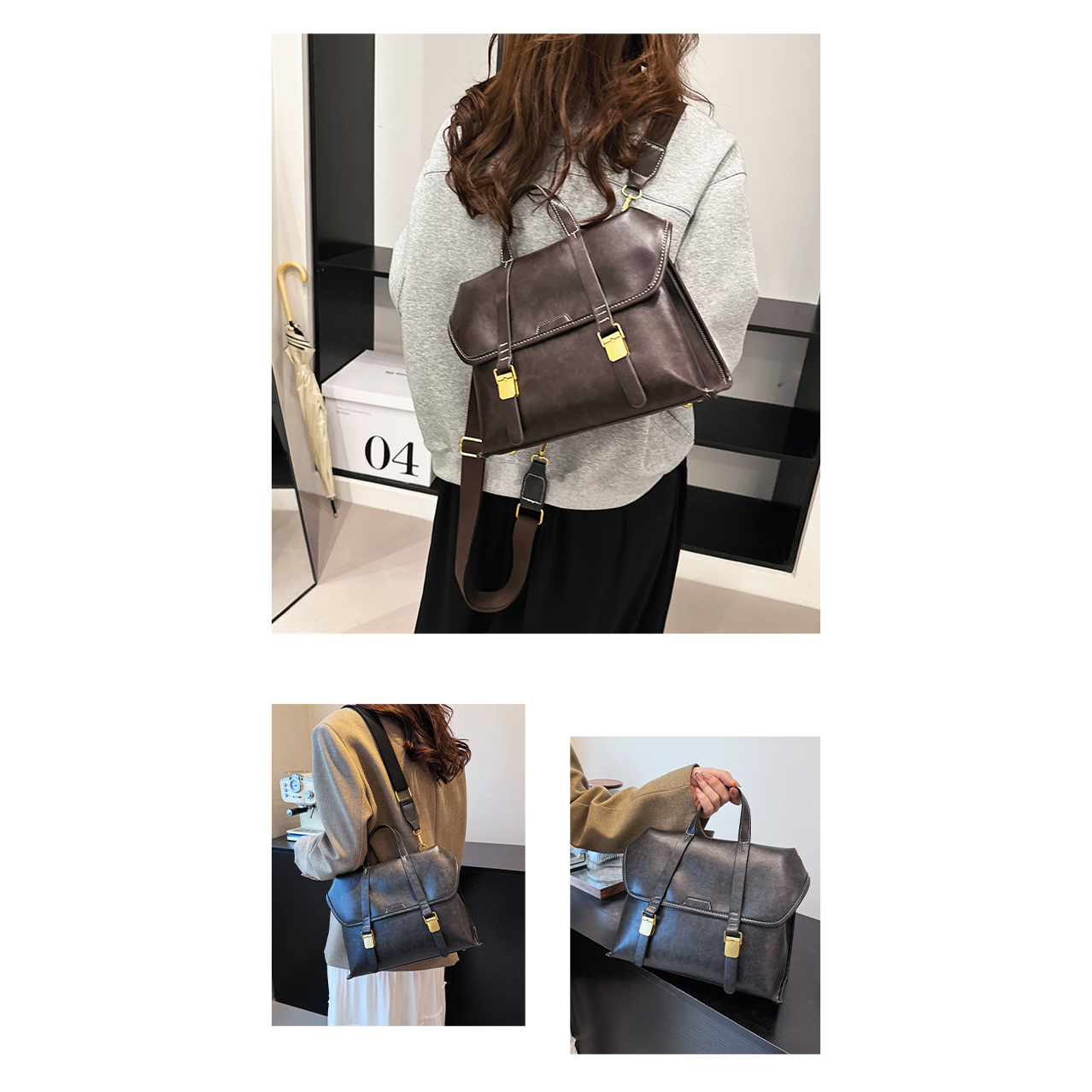 PU Leather Backpack durable & large capacity & waterproof Solid PC