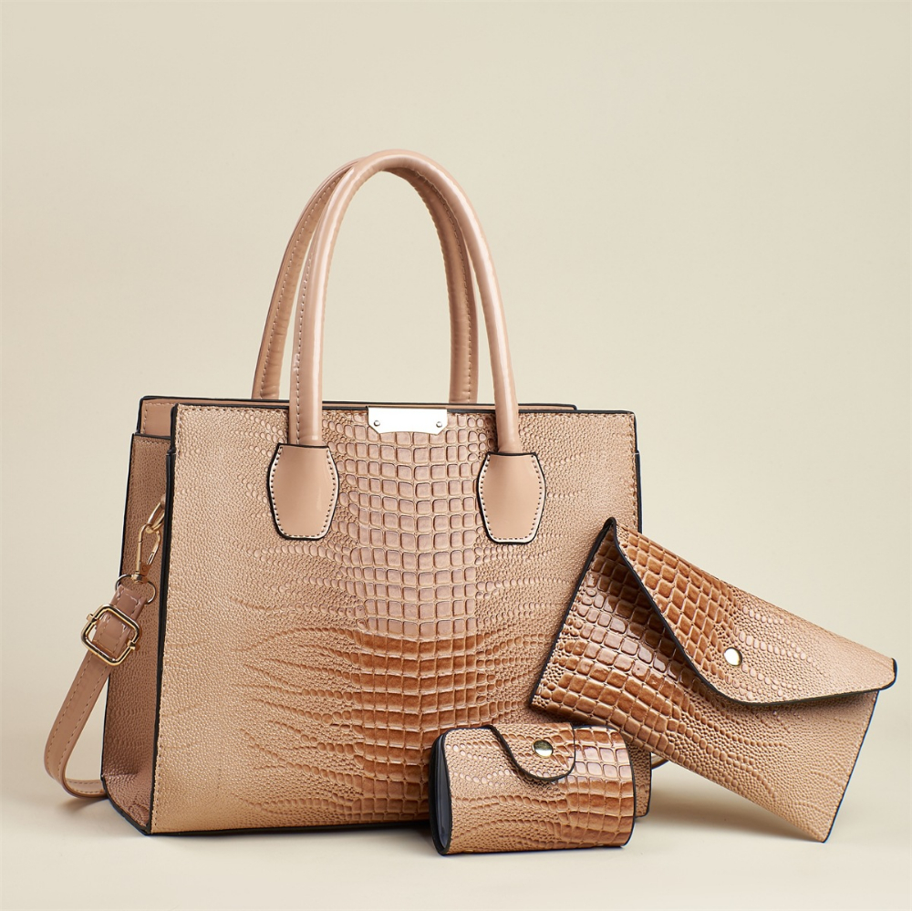 PU Leather Bag Suit large capacity & three piece crocodile grain Set