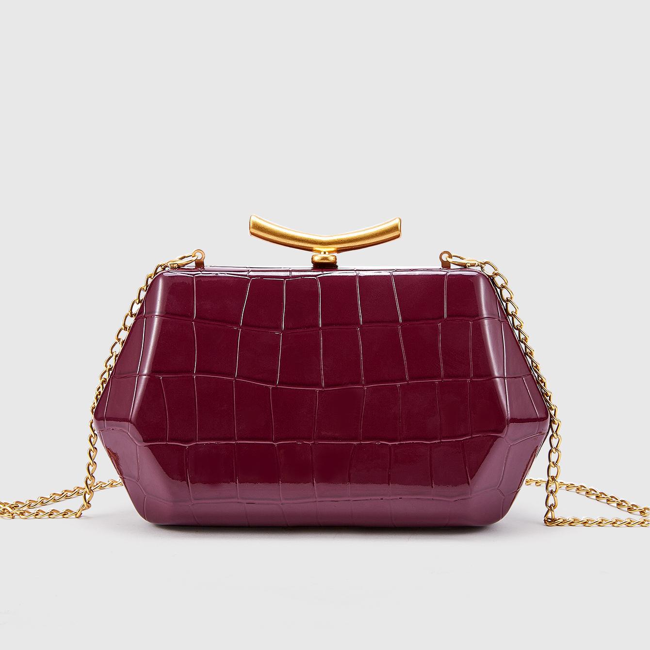 PU Leather hard-surface & Box Bag Clutch Bag attached with hanging strap Cotton crocodile grain PC