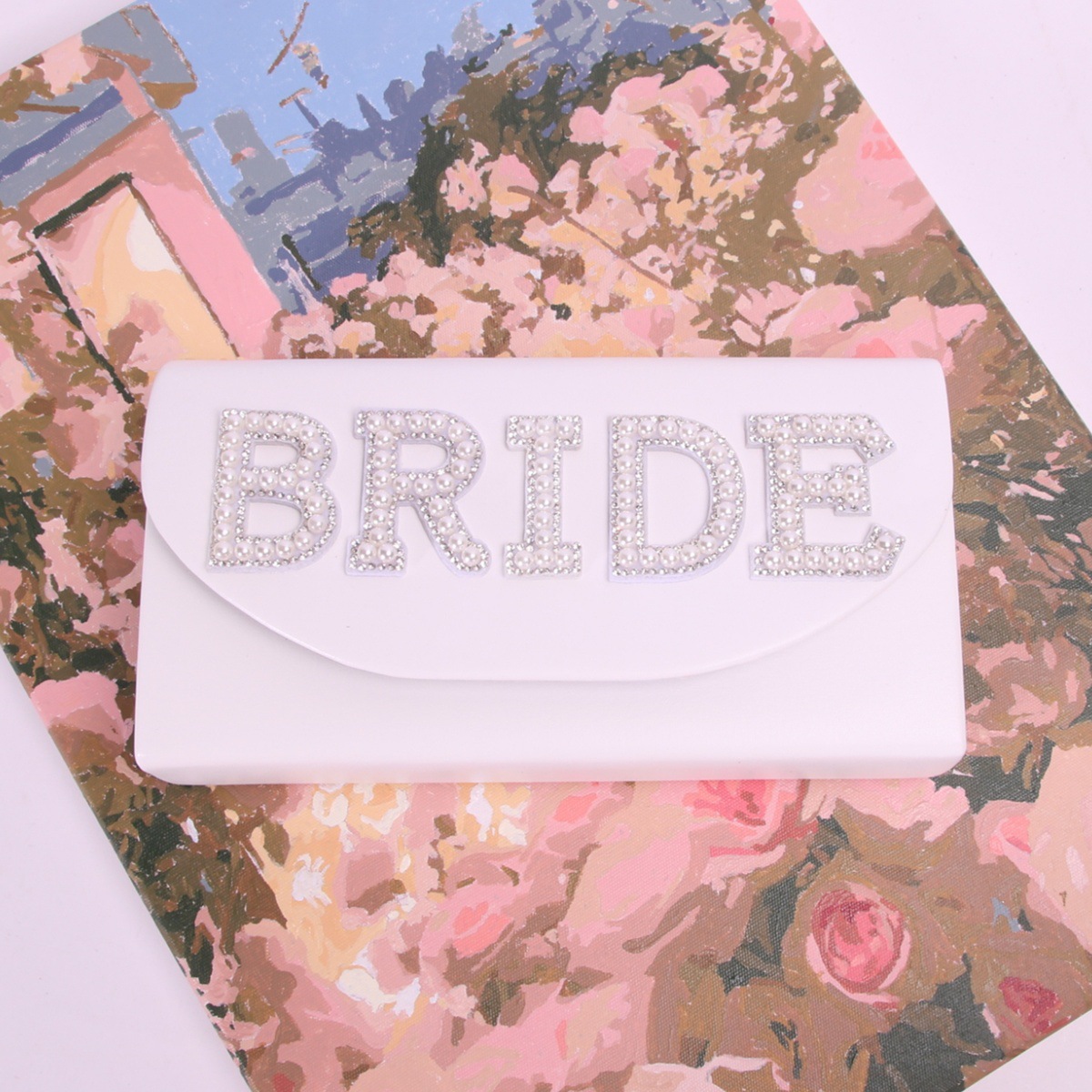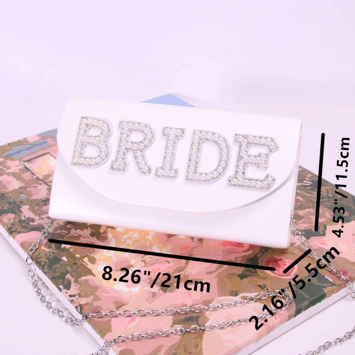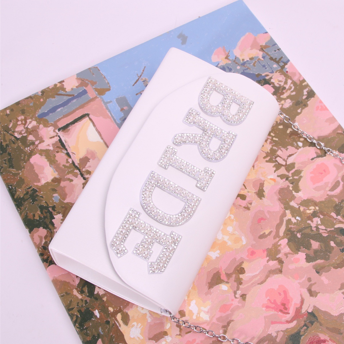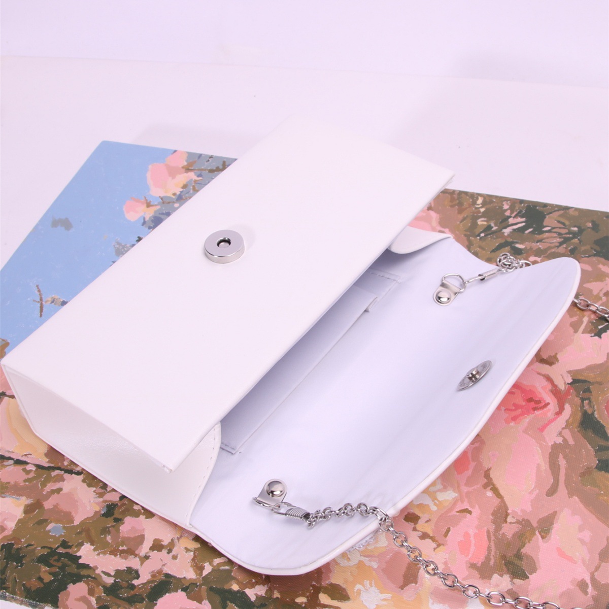 PU Leather Box Bag Clutch Bag with chain Plastic Pearl & Polyester letter white PC