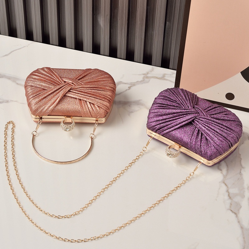 PU Leather hard-surface Clutch Bag with chain Polyester PC