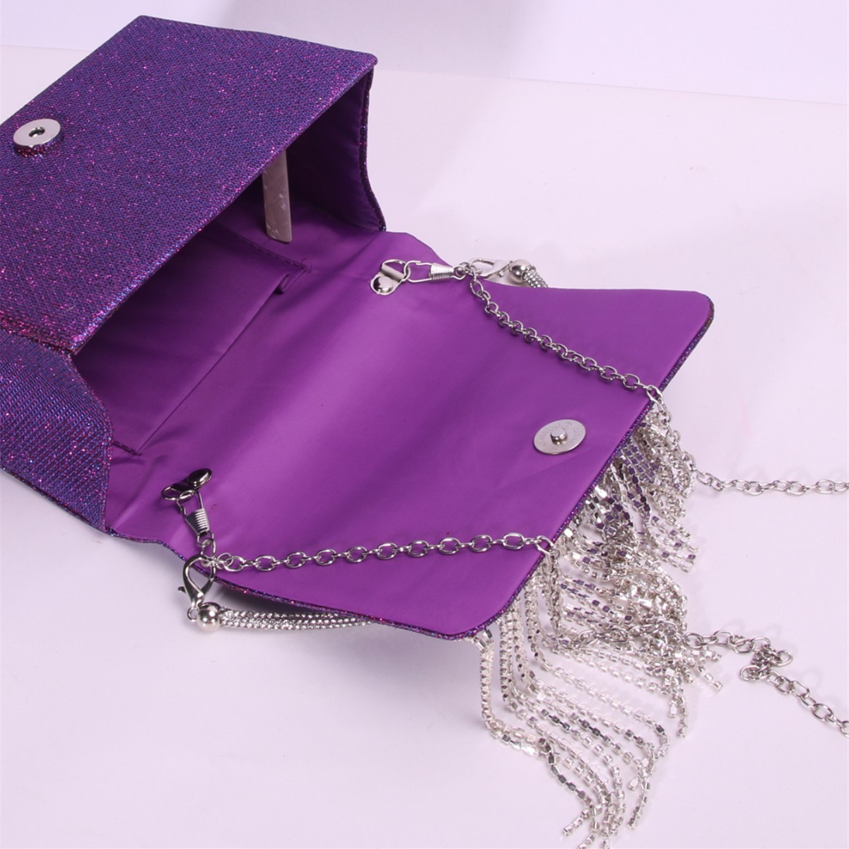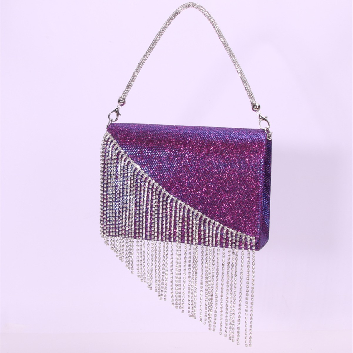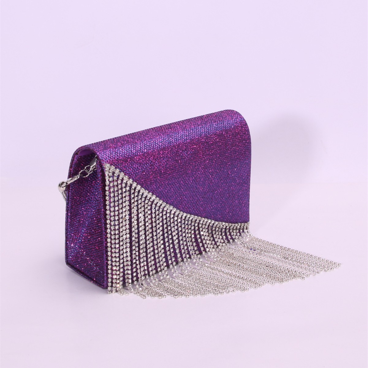PU Leather Box Bag & Tassels Clutch Bag with rhinestone Polyester purple PC