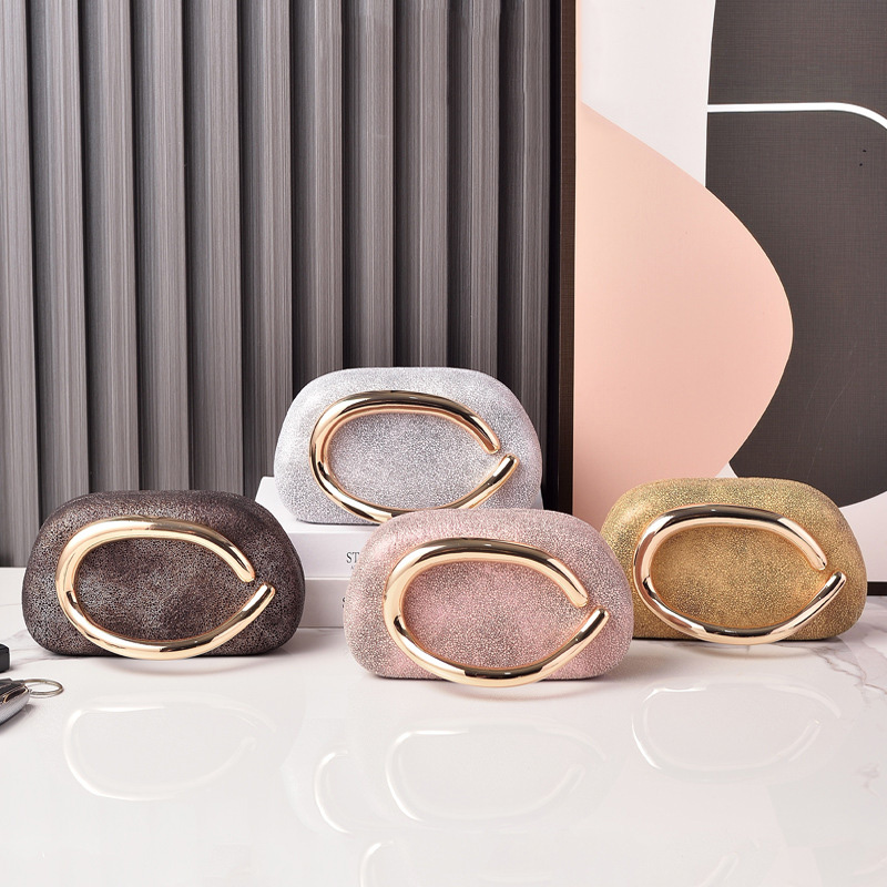 Polyester Evening Party Clutch Bag, circular ring & portable,  Plastic Pearl, gold,  PC
