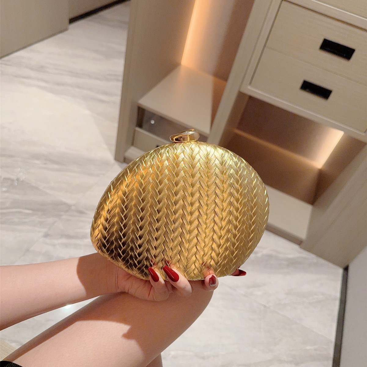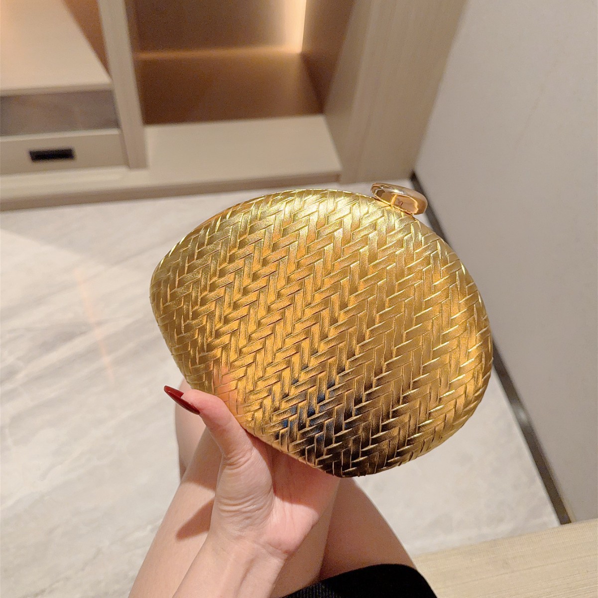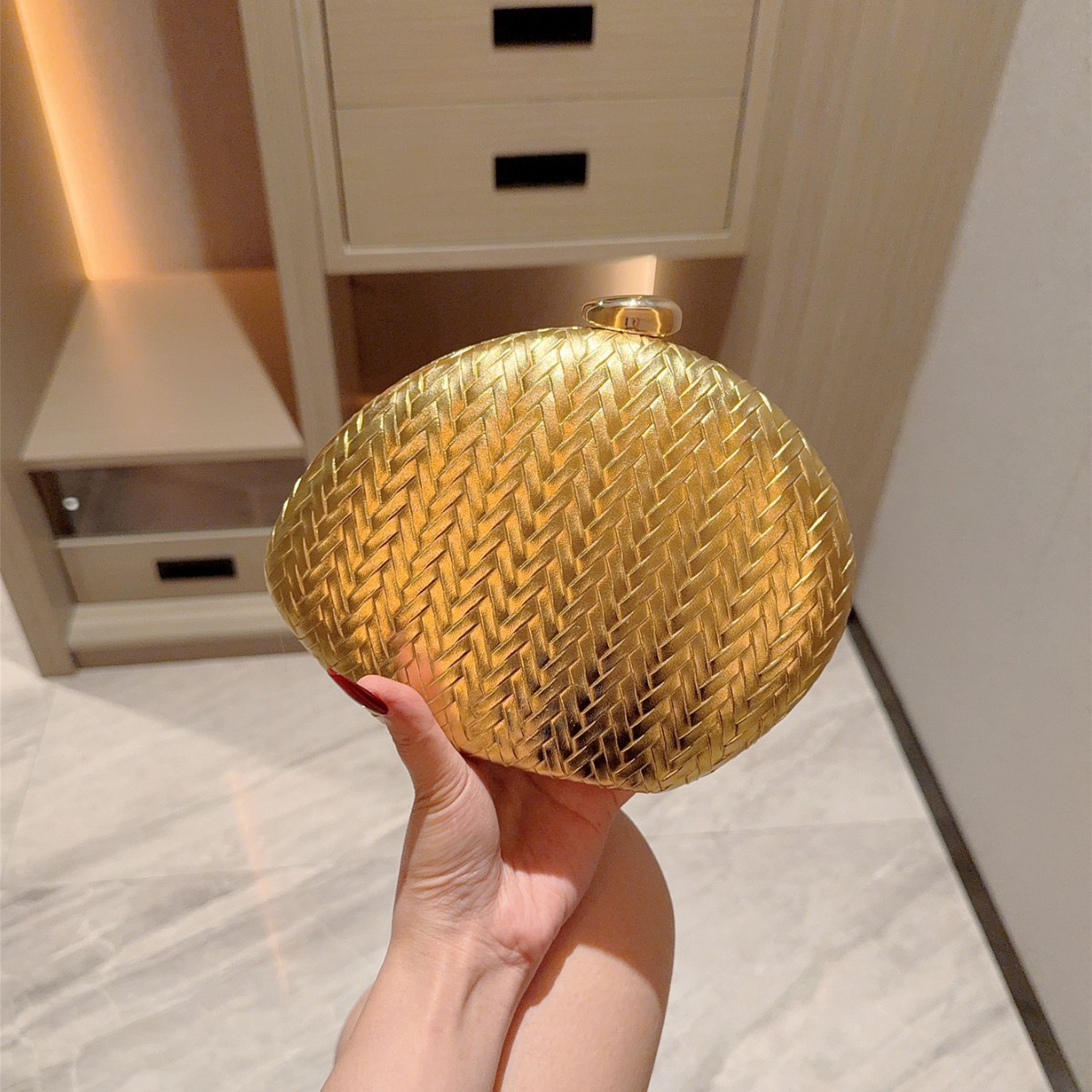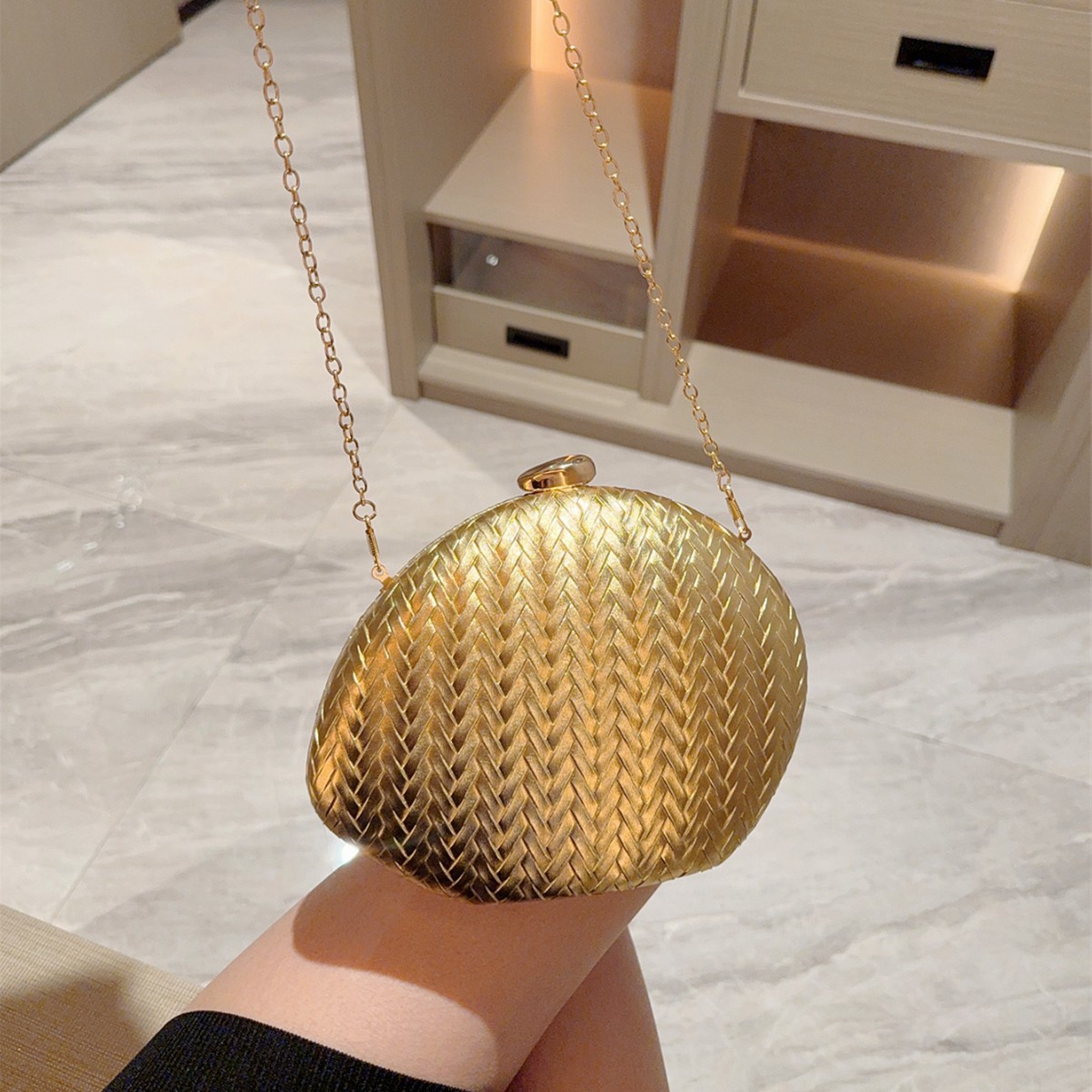 PU Leather hard-surface Clutch Bag attached with hanging strap Polyester gold PC