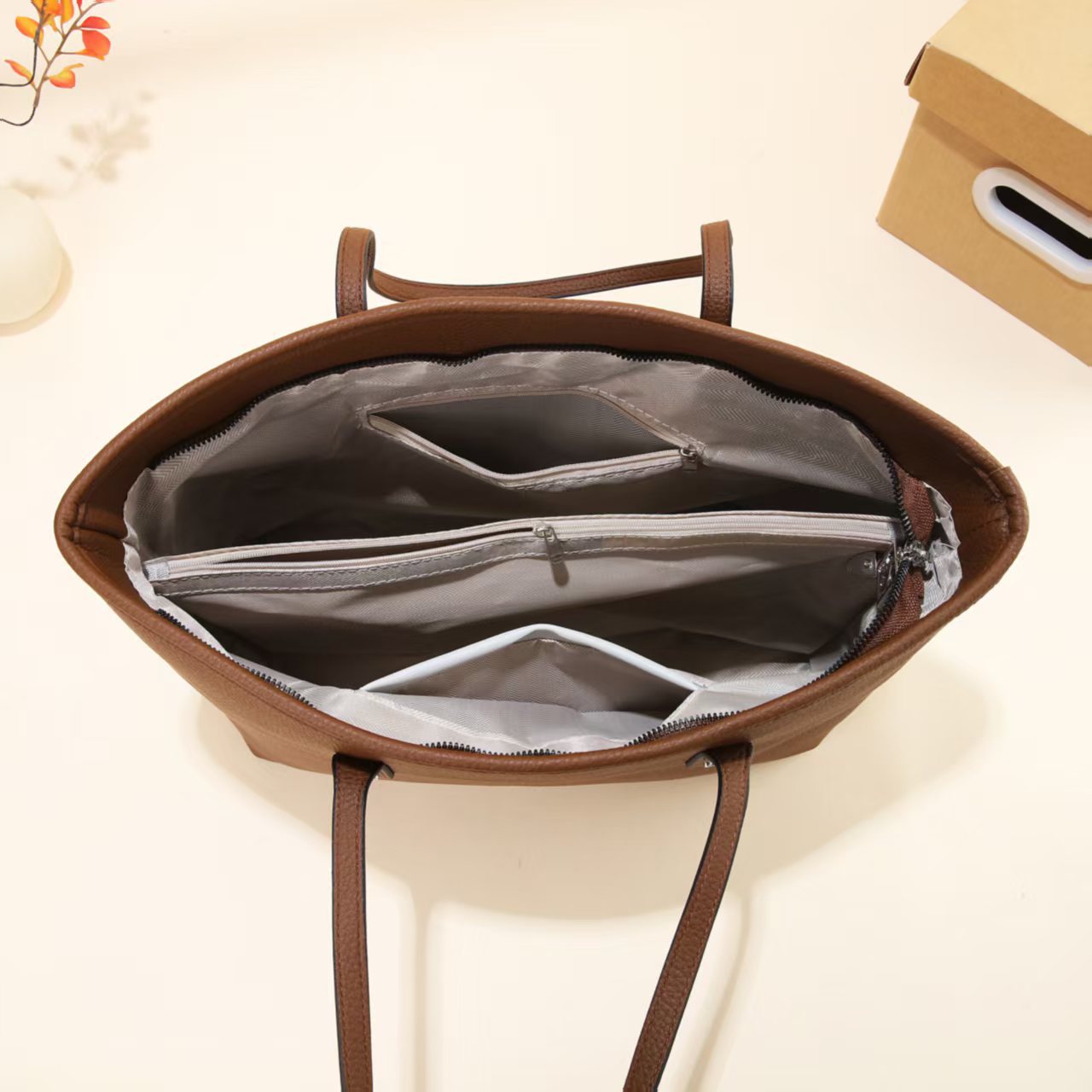 PU Leather Handbag large capacity & attached with hanging strap Lichee Grain PC