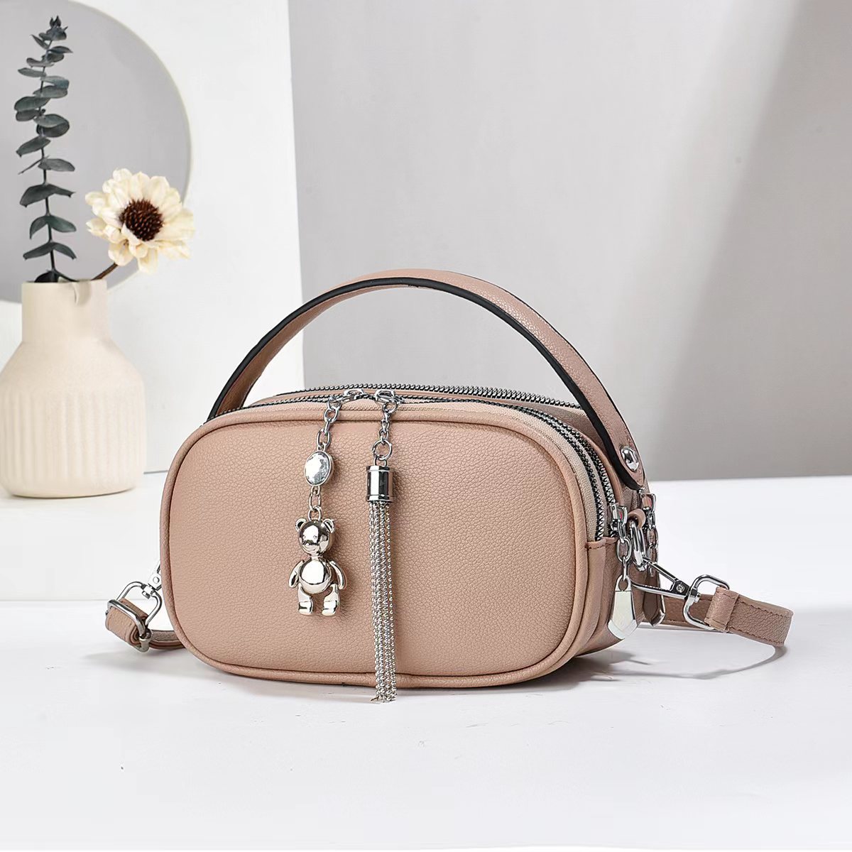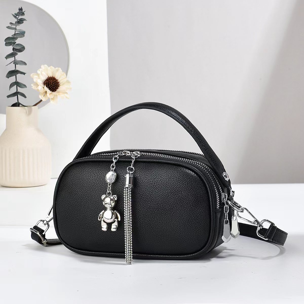 PU Leather hard-surface Handbag with hanging ornament & durable & attached with hanging strap Solid PC