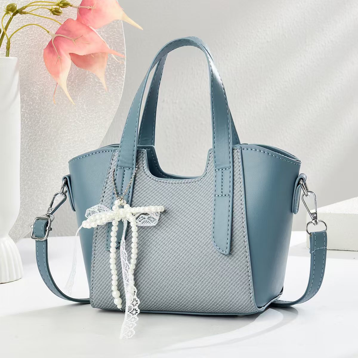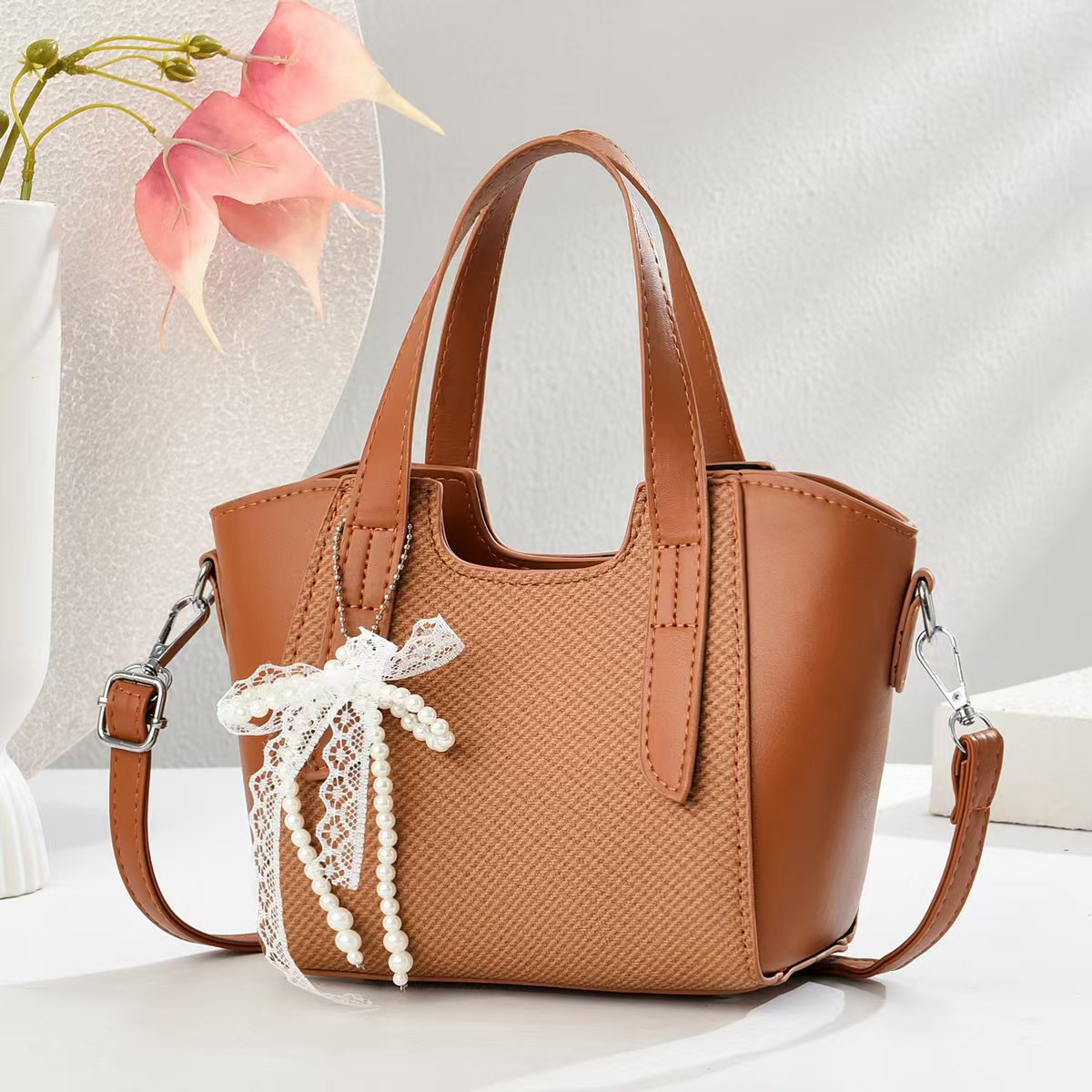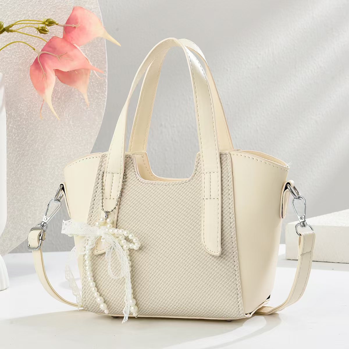 PU Leather Easy Matching Handbag with hanging ornament & large capacity & attached with hanging strap Solid PC