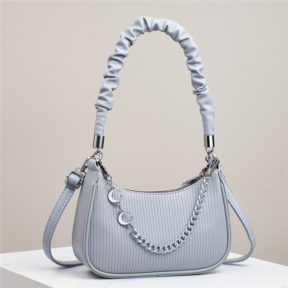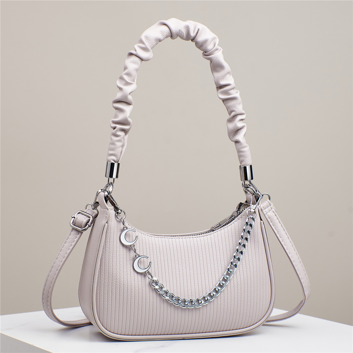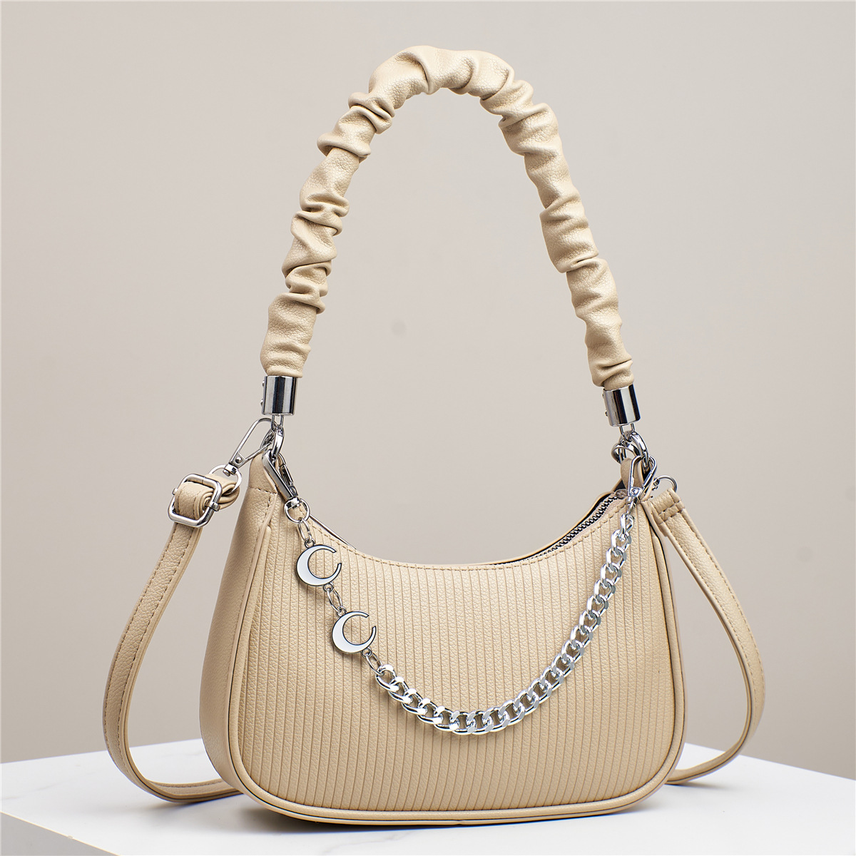PU Leather Easy Matching Handbag with chain & attached with hanging strap Solid PC