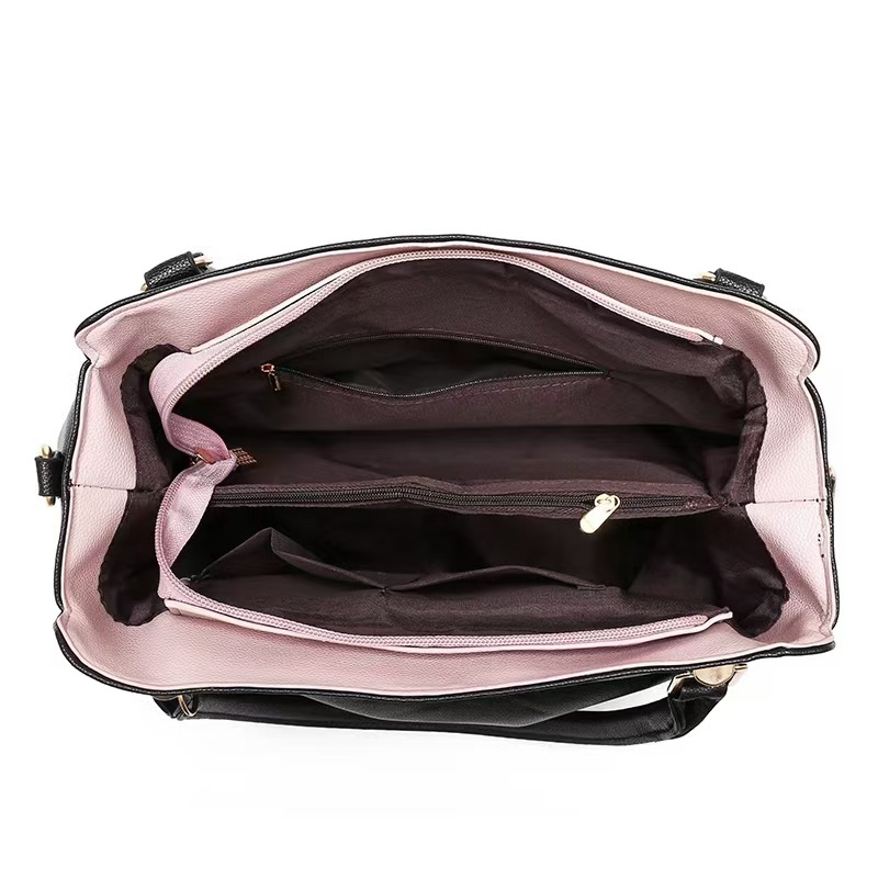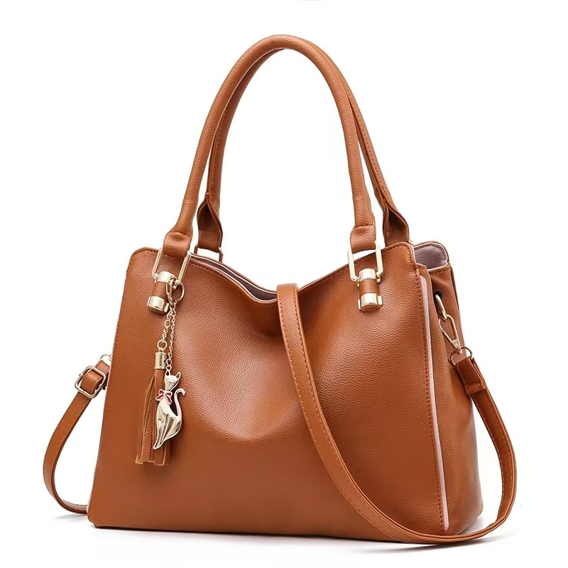 PU Leather Handbag with hanging ornament & large capacity & soft surface & attached with hanging strap Solid PC