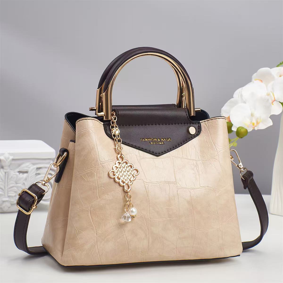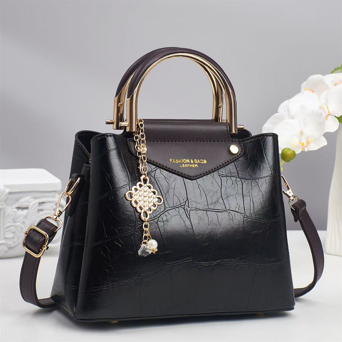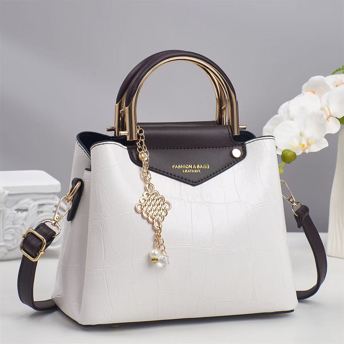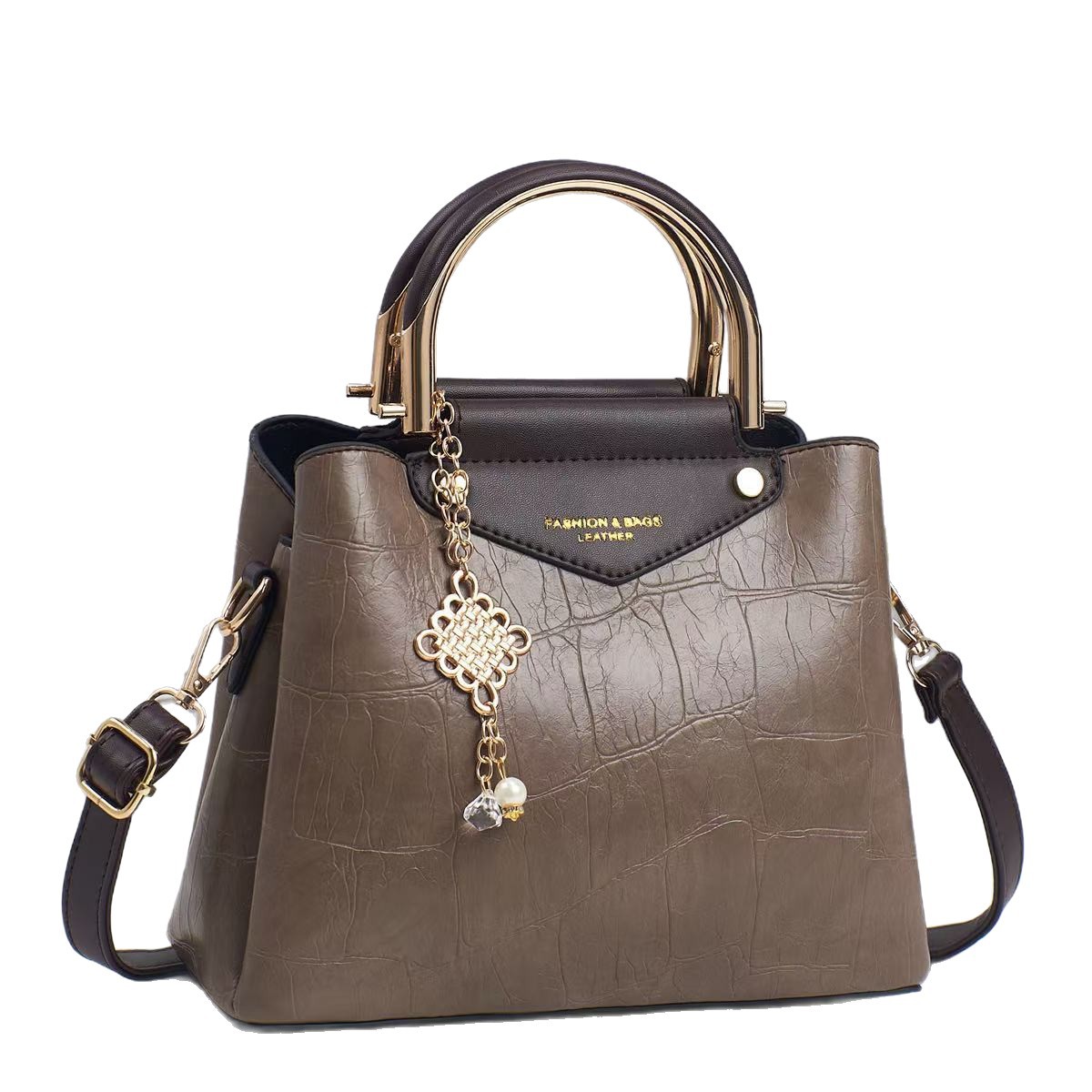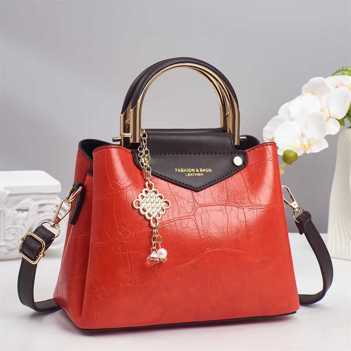 PU Leather Handbag with hanging ornament & attached with hanging strap PU Leather crocodile grain PC