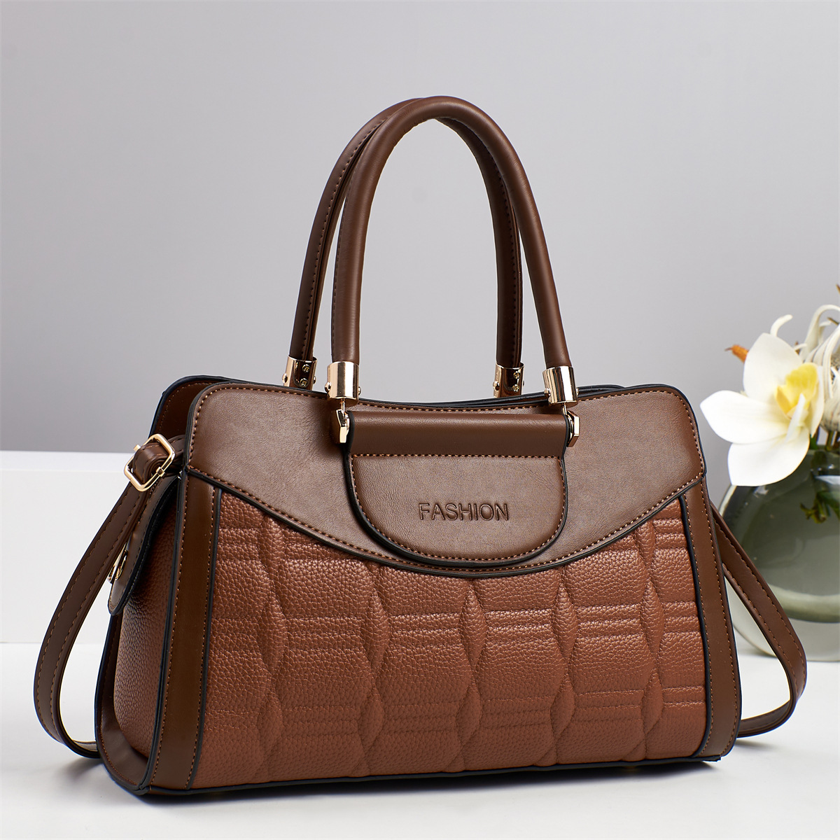 PU Leather Patchwork Bag Handbag, attached with hanging strap & waterproof, more colors for choice,  PC