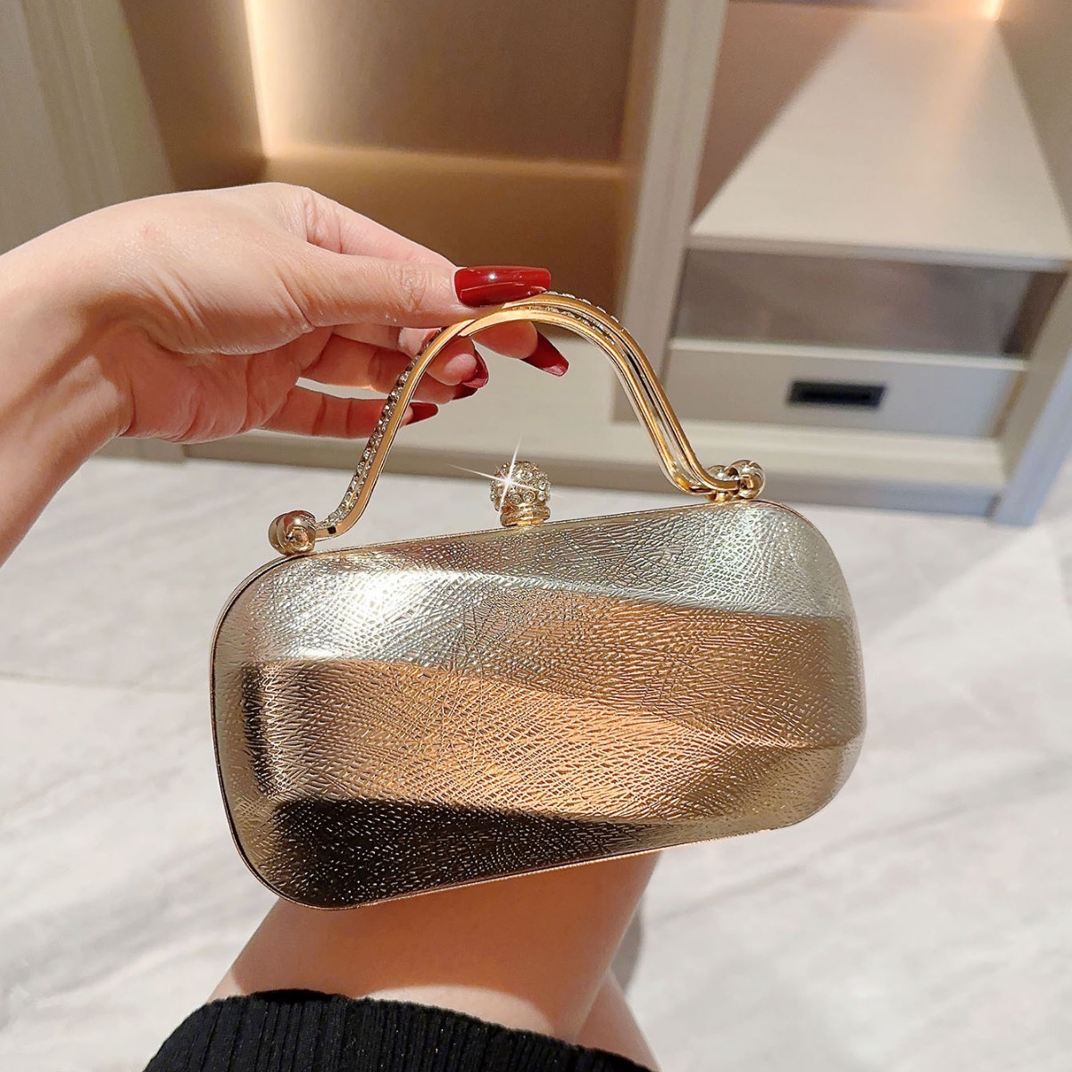 Polyester hard-surface Clutch Bag, attached with hanging strap & with rhinestone, more colors for choice,  PC