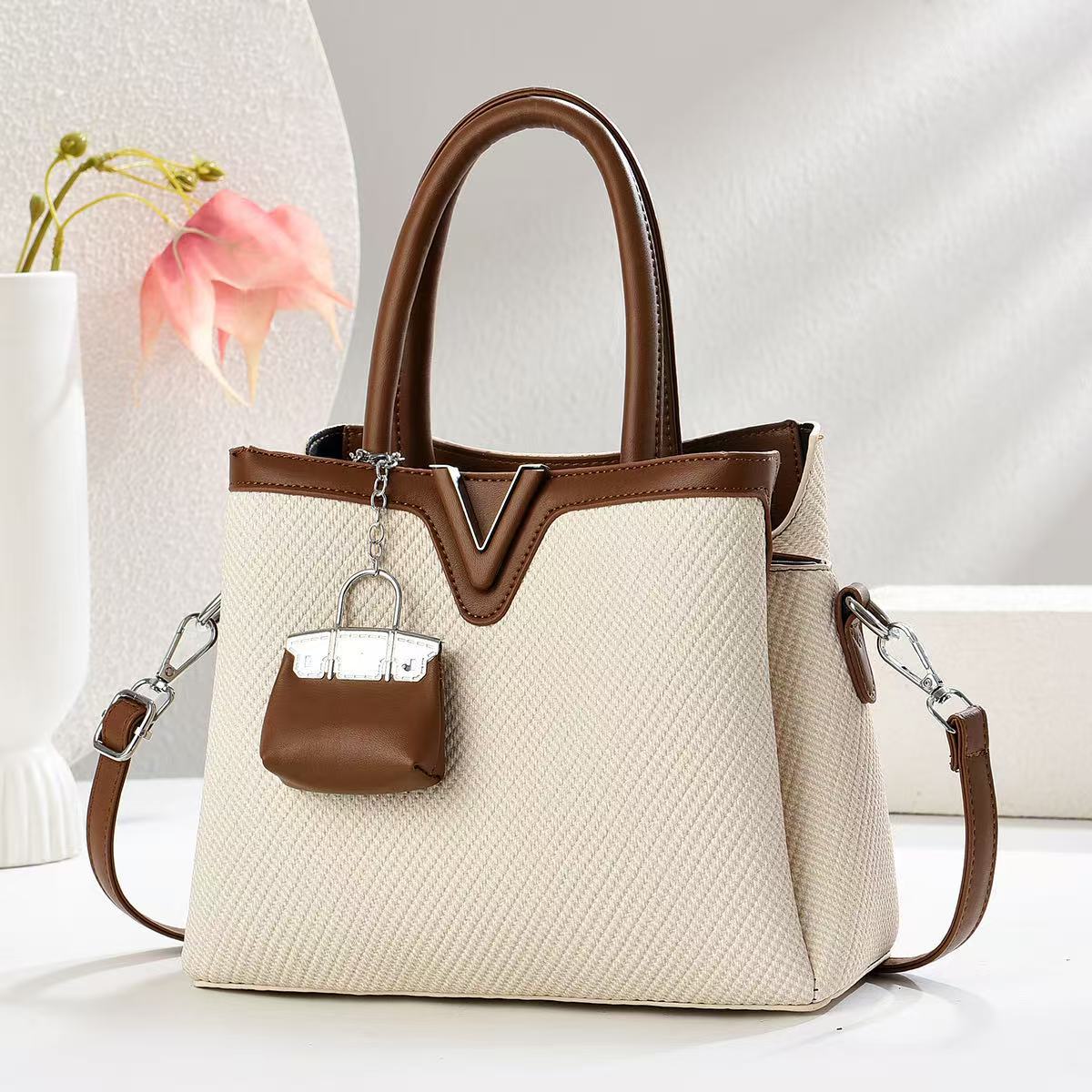 PU Leather Handbag with hanging ornament & attached with hanging strap PC