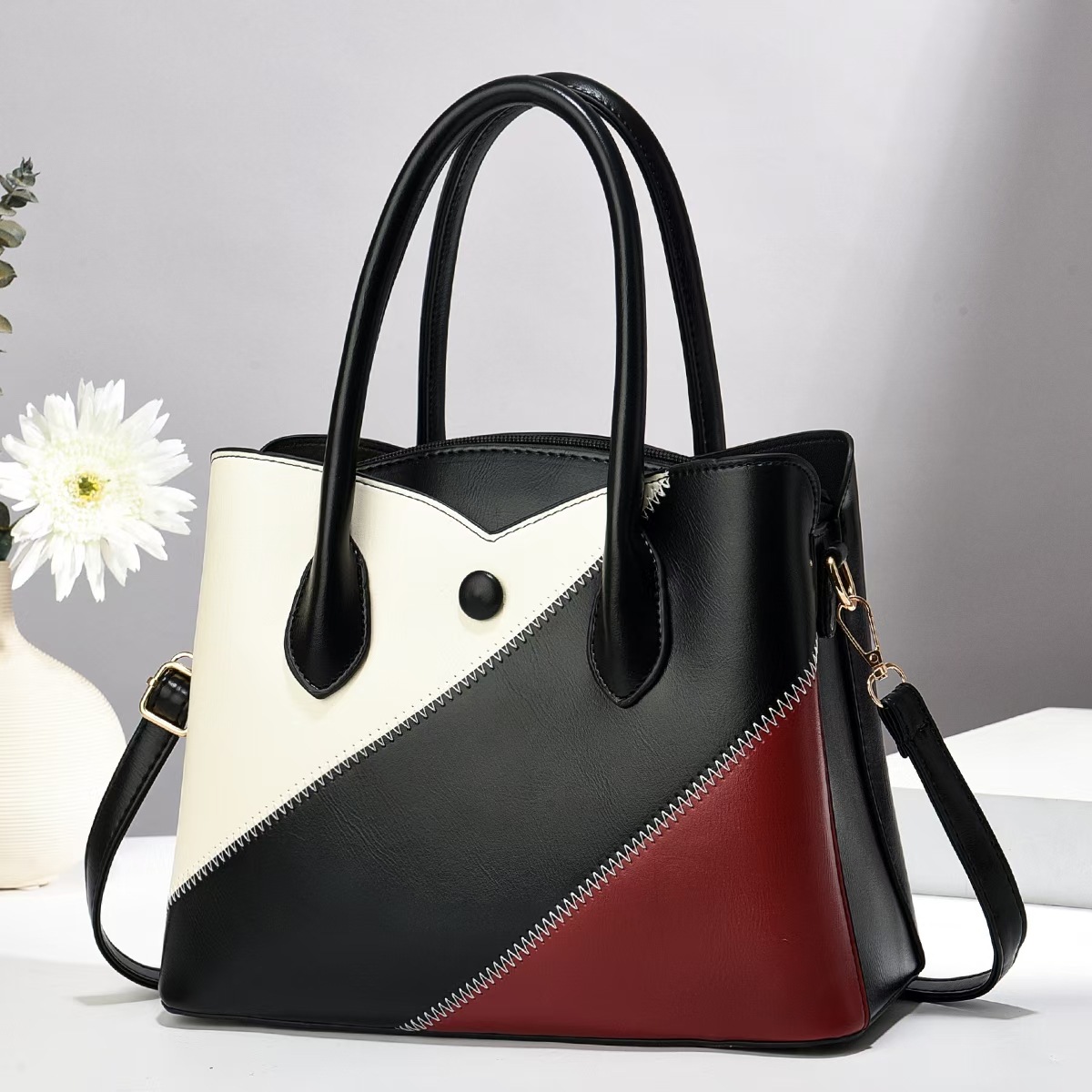 PU Leather Patchwork Bag Handbag, attached with hanging strap & waterproof, more colors for choice,  PC
