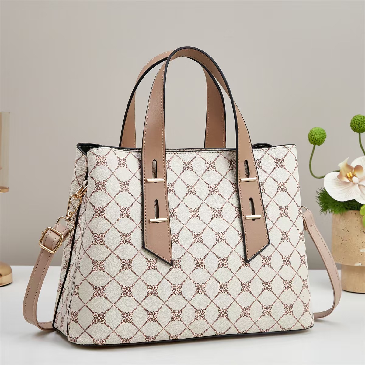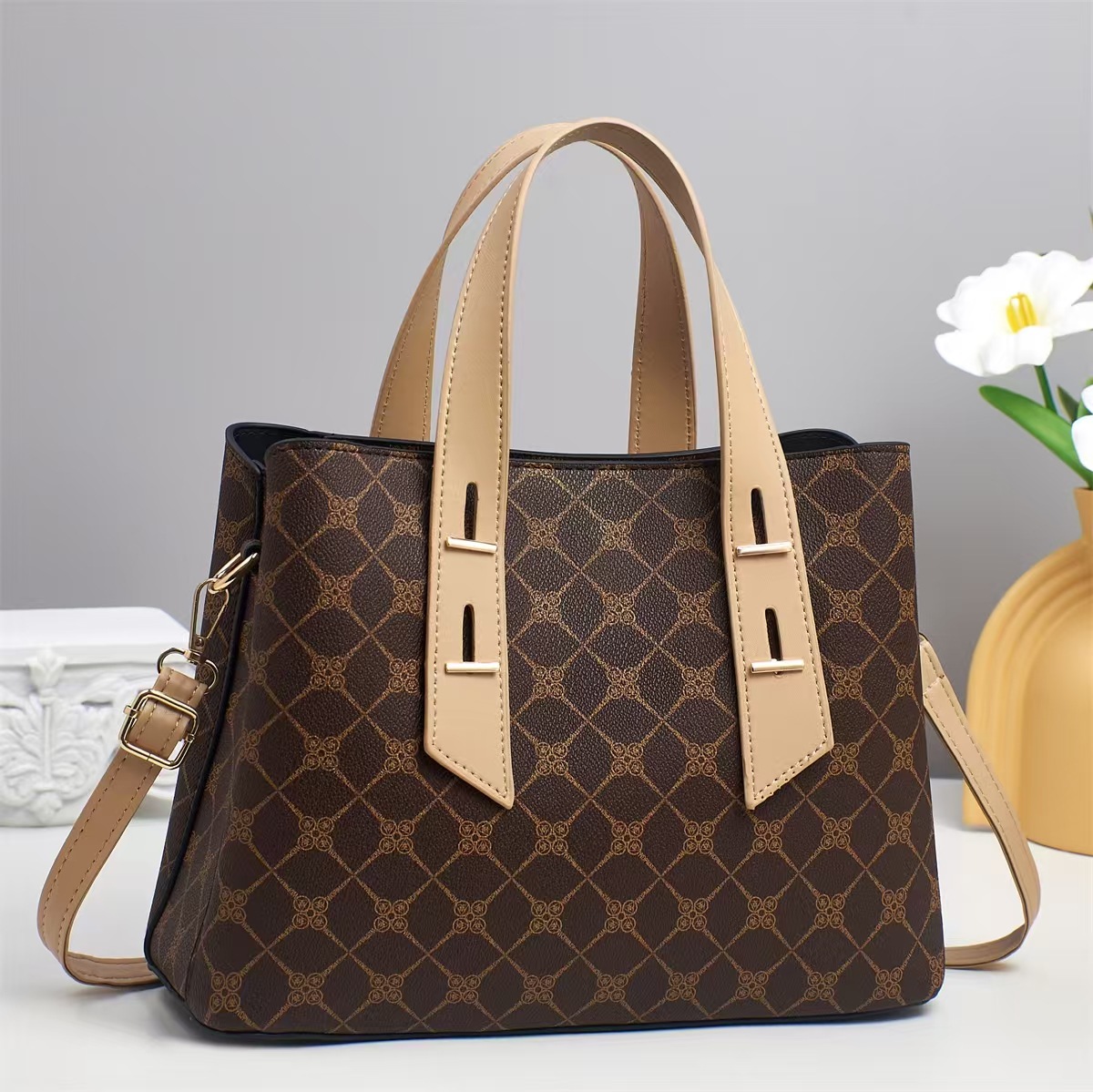 PU Leather Patchwork Bag Handbag, attached with hanging strap & waterproof, more colors for choice,  PC