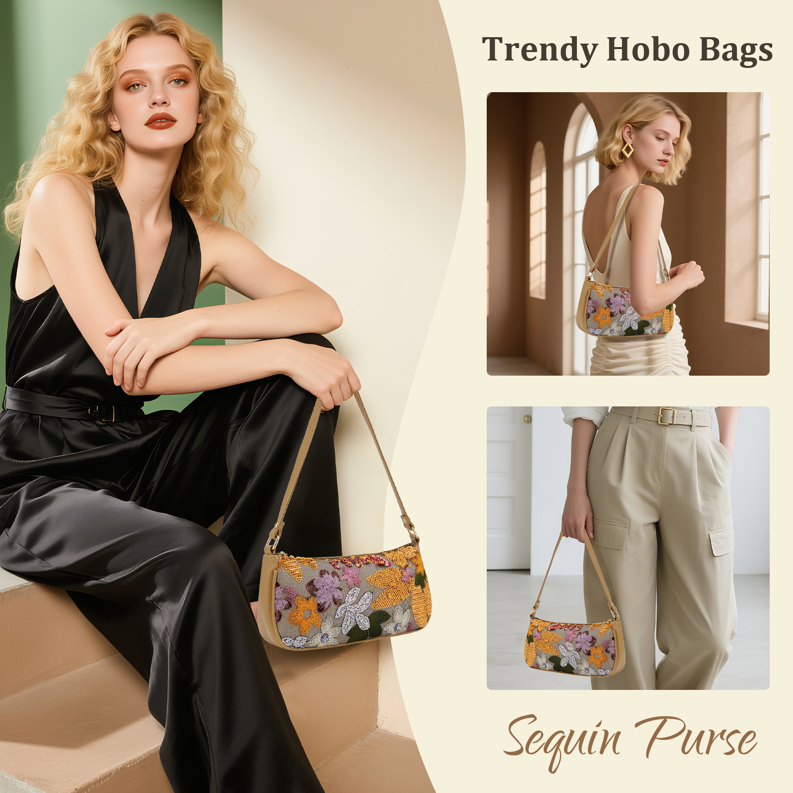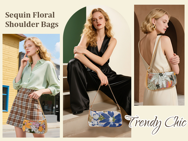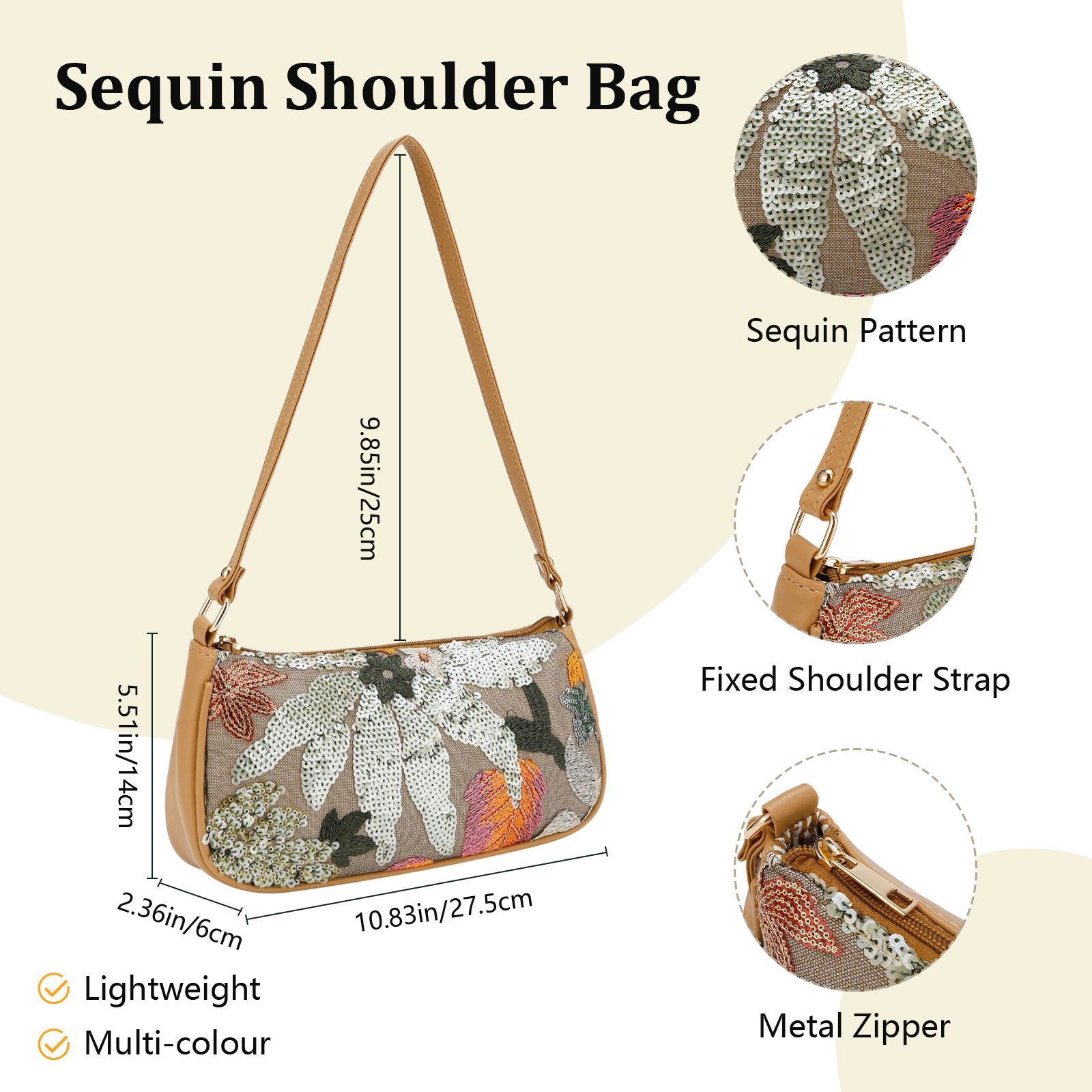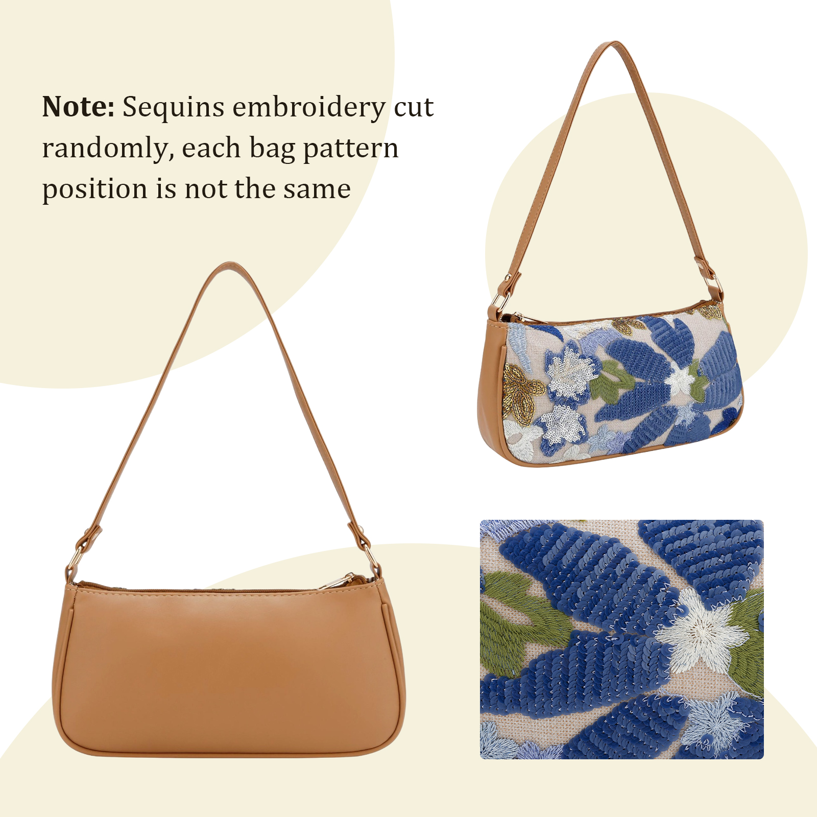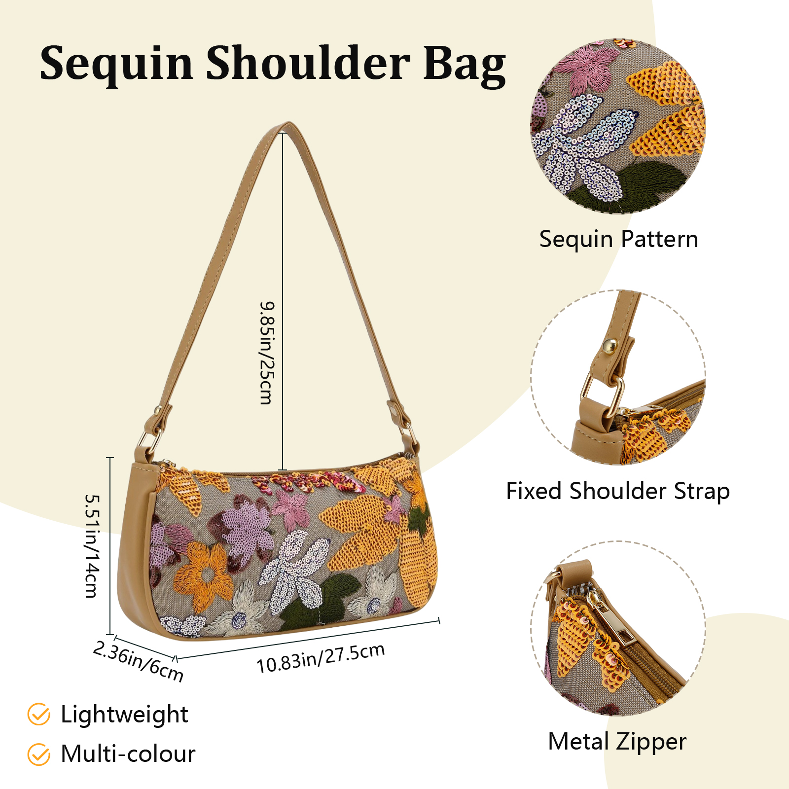 Sequin Embroidered Flower Shoulder Bag New Underarm Bag