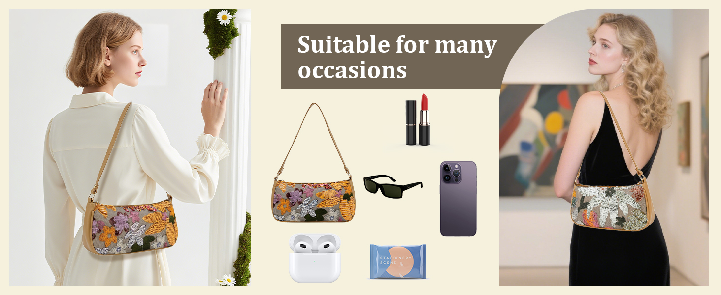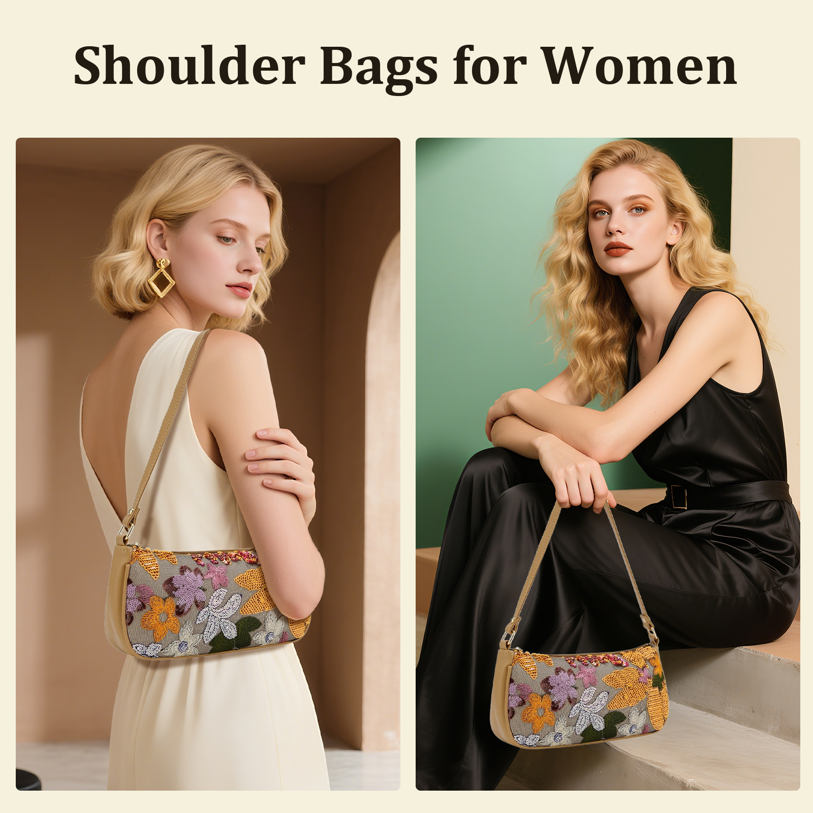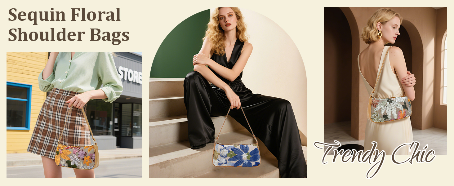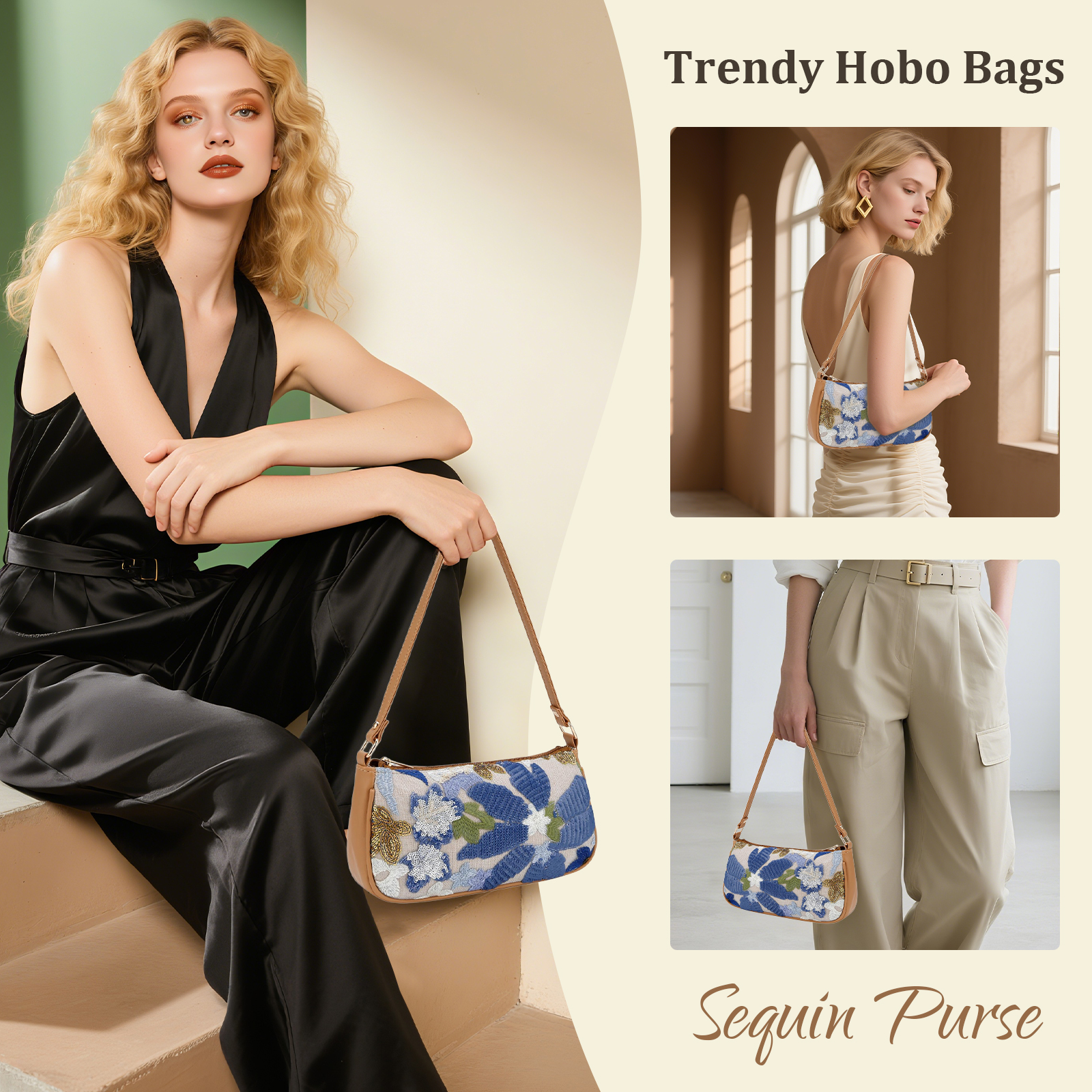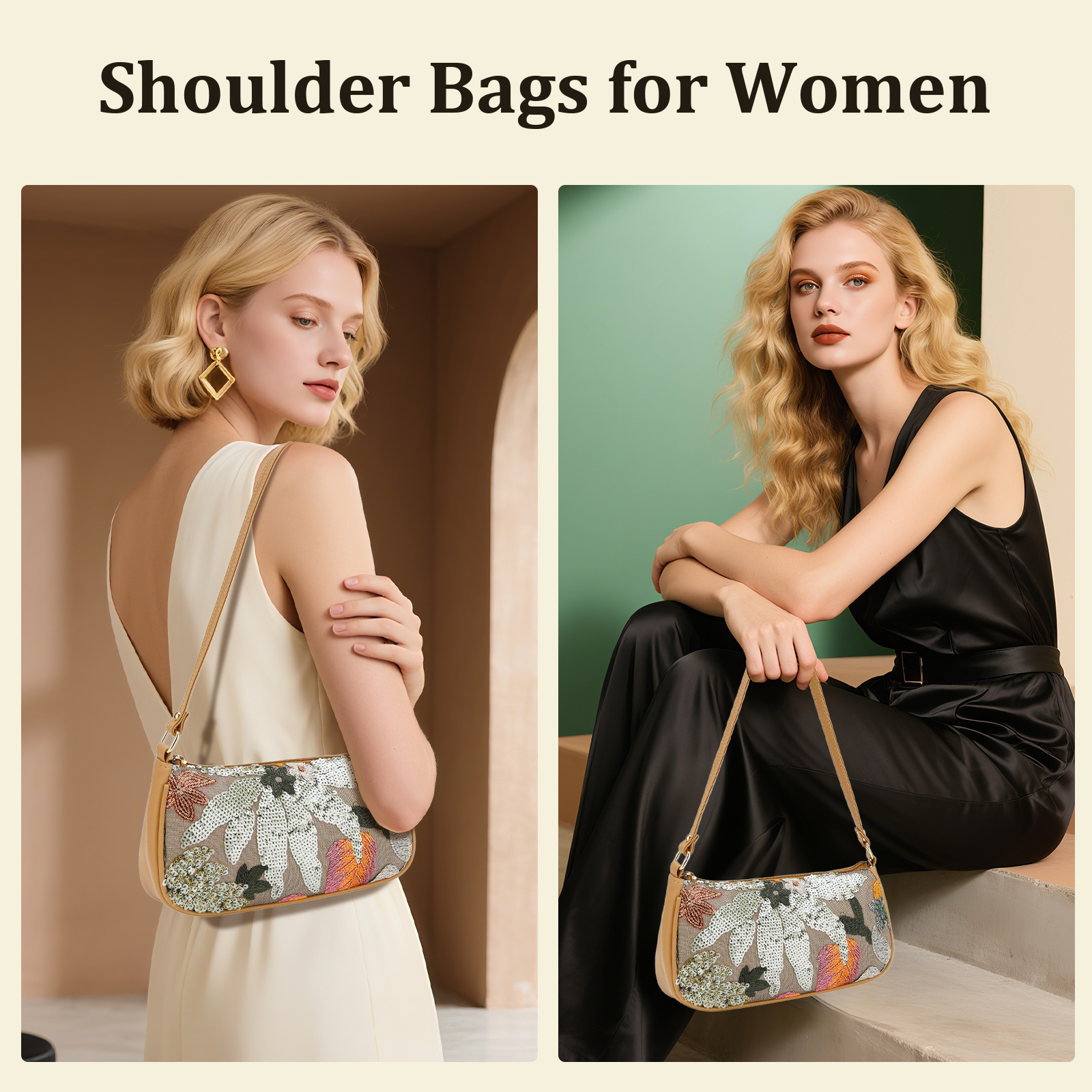 Sequin Embroidered Flower Shoulder Bag New Underarm Bag